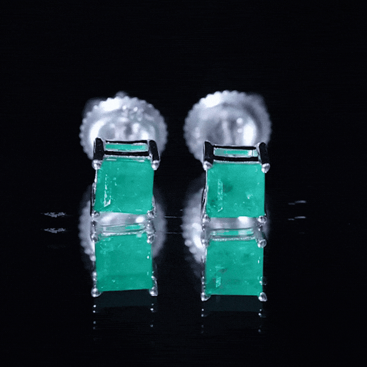 Princess Cut Natural Emerald Solitaire Stud Earrings