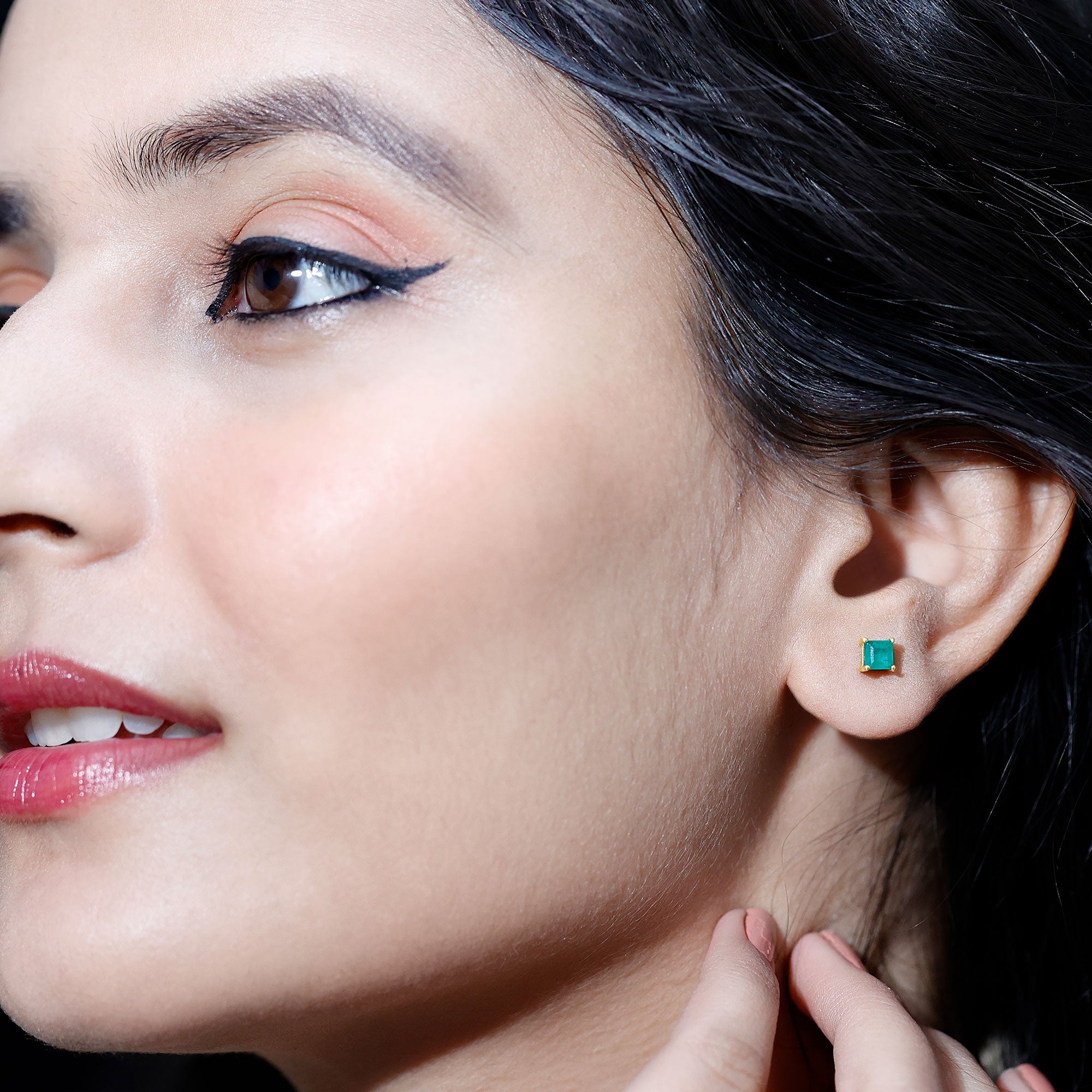 Discover effortless sophistication with these exquisite Emerald Stud Earrings, designed to beautifully catch the light from every angle. These Solitaire Earrings showcase a stunning 4 MM genuine emerald in a stylish princess cut, securely set in 4-prong setting. Perfect for everyday wear, these Green Emerald Earrings seamlessly combine elegance with simplicity. The AAA quality real emeralds bring a hint of luxury to any ensemble. Featuring a screw back closure, they remain comfortably in place throughout the day, whether you are attending a special occasion or simply enhancing your daily attire. Thoughtfully selected, these May Birthstone Earrings also serve as a meaningful gift for anniversaries, birthdays, or any memorable celebration. With their blend of classic design, contemporary flair, and premium gemstones, these Princess Cut Stud Earrings are the perfect way to convey elegance and confidence.