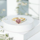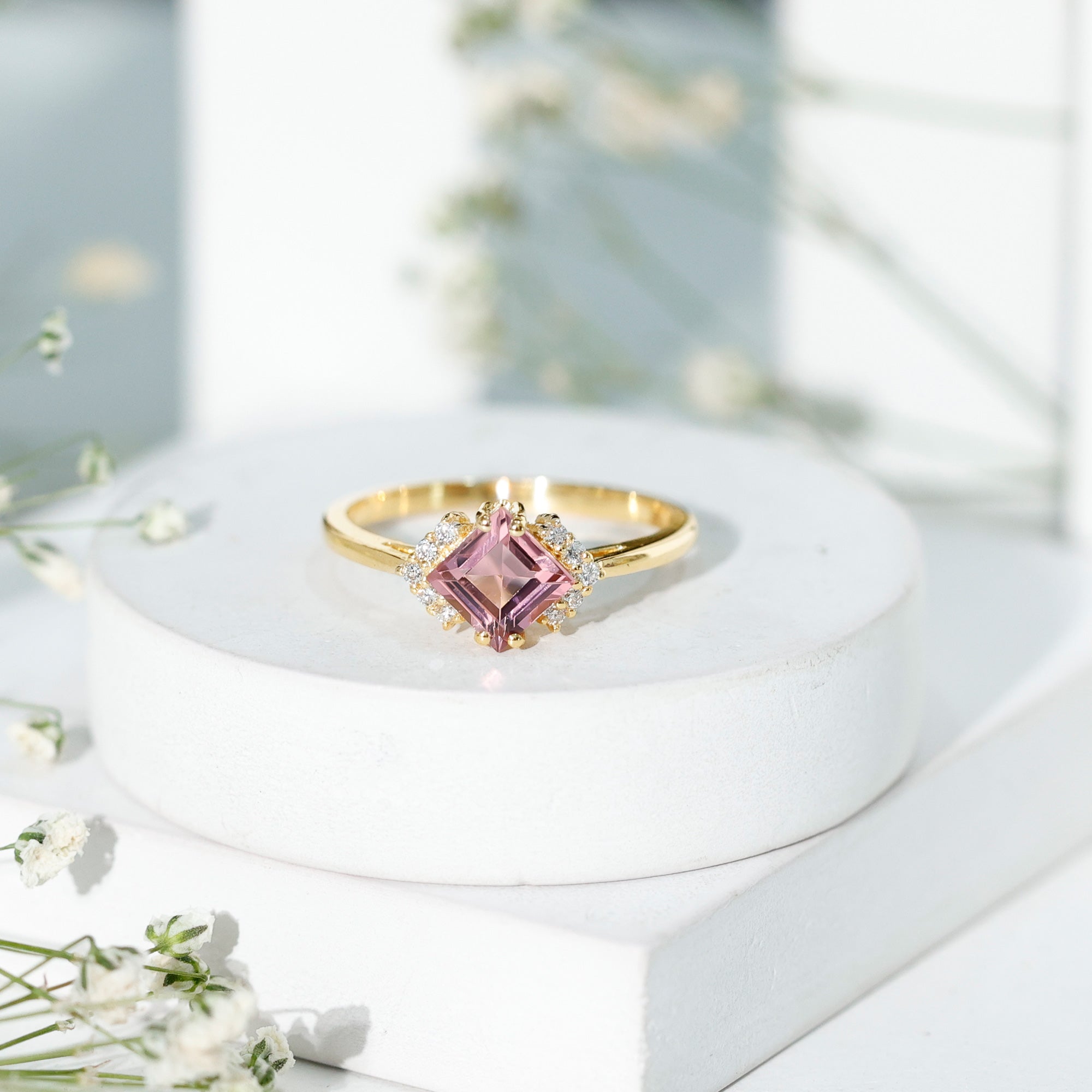 Princess Cut Pink Tourmaline Engagement Ring with Diamond Accent
