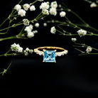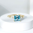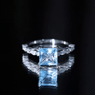 Princess Cut Sky Blue Topaz Solitaire Engagement Ring with Moissanite