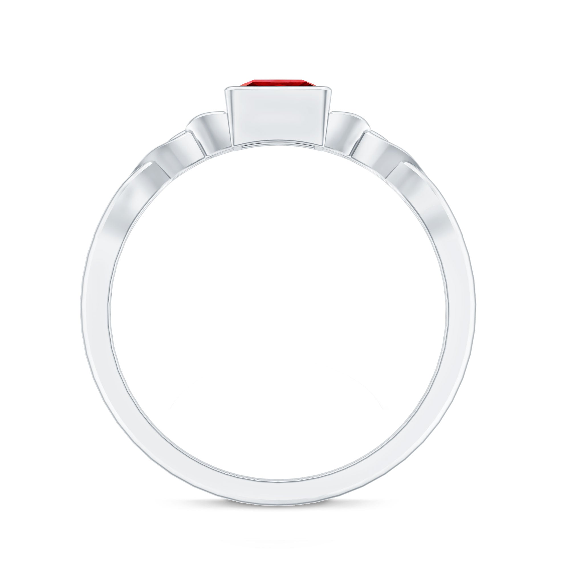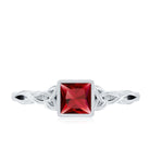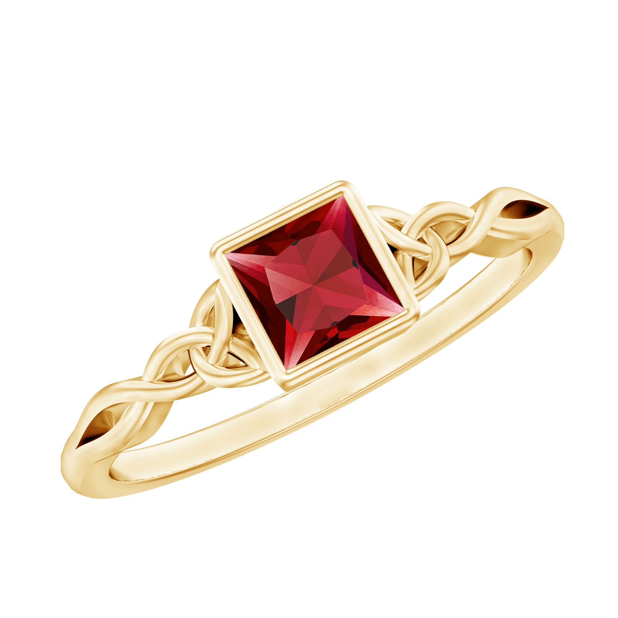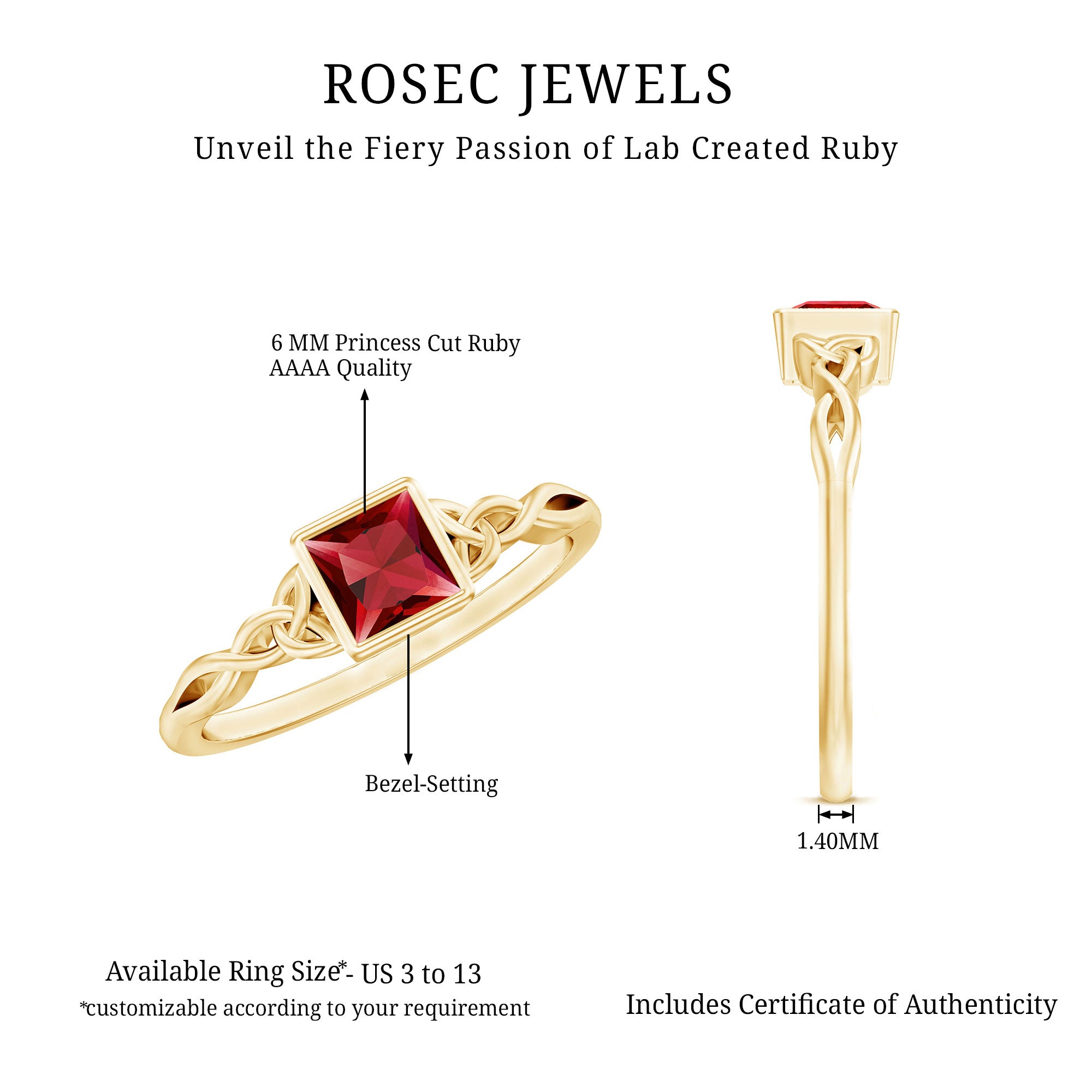 Princess Cut Solitaire Created Ruby Celtic Knot Ring in Bezel Setting