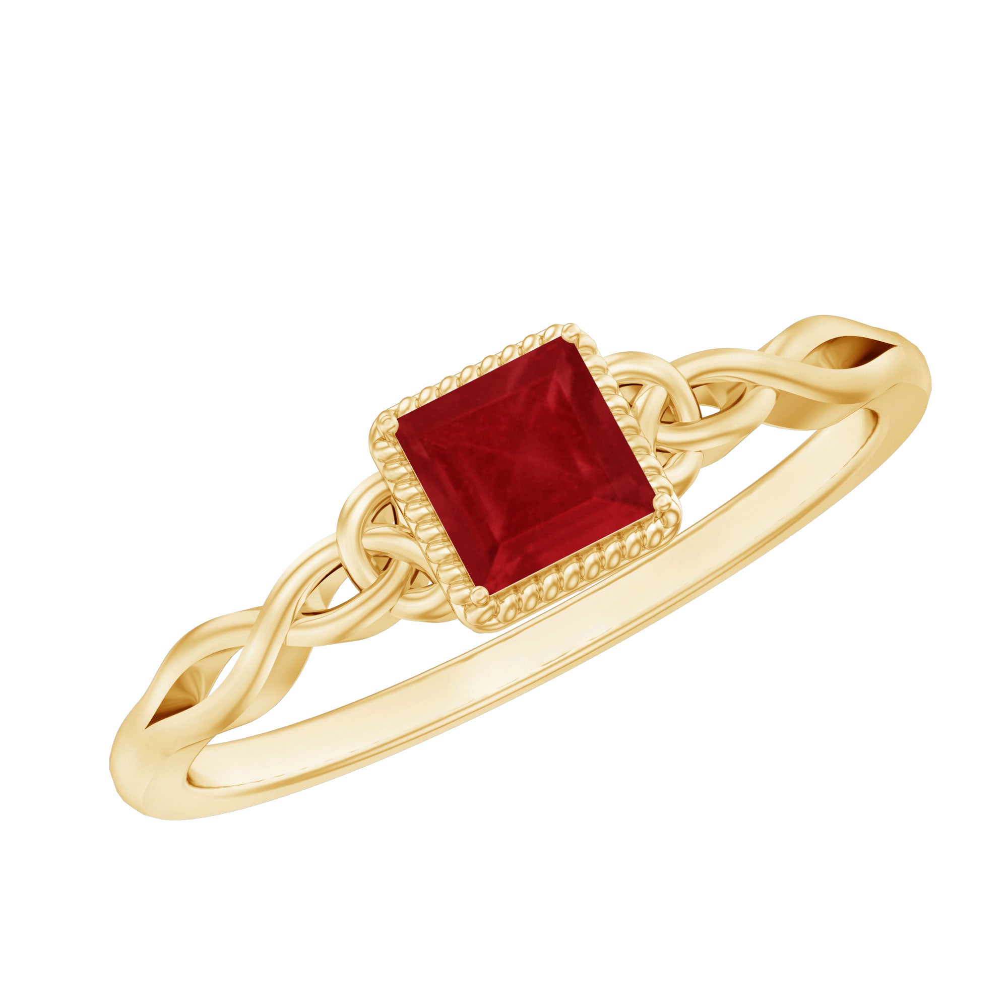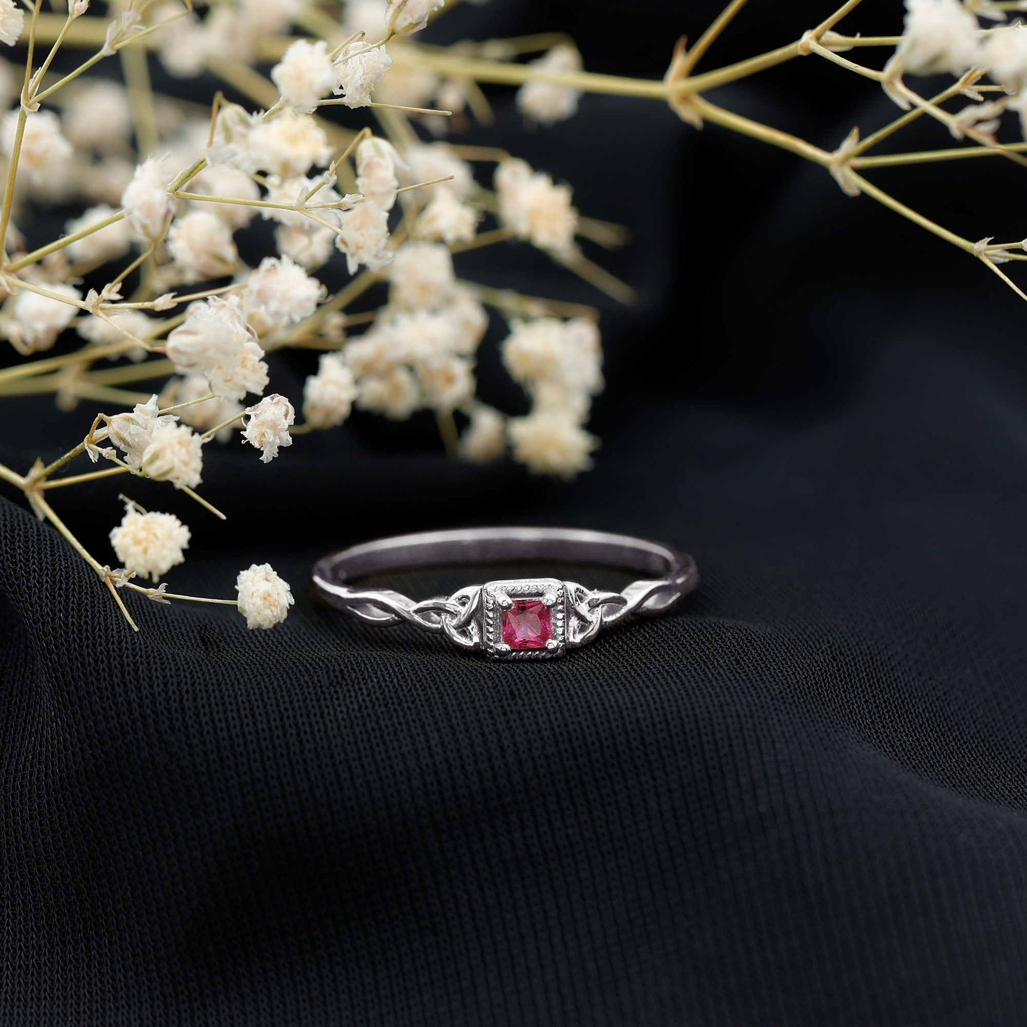 Princess Cut Solitaire Ruby Celtic Knot Ring