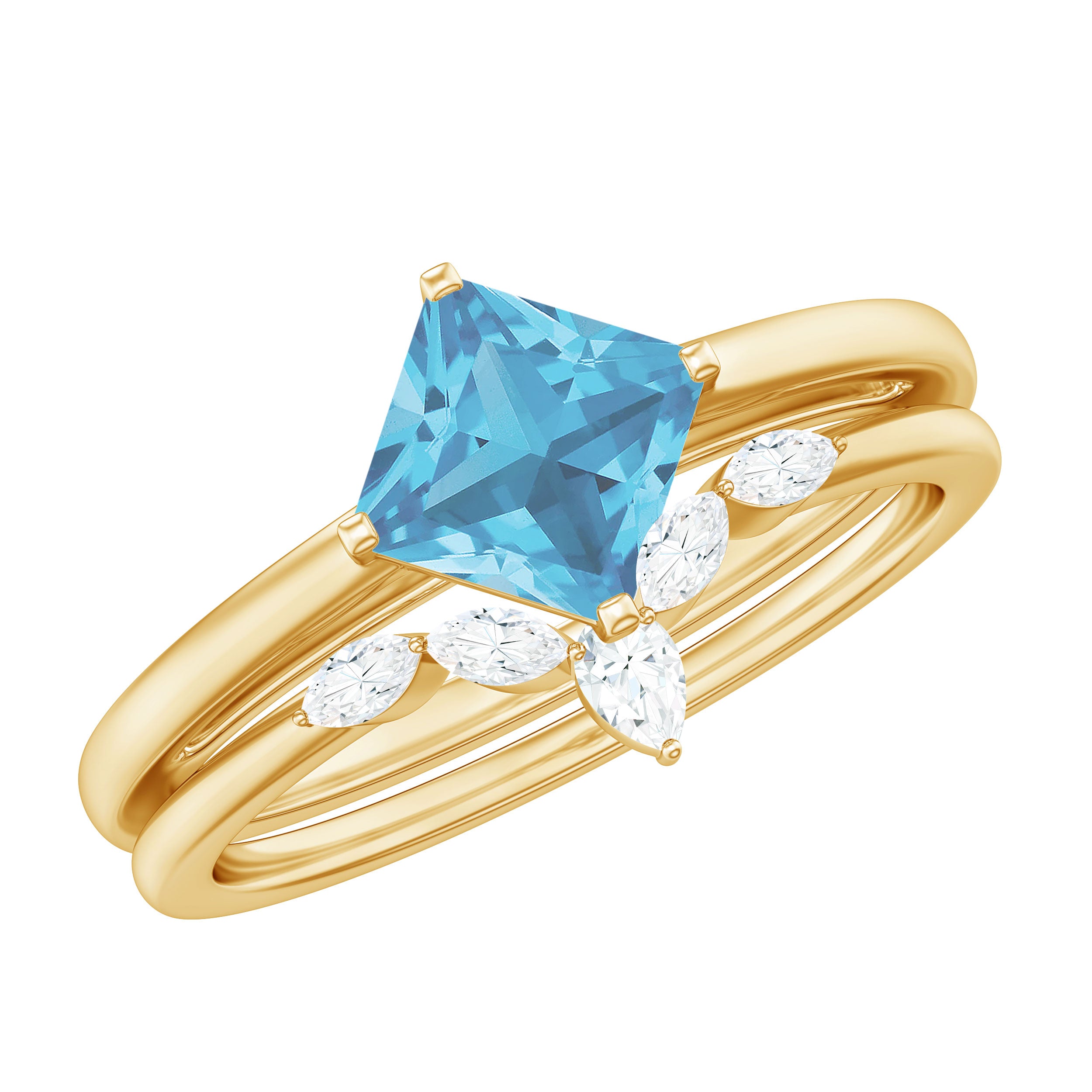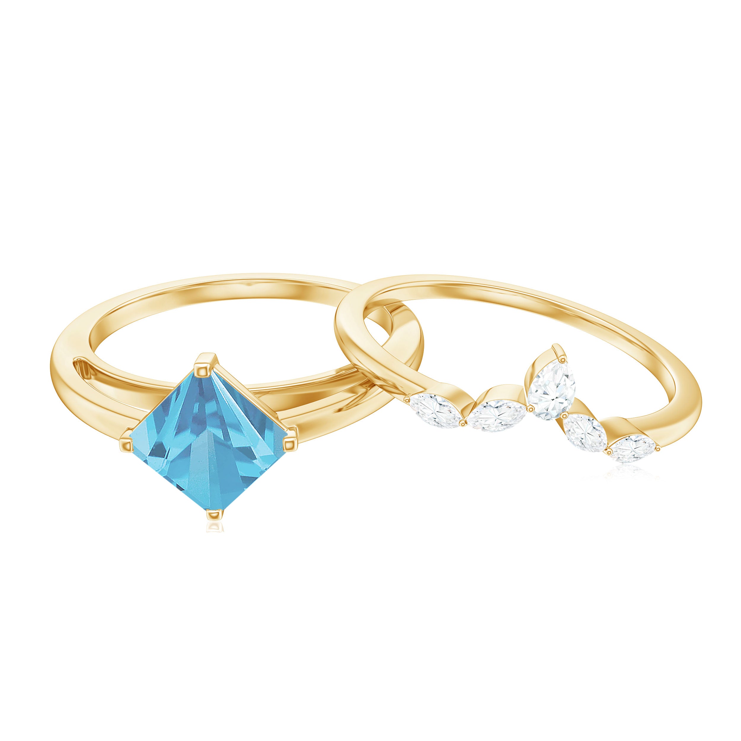 Elevate your look with this Princess Cut Swiss Blue Topaz Solitaire Ring Set, adorned with the enchanting sparkle of Diamond. With impeccable craftsmanship and attention to detail, this Blue Topaz Ring Set exudes grace and elegance. Seal your commitment with this regal treasure, a testament to the majesty of love and the brilliance of everlasting devotion.