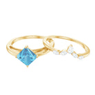 Princess Cut Swiss Blue Topaz Solitaire Ring Set with Diamond
