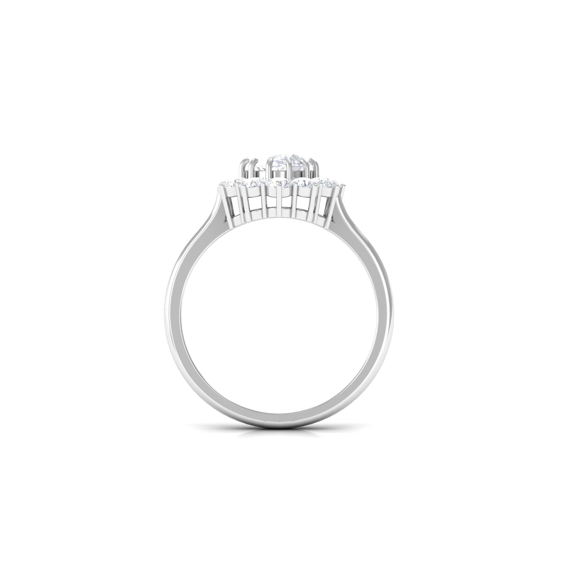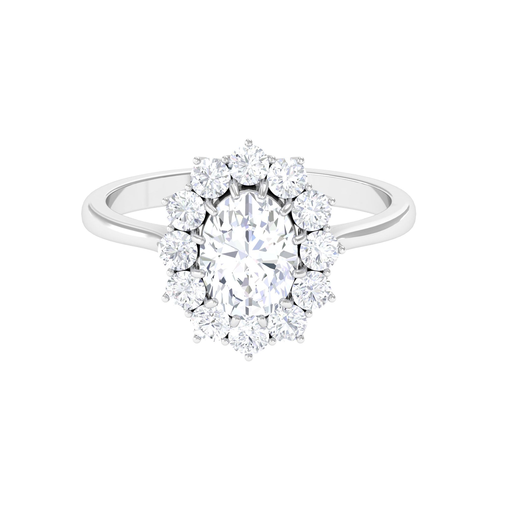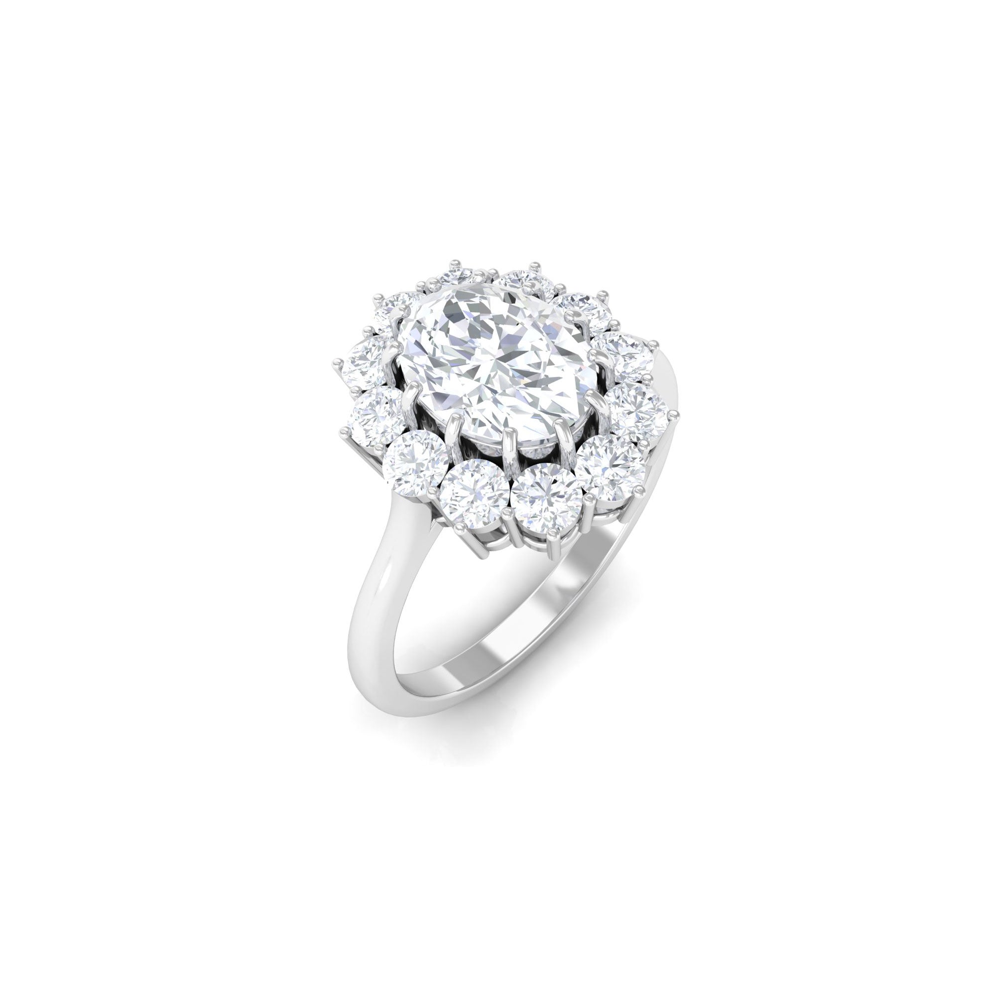 Crafted from solid gold, this stunning zircon engagement ring takes inspiration from Princess Diana and features an oval-cut zircon stone set in a prong setting. The stone is encircled by a halo of dainty round zircon, adding to the rings overall beauty and elegance.