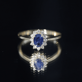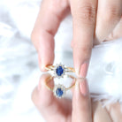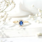 Adorn your finger with this regal Princess Diana-inspired Engagement Ring featuring an Oval Cut Blue Sapphire in a Prong Setting and accentuated with Diamonds. Made with solid gold, this Diamond accent ring exudes luxury and sophistication.