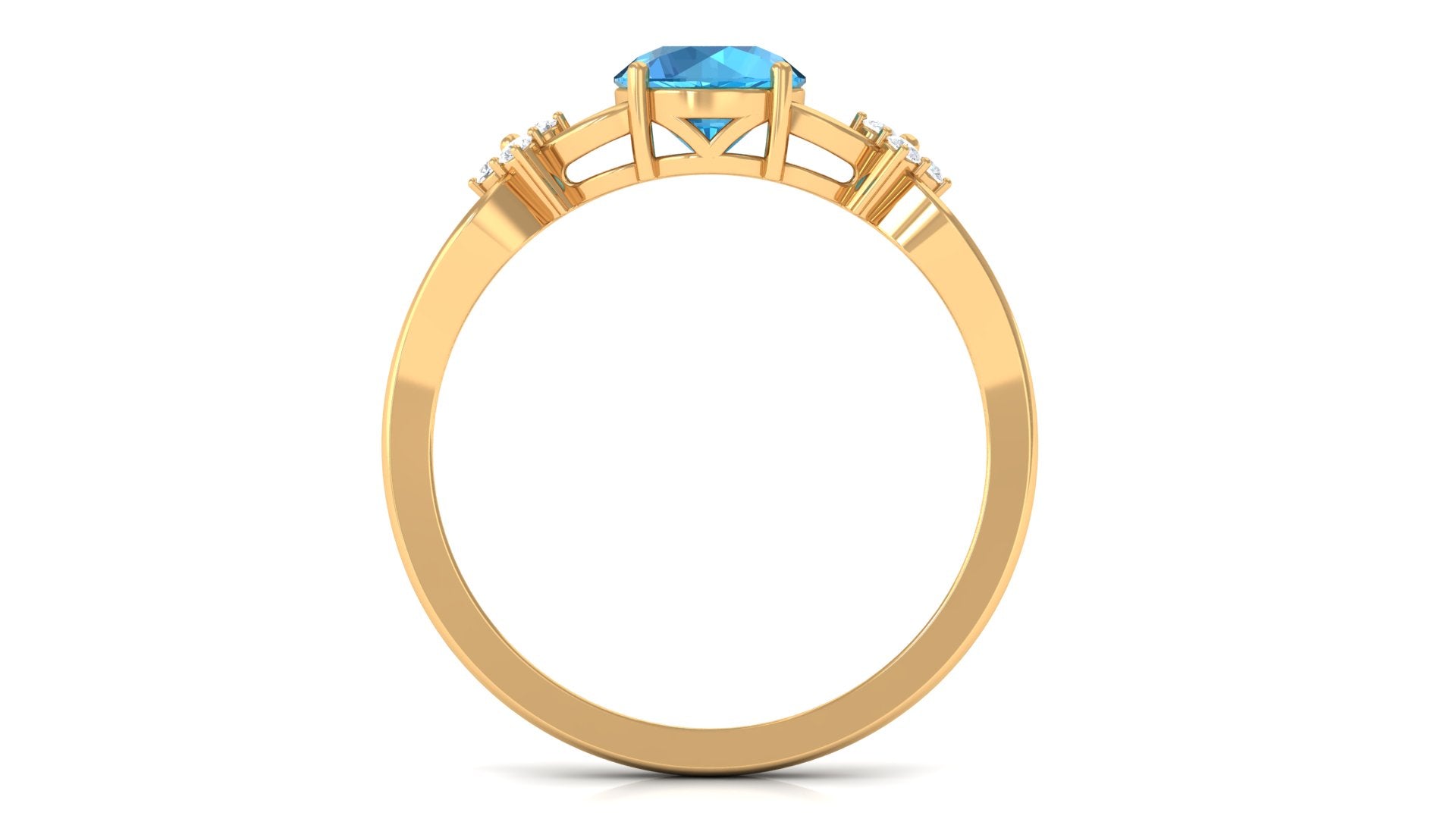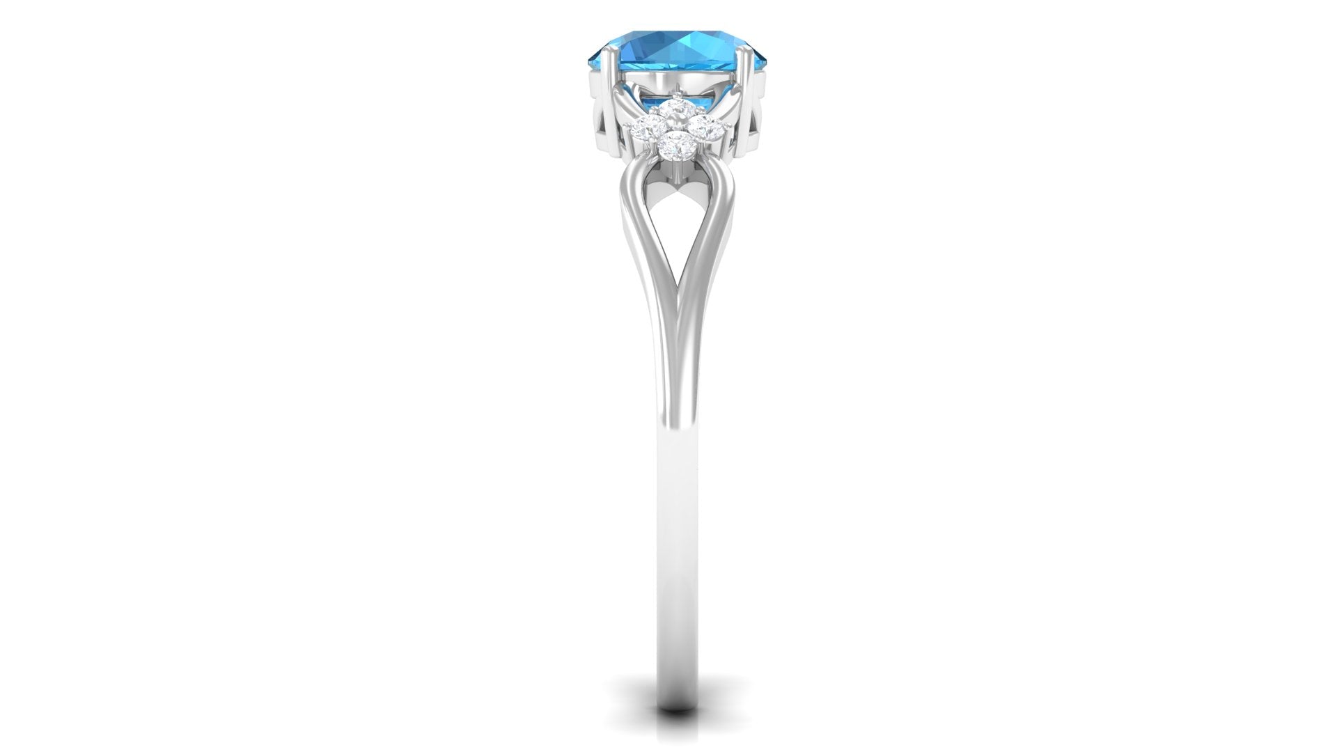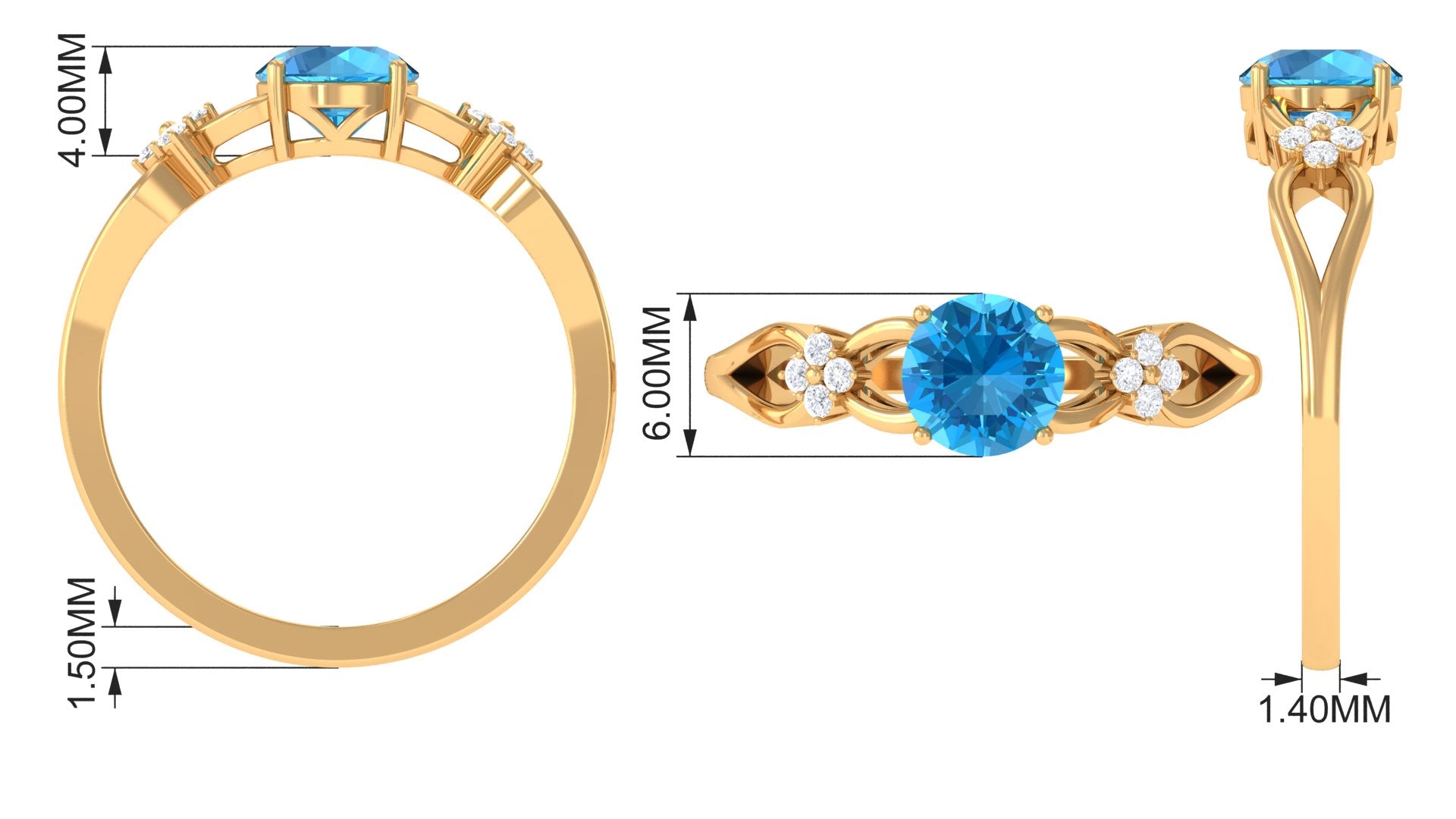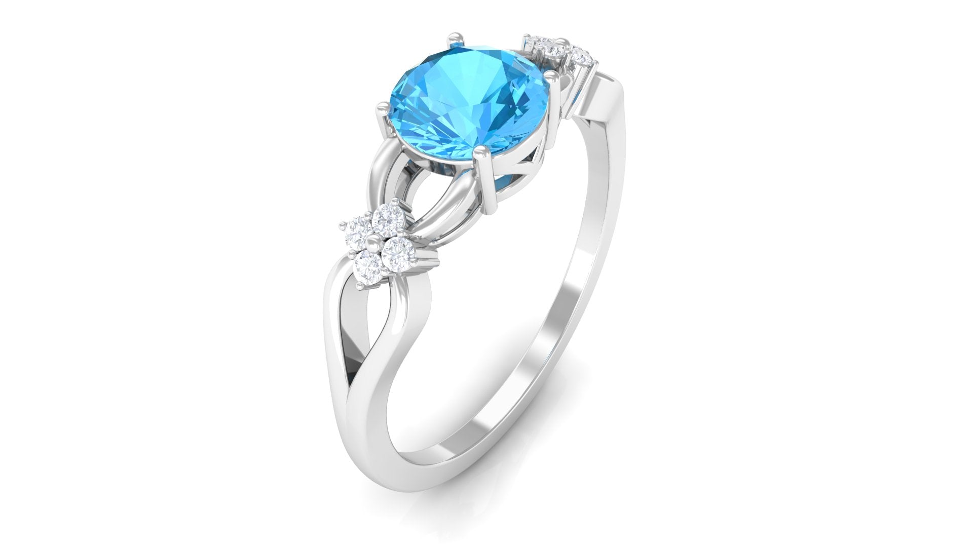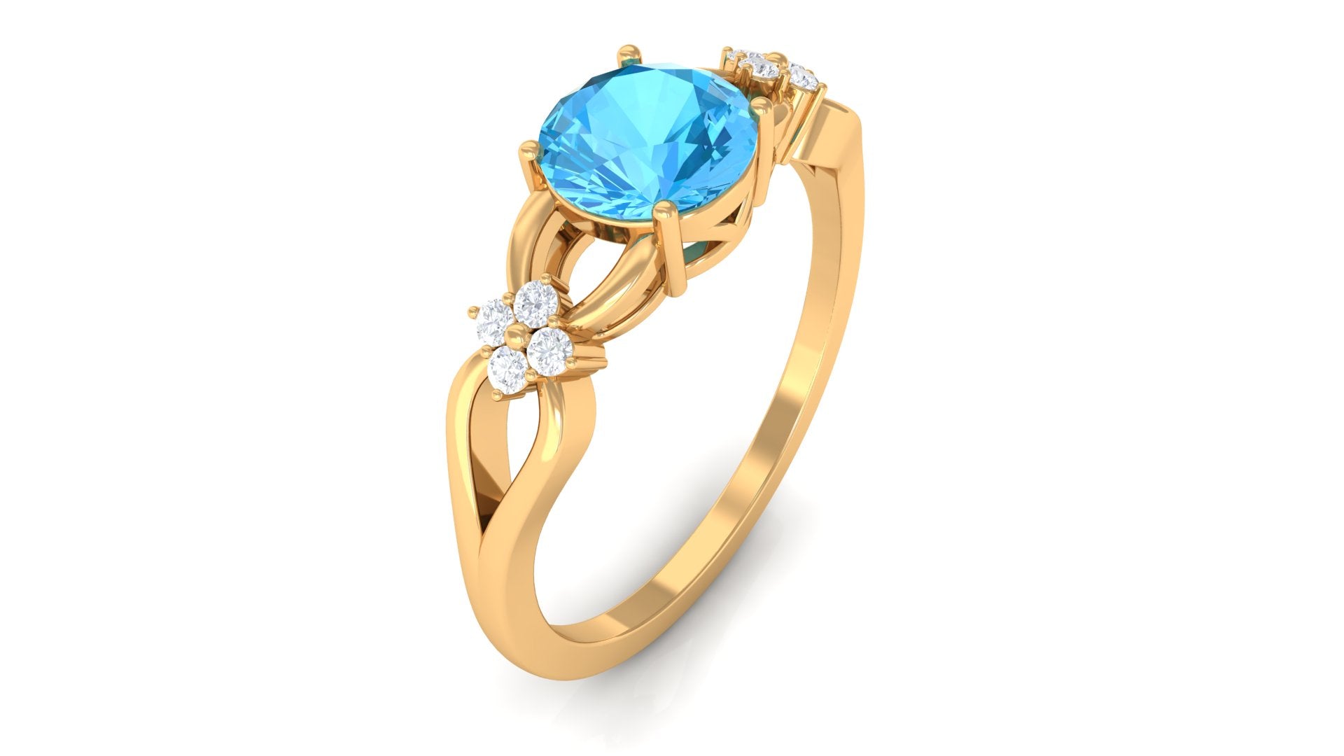 Grab this alluring Swiss Blue Topaz Floral Ring embellished with Round Shape Swiss Blue Topaz secured by 4 Prong Setting while dainty Round Diamond studded on the shank. This amazing Swiss Blue Topaz Ring is an excellent choice for your special one to present as a Birthday Gift or an Anniversary Gift.