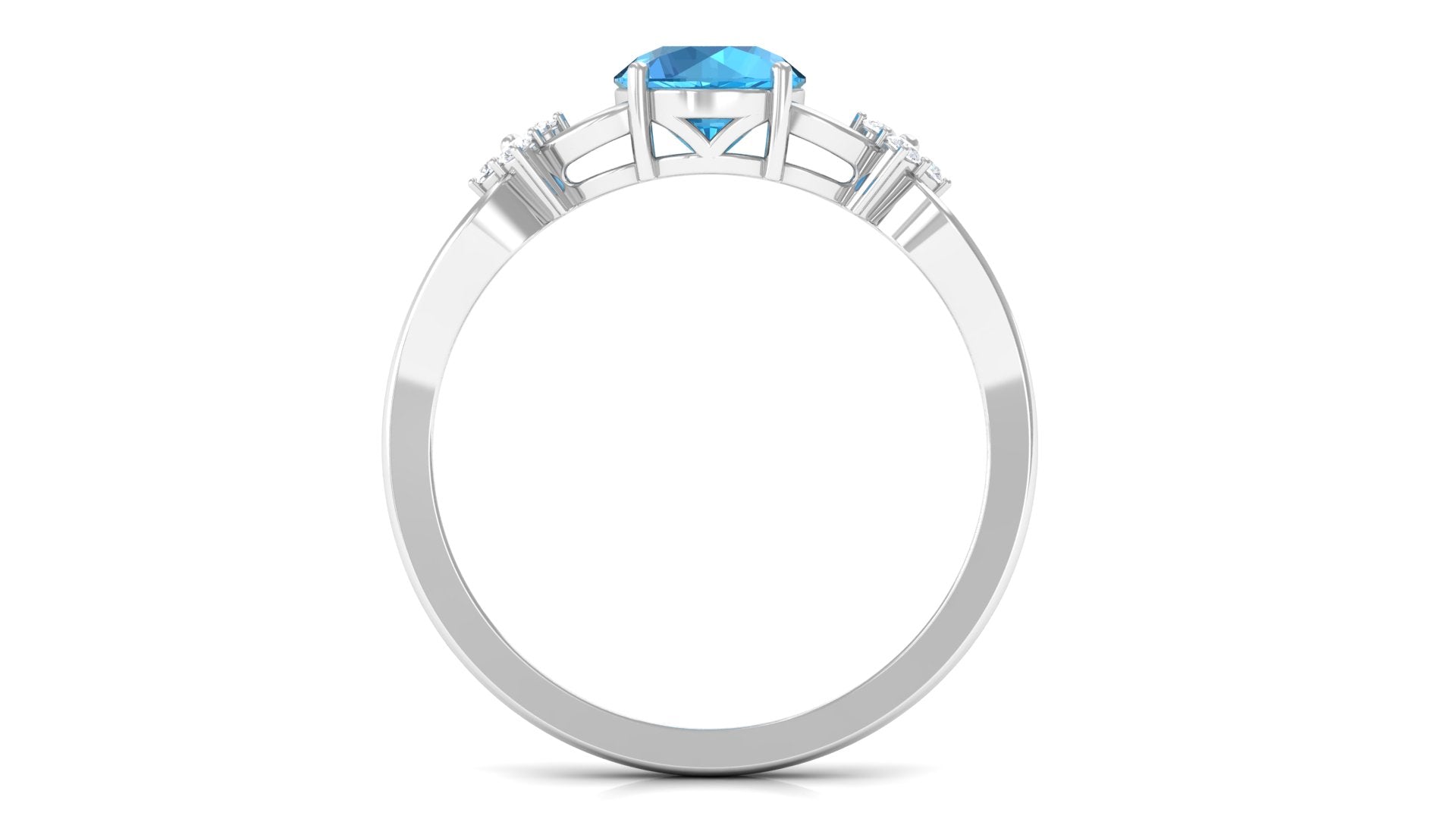 Pure Swiss Blue Topaz and Diamond Floral Solitaire Crossover Ring