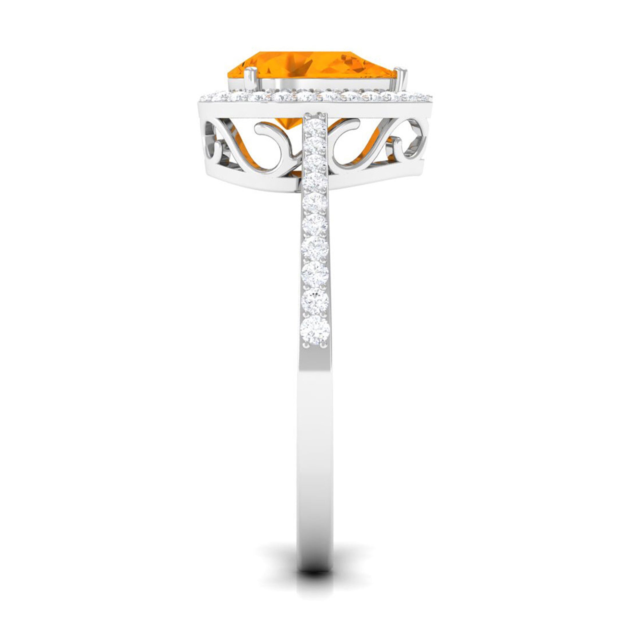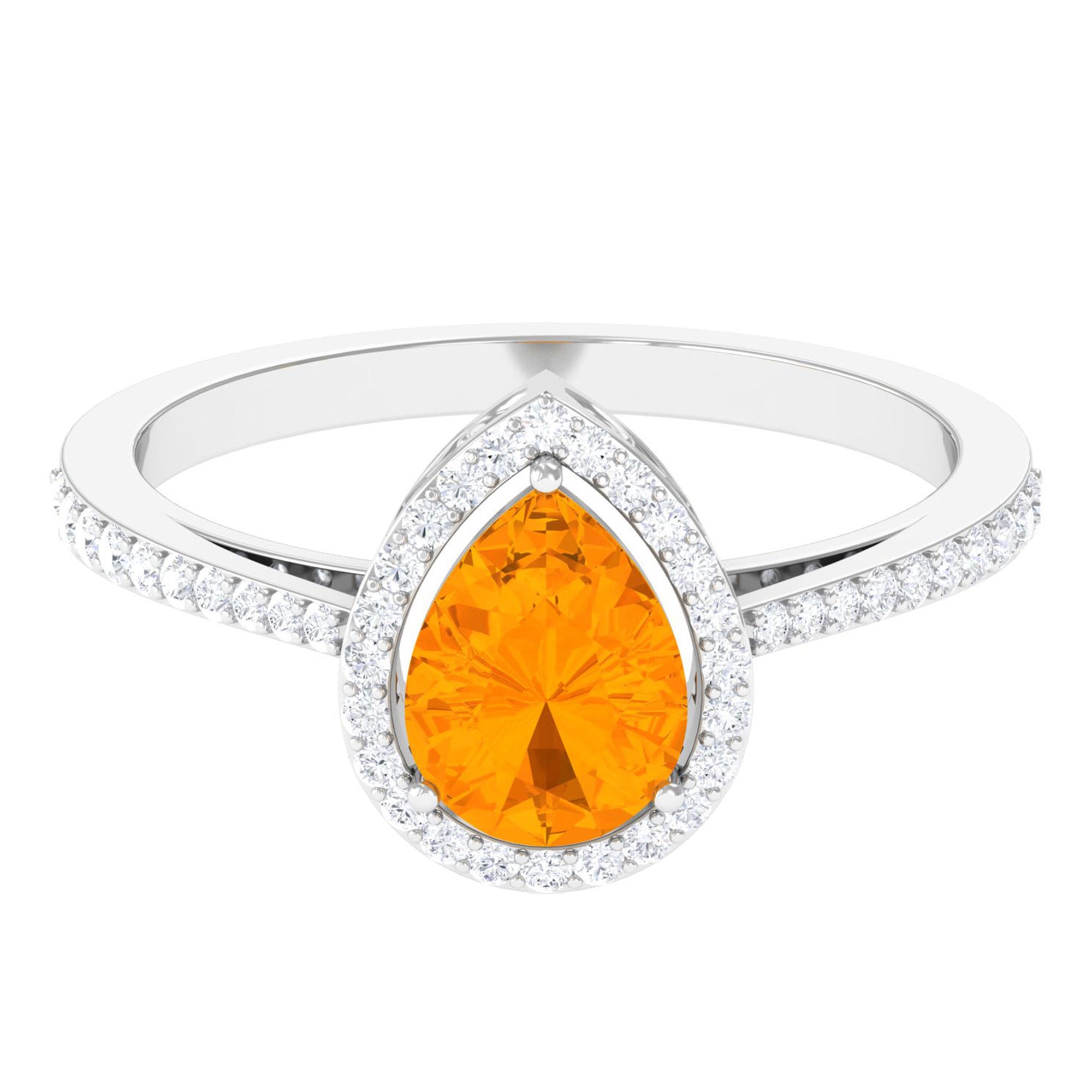 Let her heart race the instant she sees this Fire Opal Engagement Ring, where richness and elegance come together in perfect harmony. The centerpiece is a 5X7 MM pear shape fire opal, securely held in 3-prong setting. Surrounding it is a floating halo of round cut diamonds, forming a radiant frame that elevates the opals beauty to new levels. The band is also adorned with small diamonds, ensuring the Halo Engagement Ring sparkles from every angle. The striking contrast between the AAA quality fire opal and the shimmering HI-SI quality diamonds makes it truly eye-catching. This Teardrop Engagement Ring is designed not just to impress, but to be experienced. Crafted to embody both boldness and grace, this Opal and Diamond Ring is perfect for both special occasions and everyday wear. Available in a variety of ring sizes to accommodate different hands, it arrives beautifully packaged in a jewelry box, ready for gifting or for keeping as your own cherished piece. With its combination of rich color, delicate sparkle, and timeless design, this Pear Shape Engagement Ring is more than just jewelry, it is a lasting symbol of love that truly stands out.