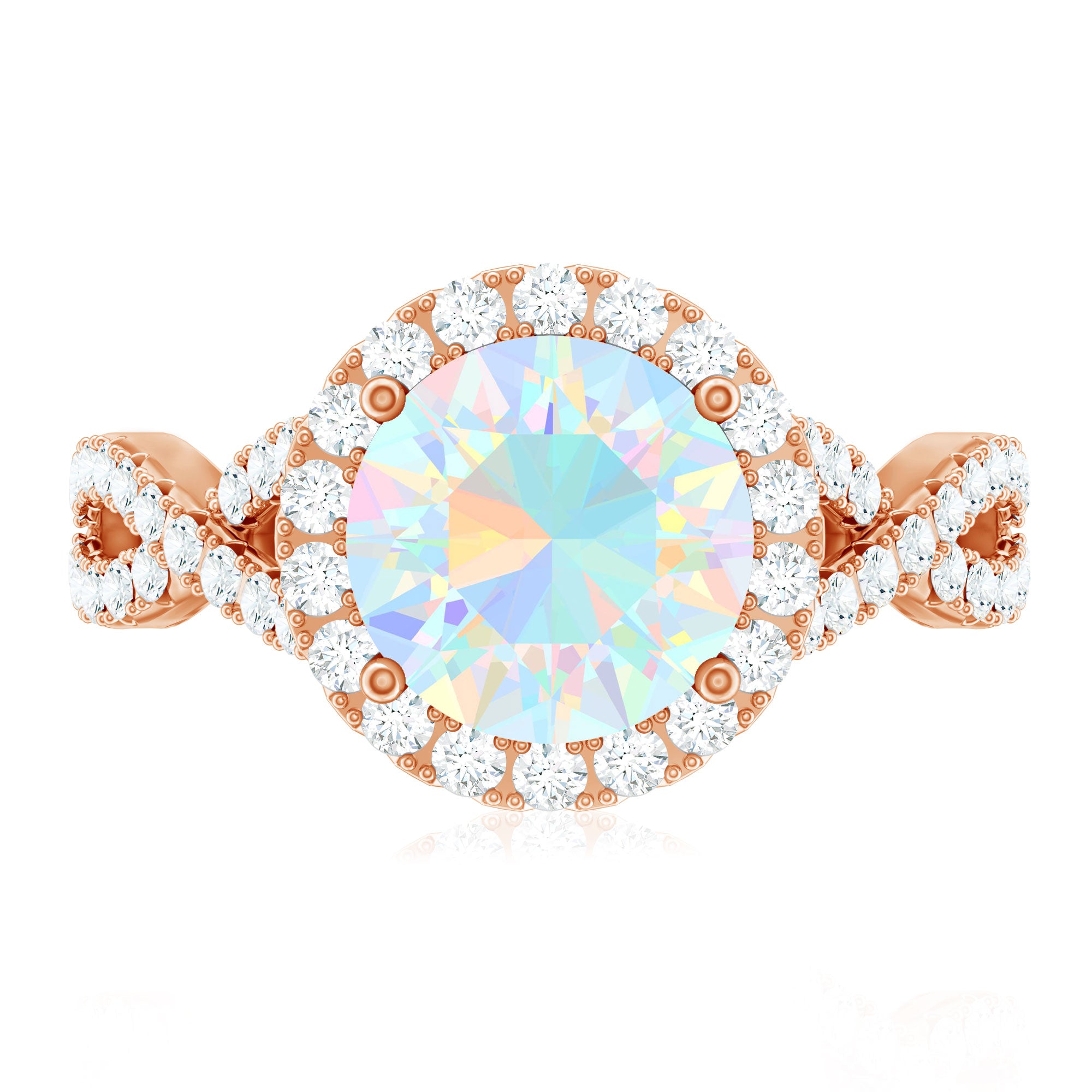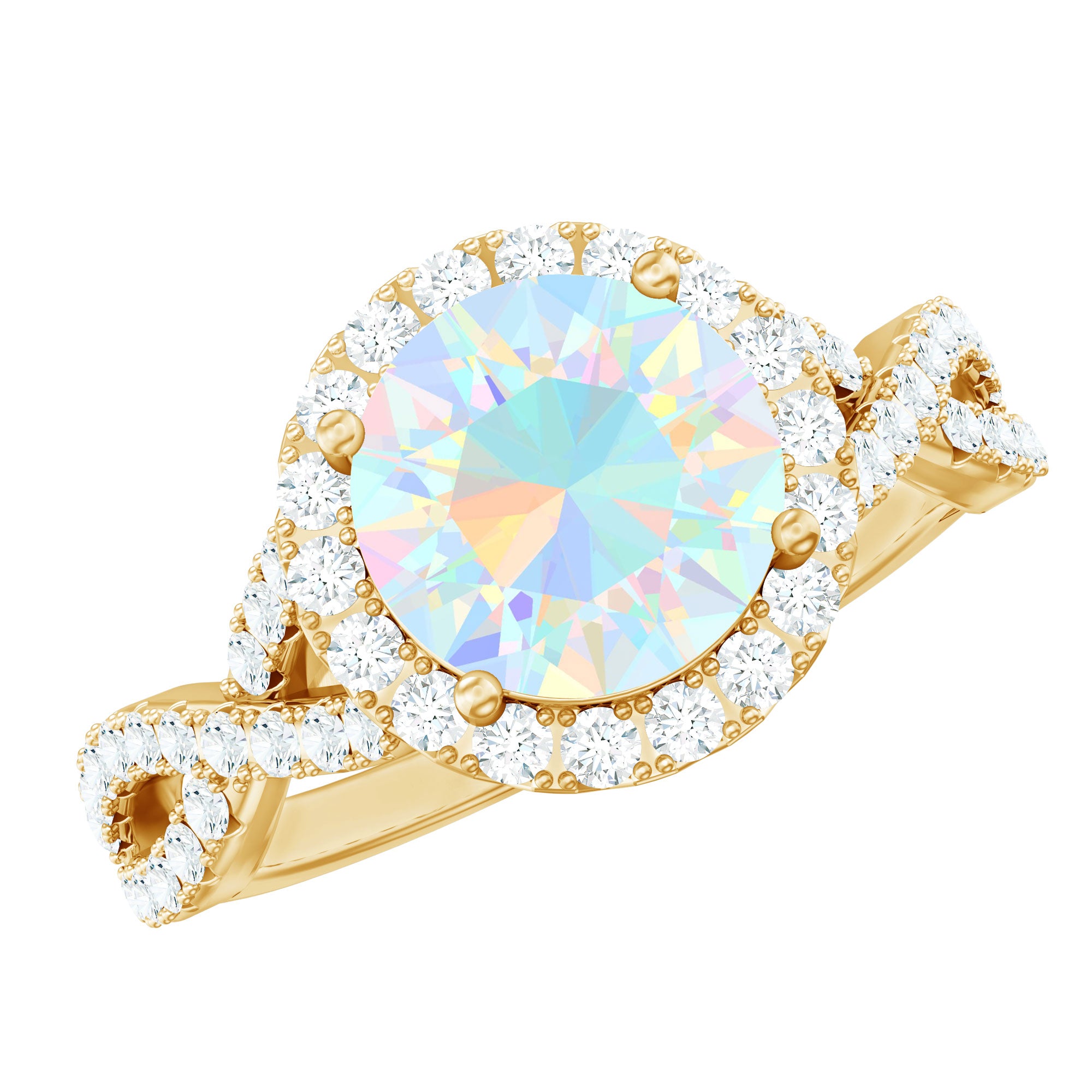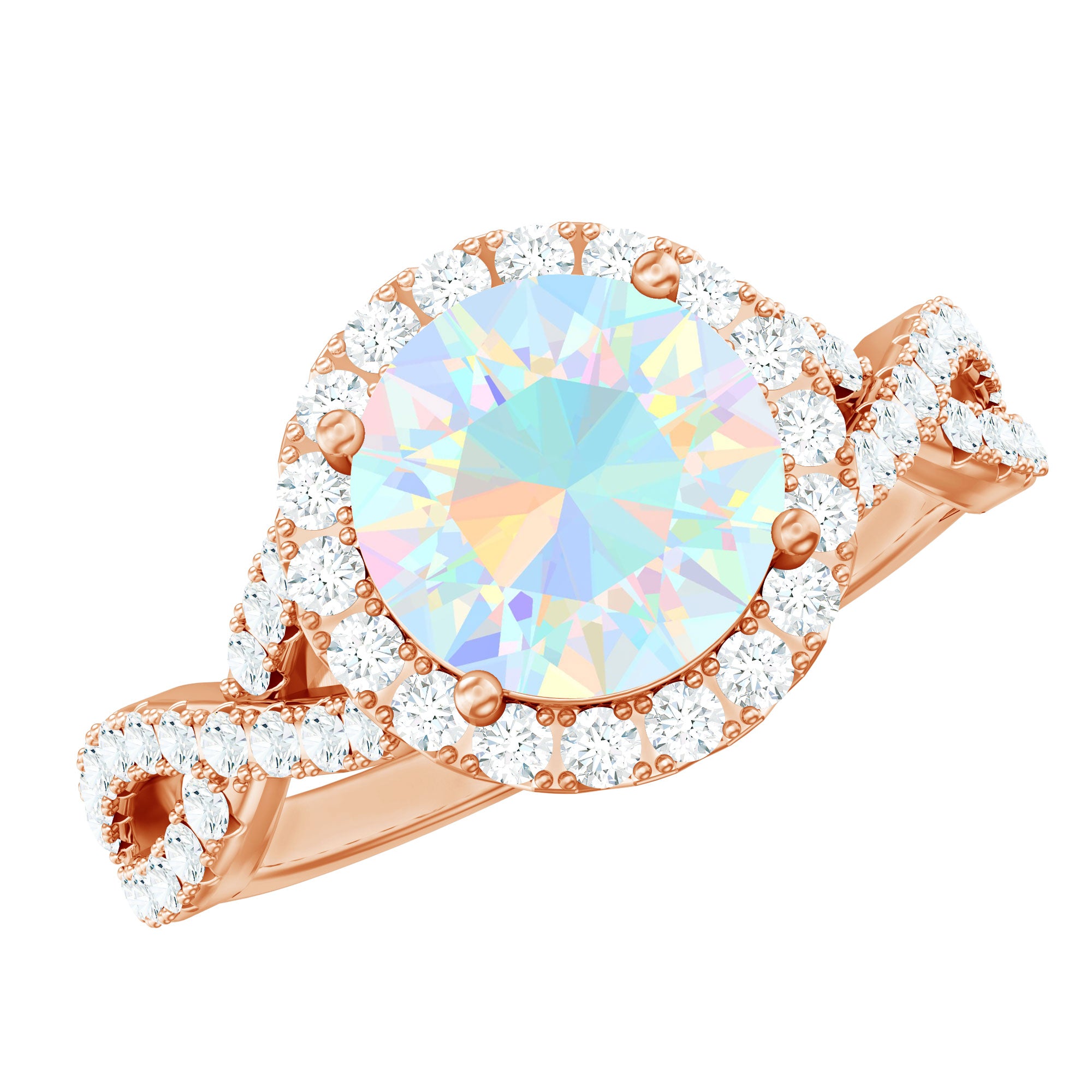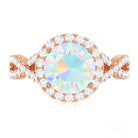 Real 8mm Ethiopian Opal Halo Engagement Ring with Crossover Shank
