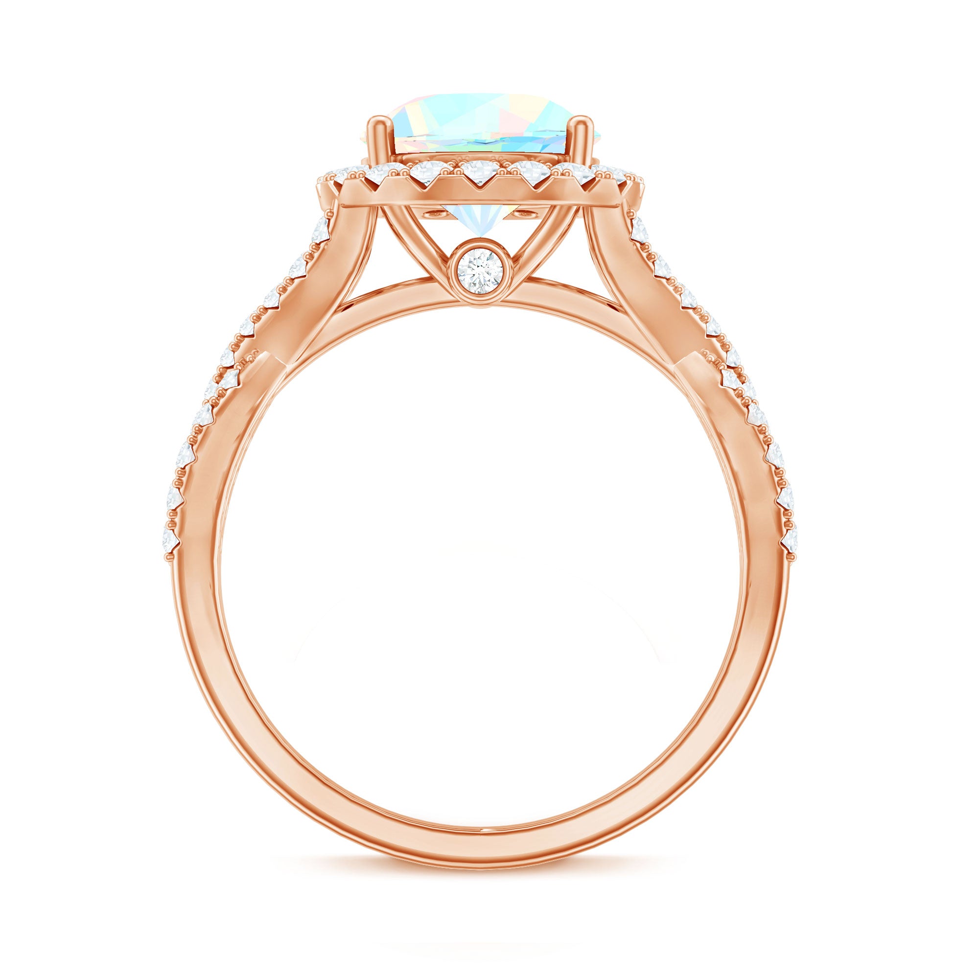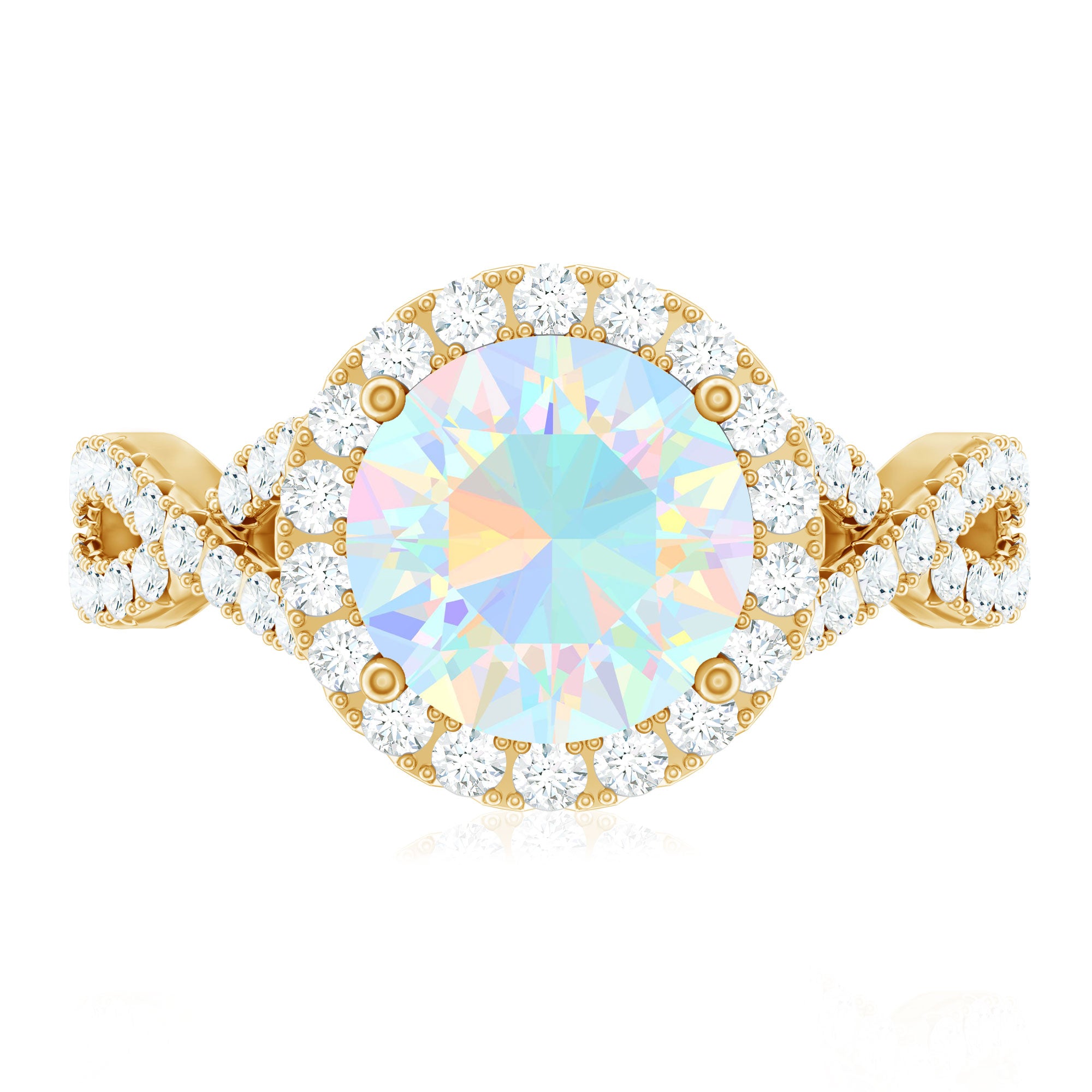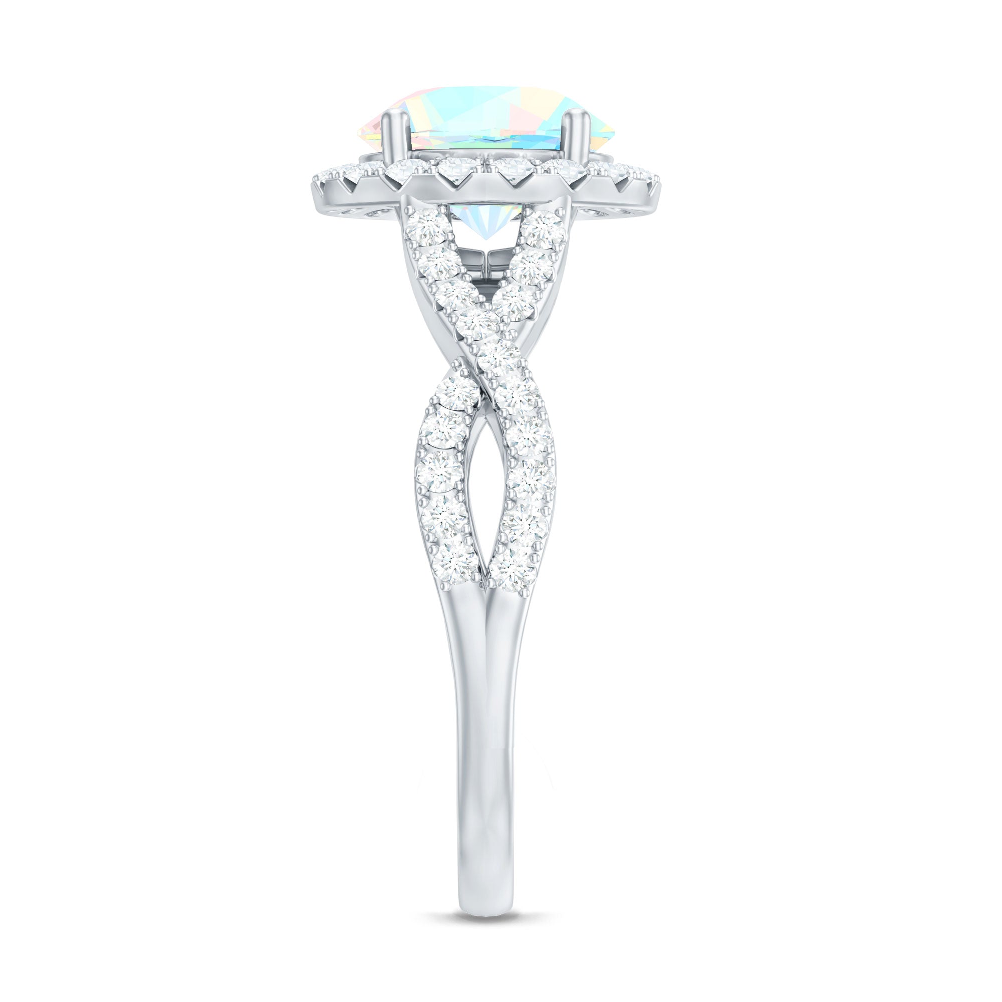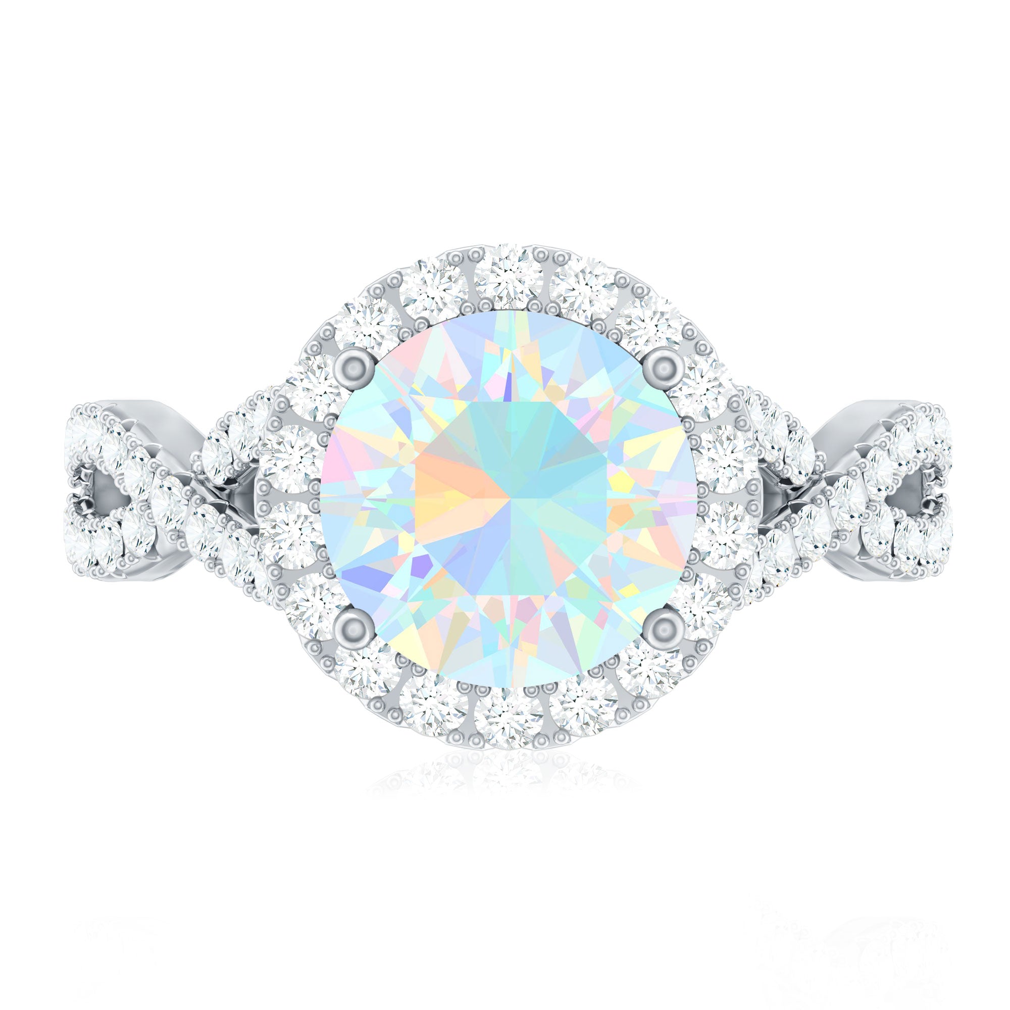 Real 8mm Ethiopian Opal Halo Engagement Ring with Crossover Shank