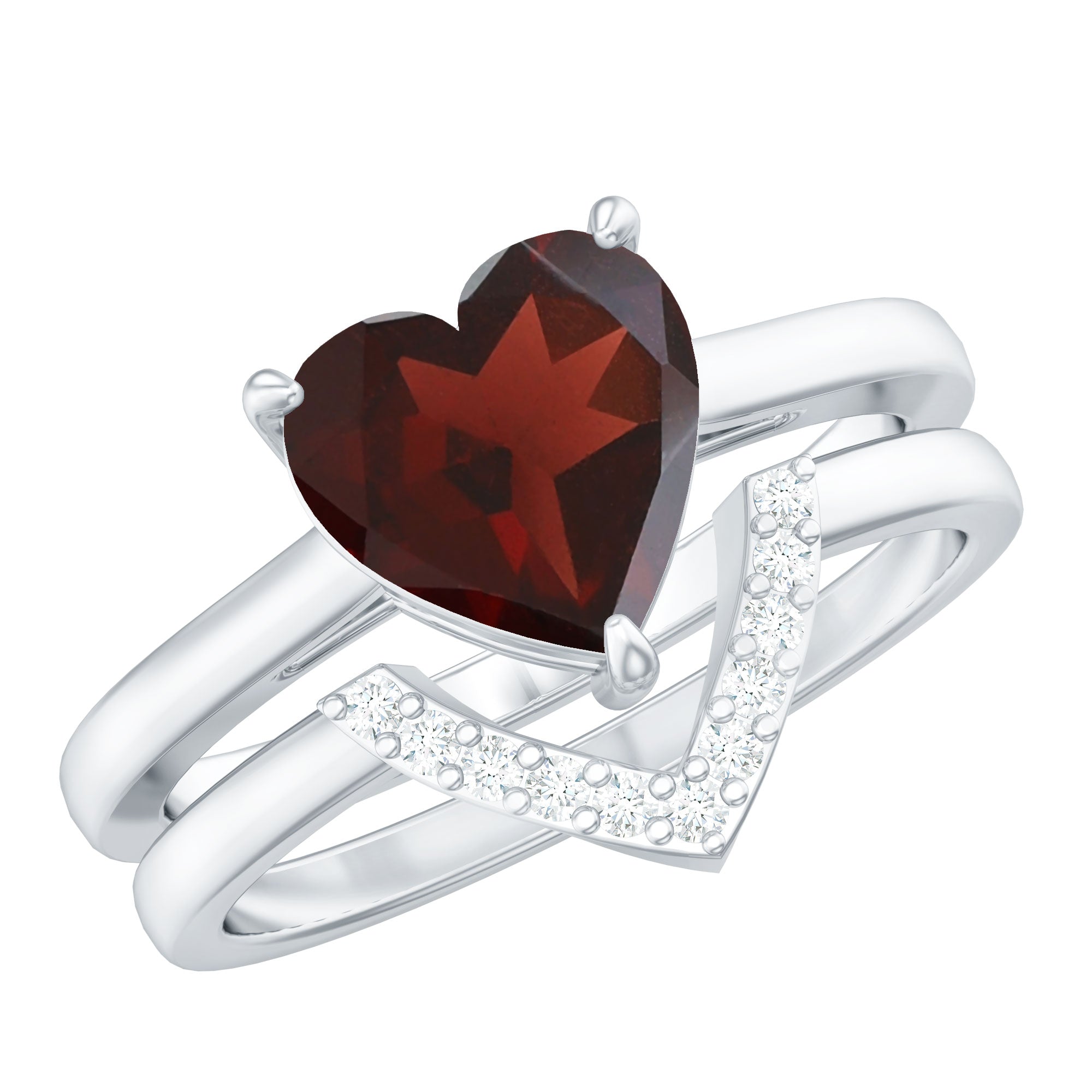 Cherished forever, this Wedding Engagement Ring Set is a beautiful expression of love, devotion and lifelong commitment. The Solitaire Engagement Ring features a striking 8 mm Heart Shape Garnet at its center in Claw Setting, glowing with a romantic red hue that symbolizes passion and deep affection. The accompanying Curved Wedding Band is adorned with sparkling Diamond stones, perfectly complementing the engagement ring while adding a touch of elegance and timeless brilliance. Designed with both style and sentiment in mind, this Garnet Wedding Ring Set balances bold romance with delicate sophistication. The Heart Shape Garnet captures the intensity of love, while the Diamond stones reflect enduring commitment and cherished moments. The Curved design of the Enhancer Ring ensures a seamless fit alongside the engagement ring, creating a flowing design that feels as meaningful as it is stunning. Arriving in a signature jewelry box and available in various sizes, this Heart Shaped Wedding Ring Set is ready to gift, making it perfect for engagements, weddings, anniversaries or as a heartfelt surprise for someone special.