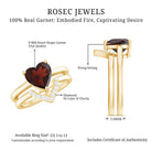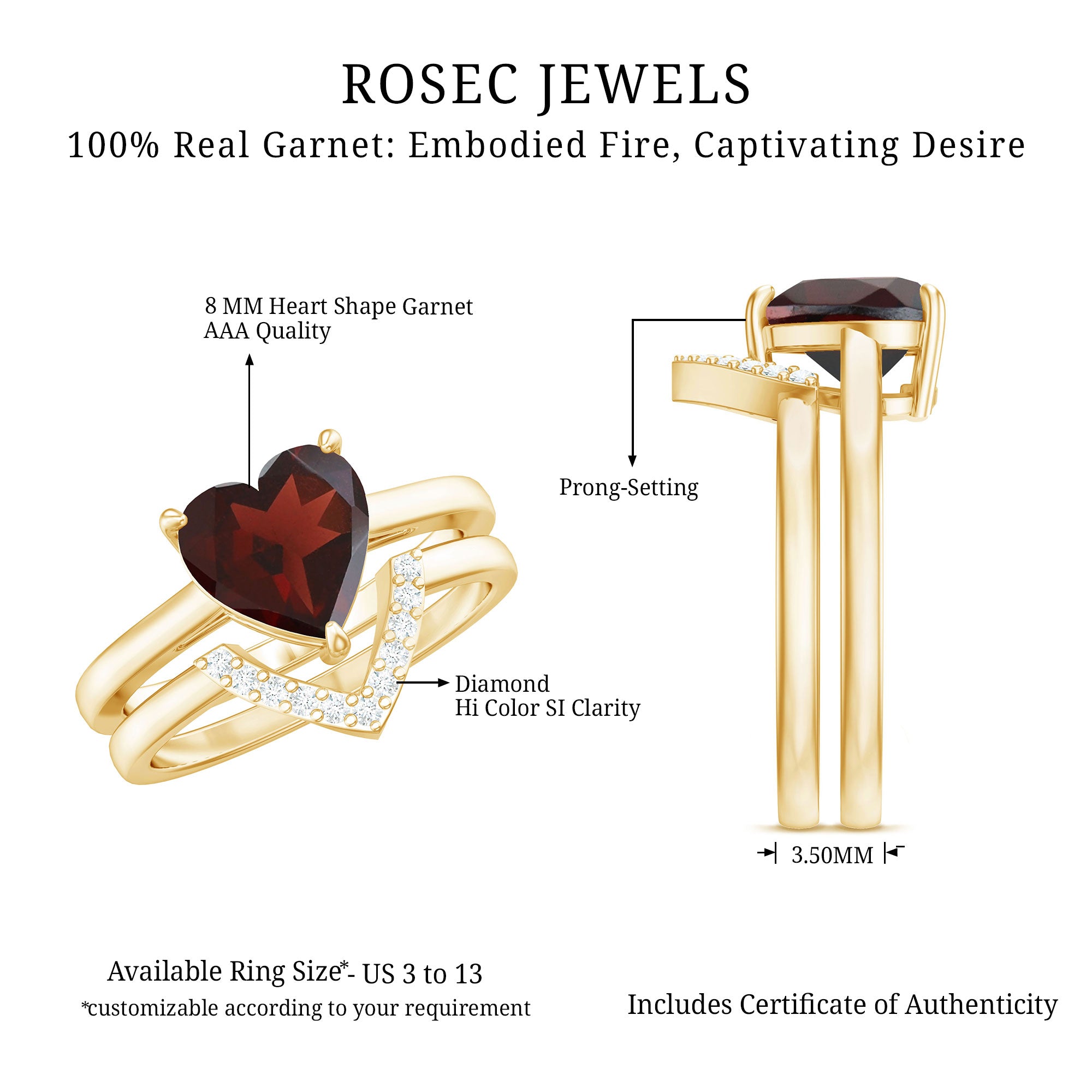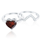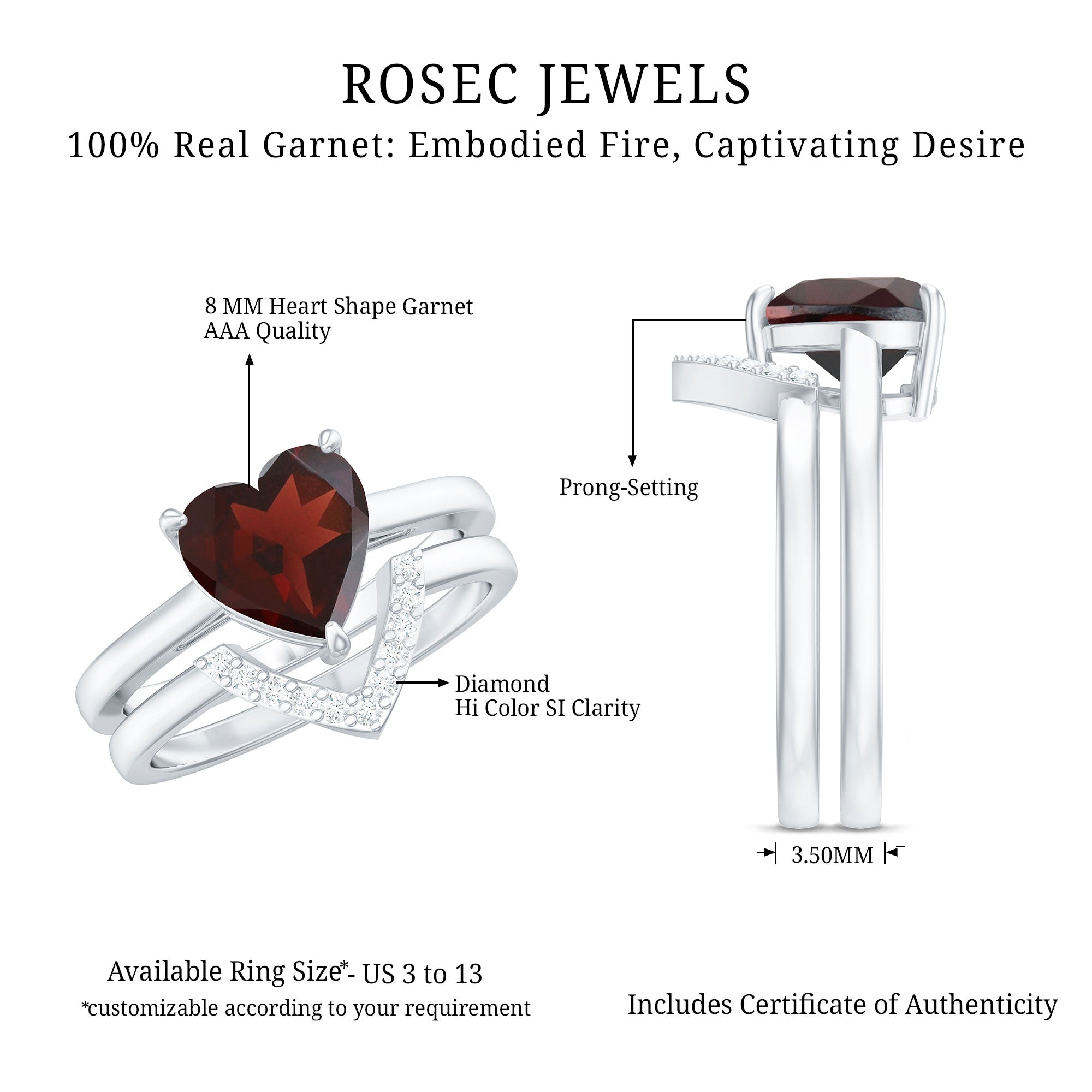 Real 8mm Garnet Diamond Heart Shaped Wedding Engagement Ring Set of 2