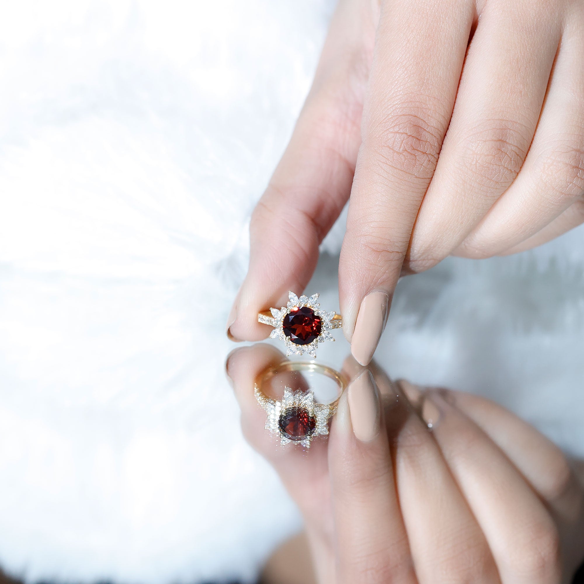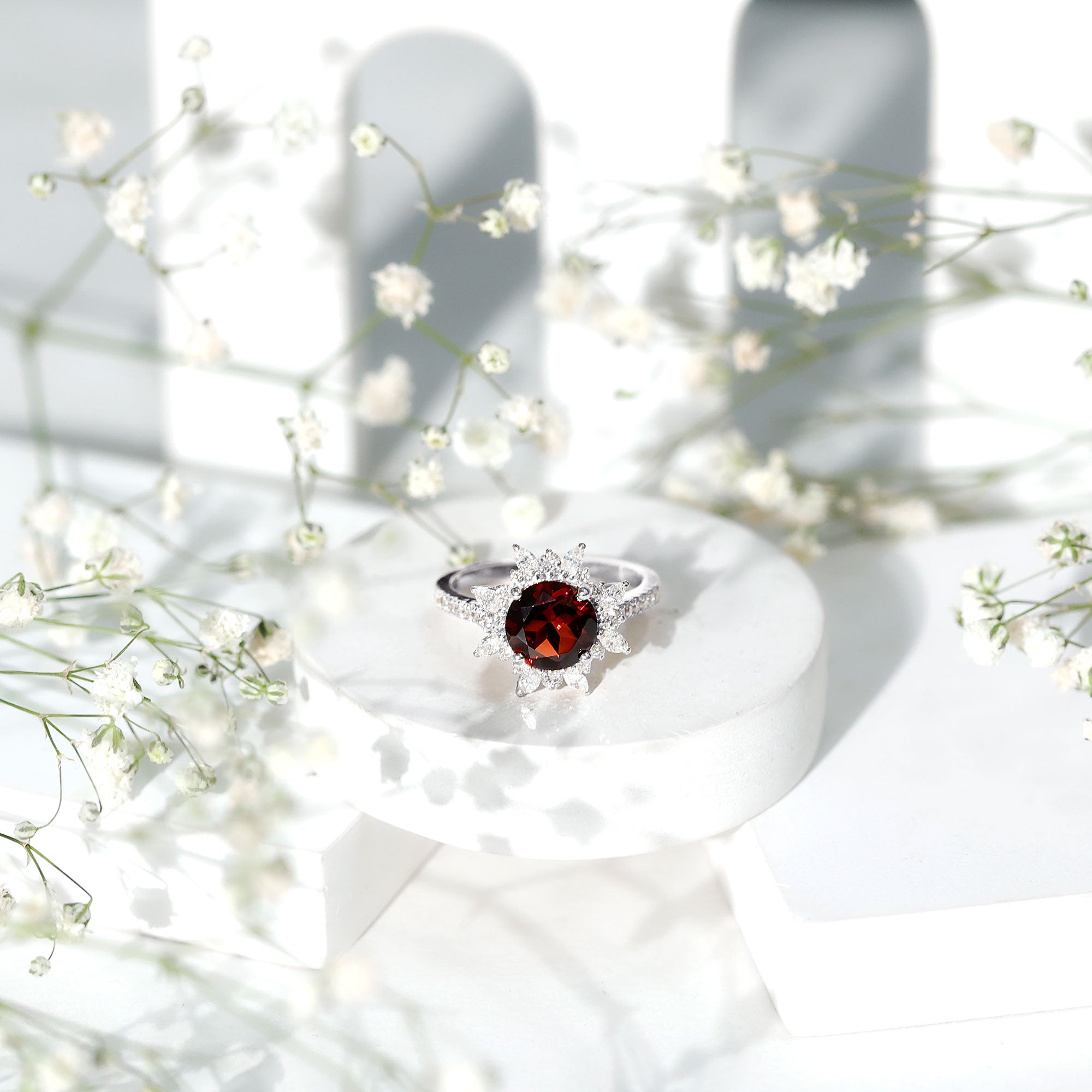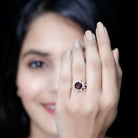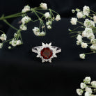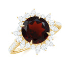 Real 8mm Garnet Statement Engagement Ring with Diamond Halo