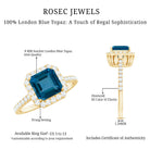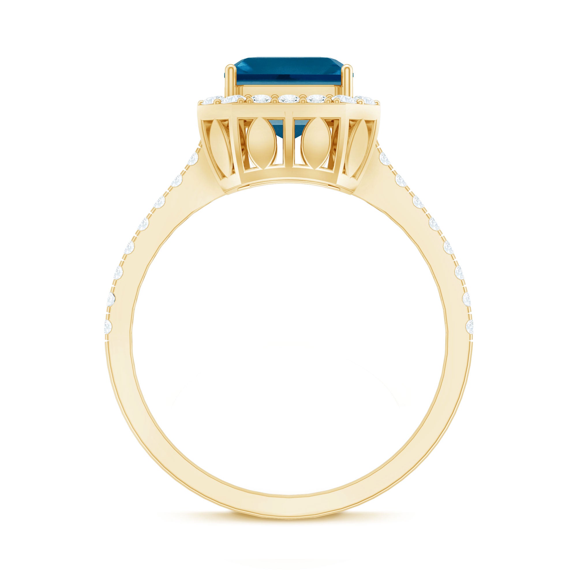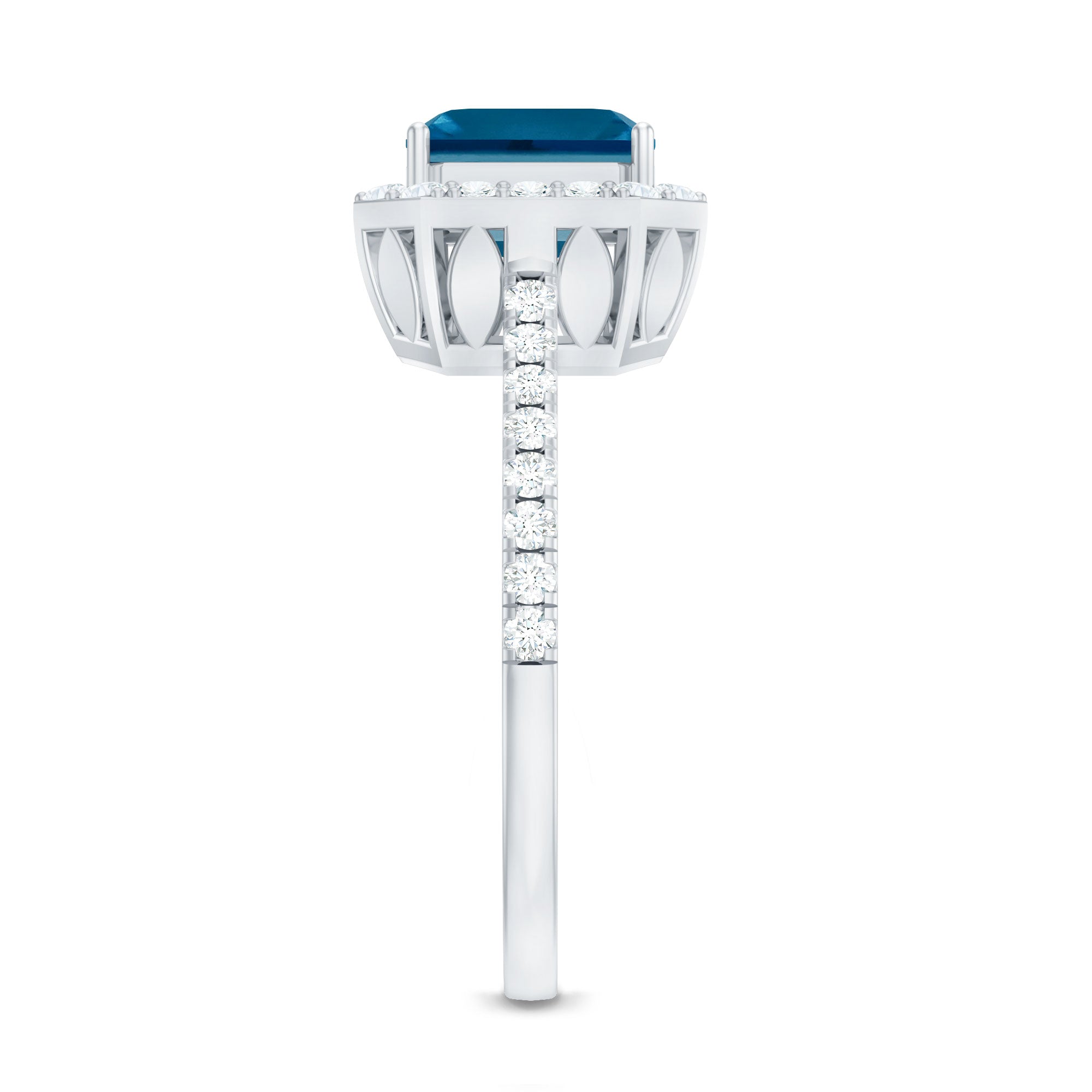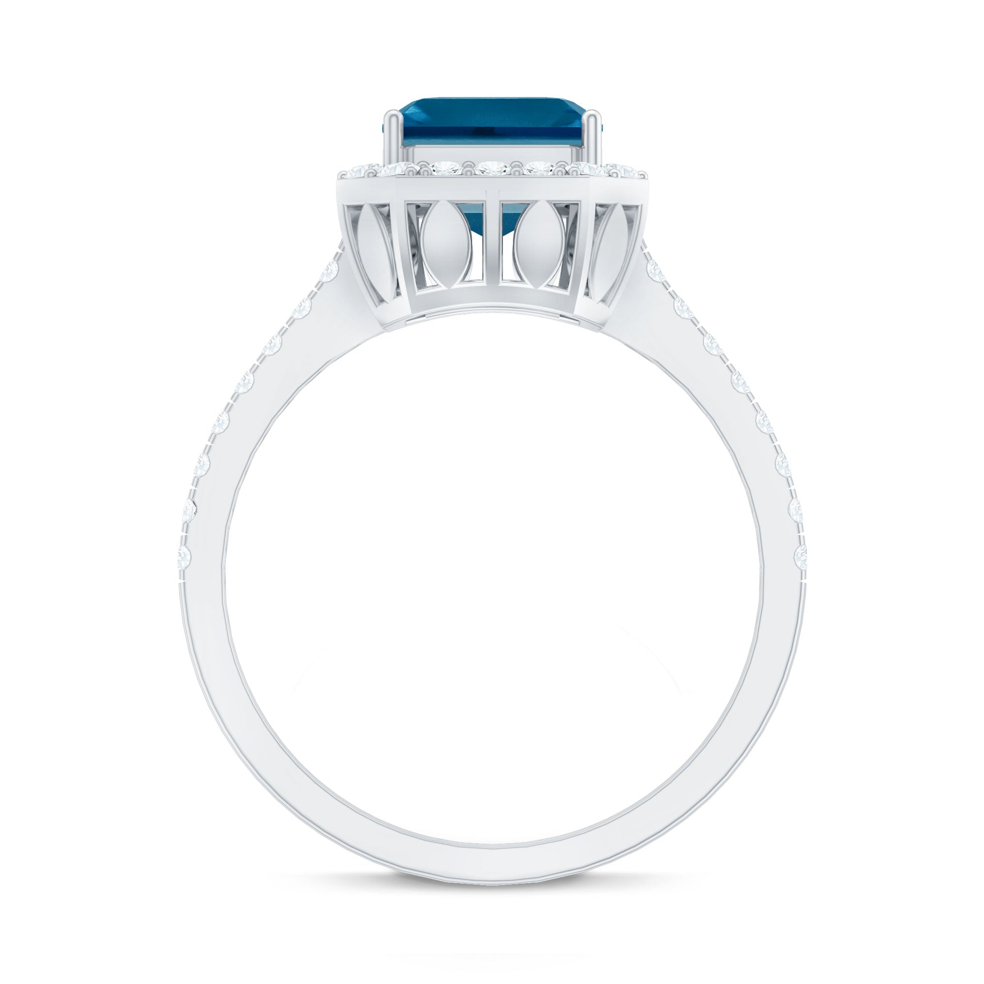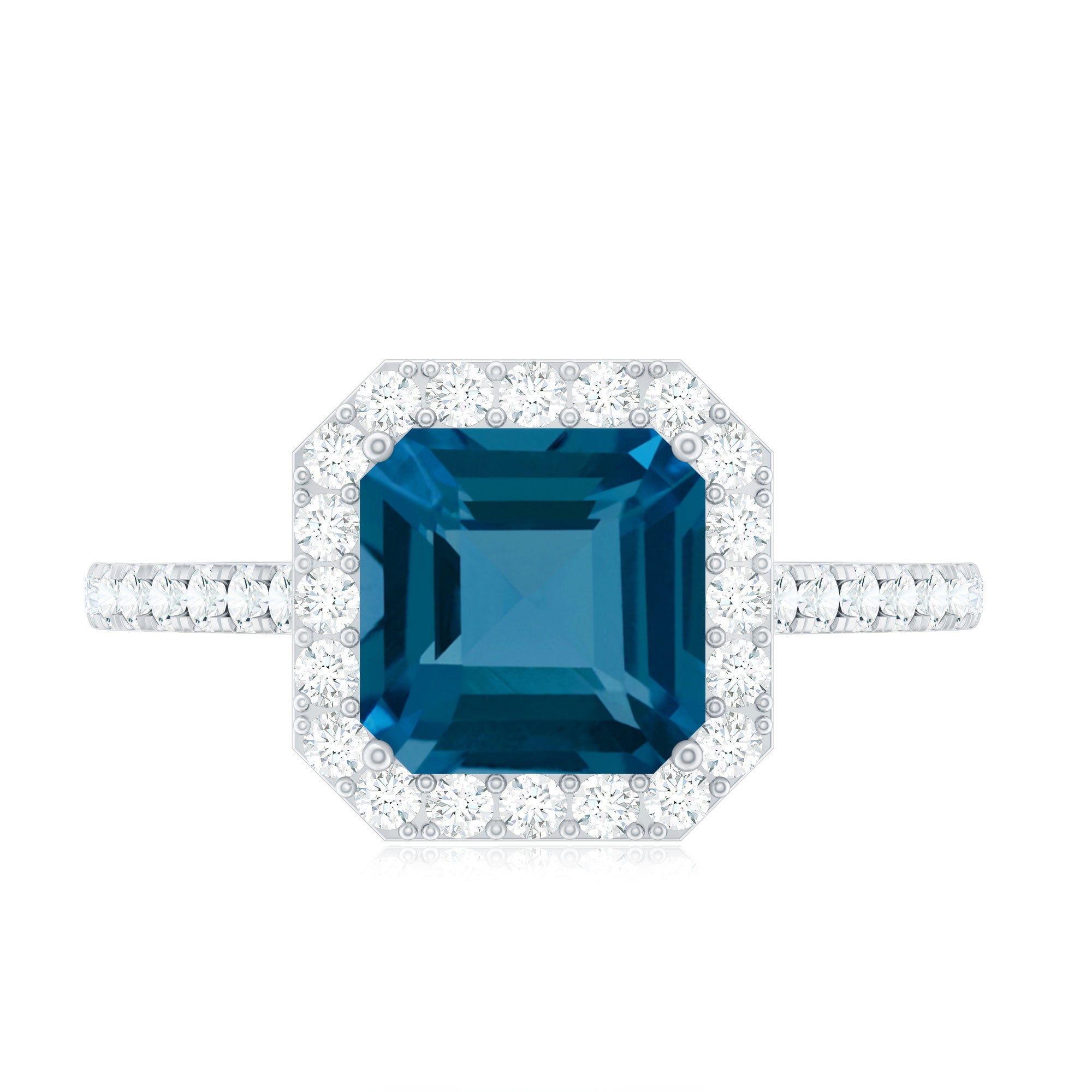 Real 8mm London Blue Topaz Asscher Cut Engagement Ring with Diamond