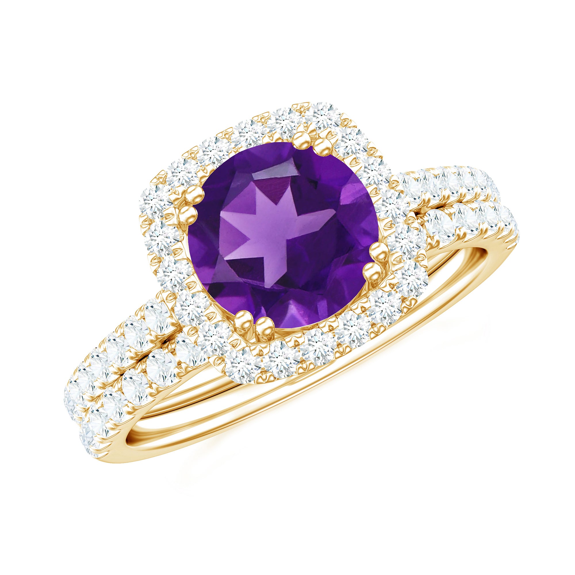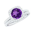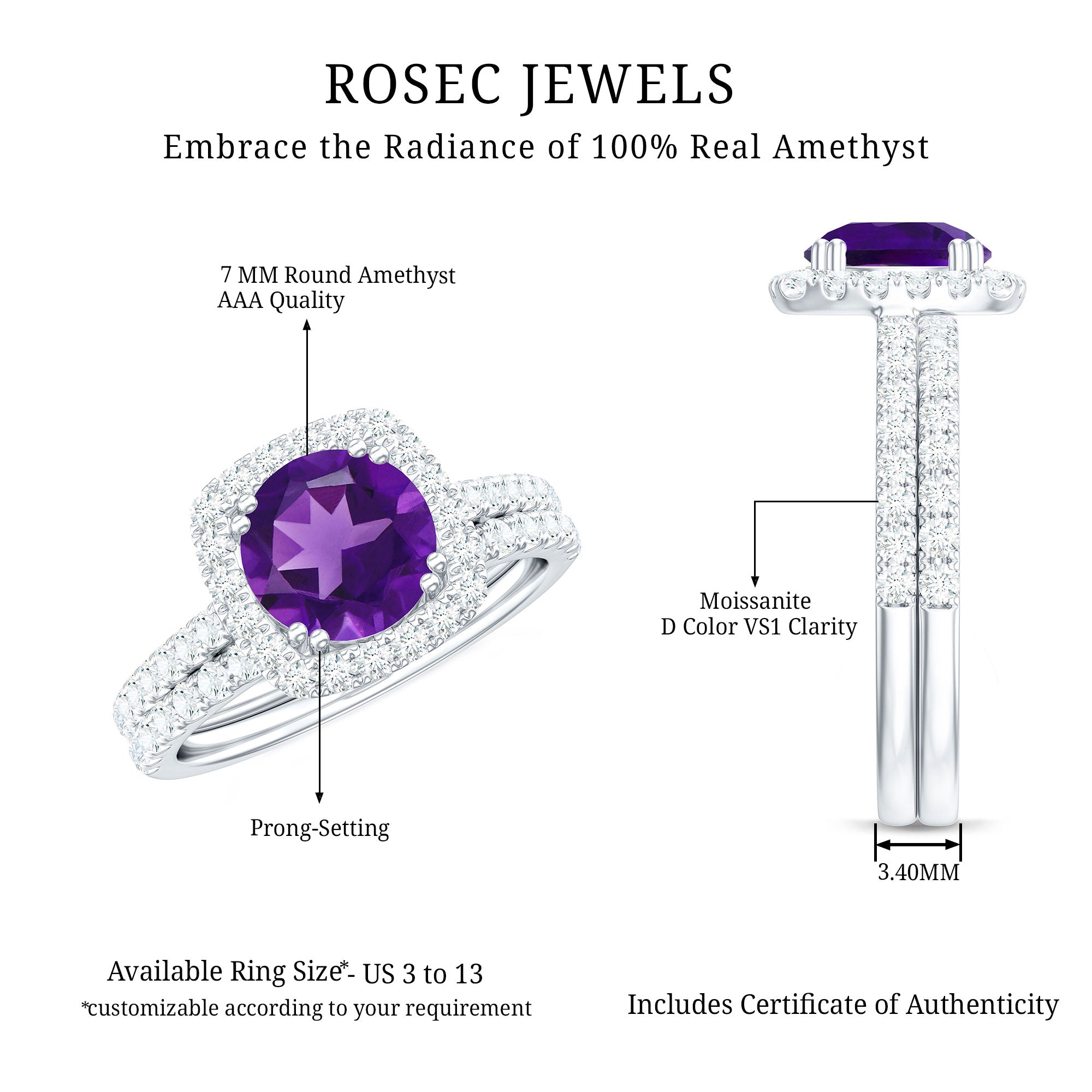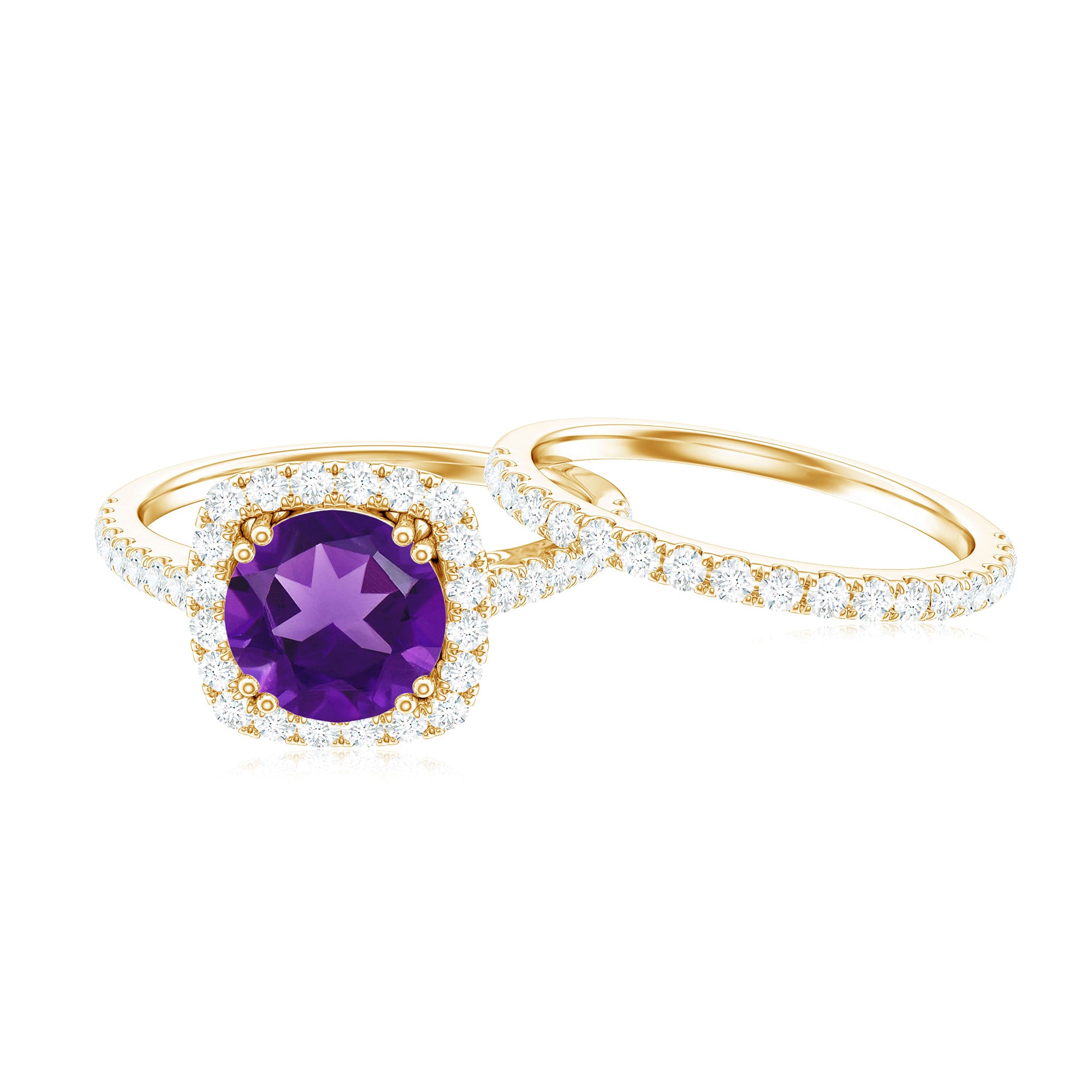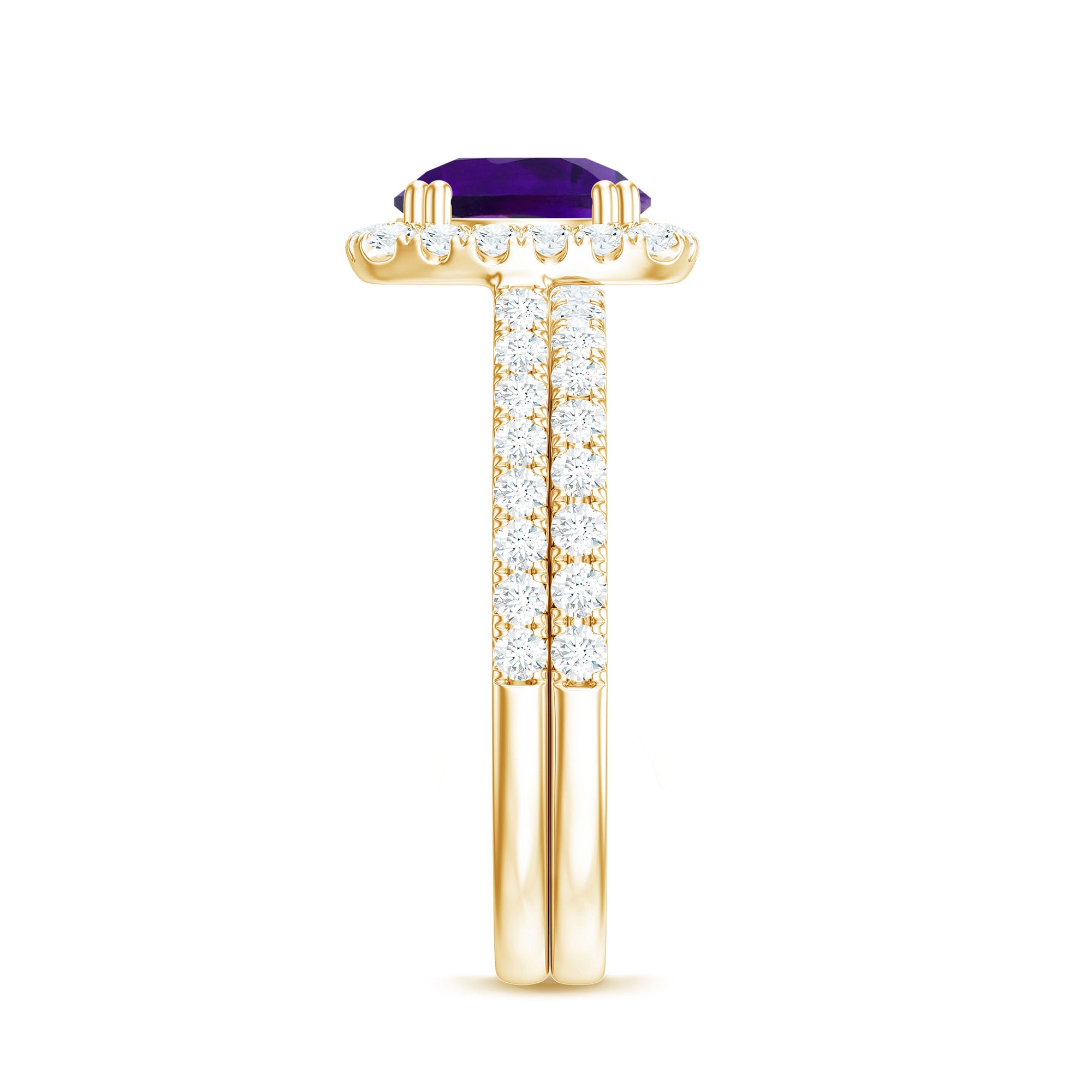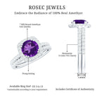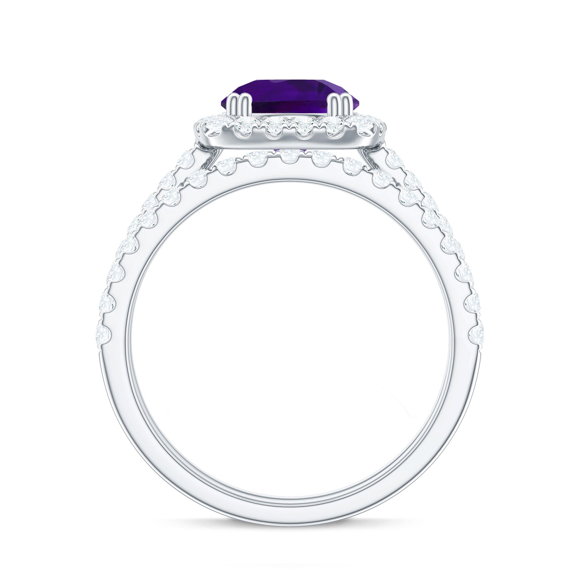 Real Amethyst and Moissanite Classic Halo Ring Set