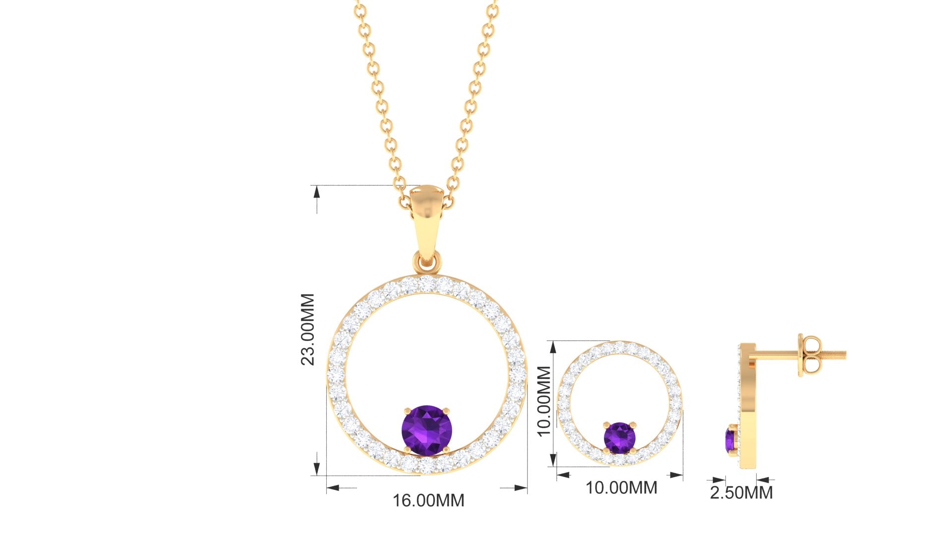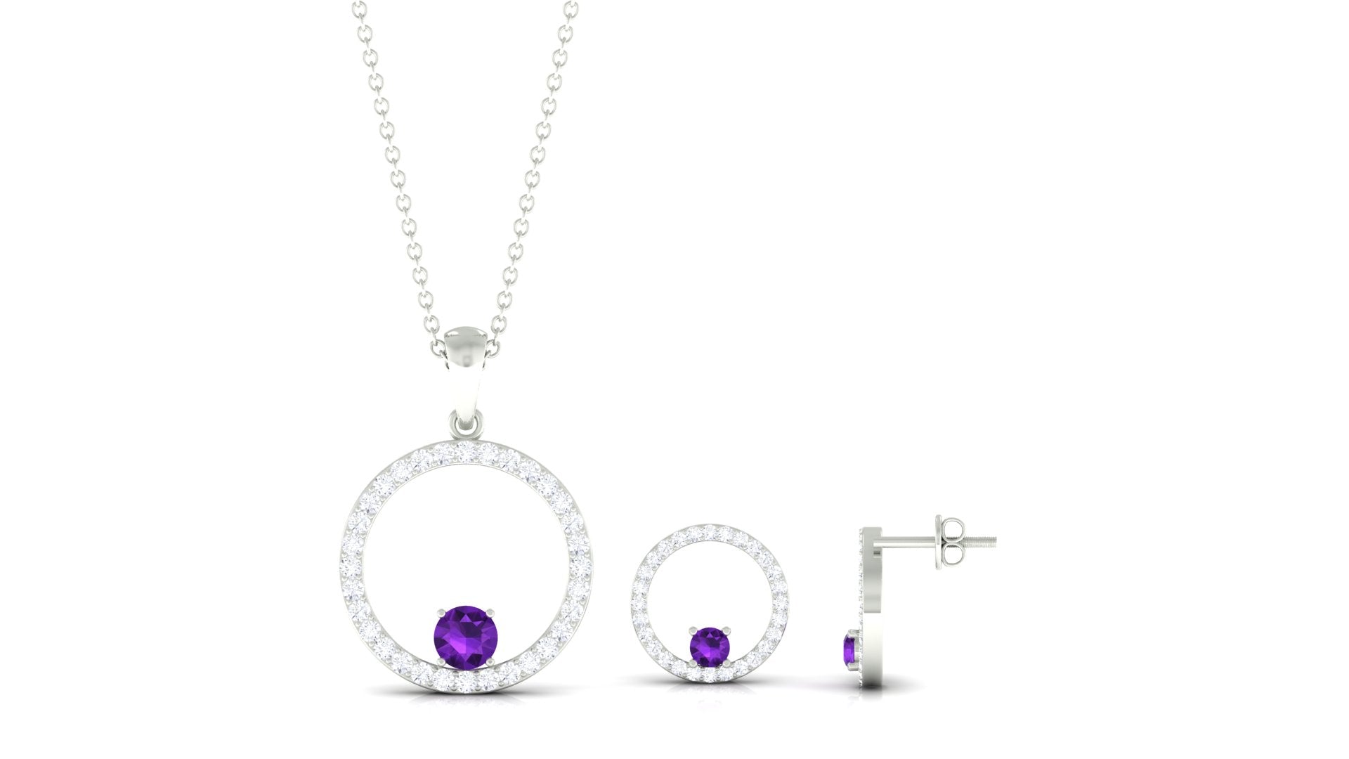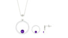 Real Amethyst and Moissanite Eternity Pendant Earrings Set