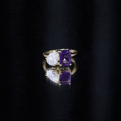 Real Amethyst and Moissanite Toi Et Moi Ring