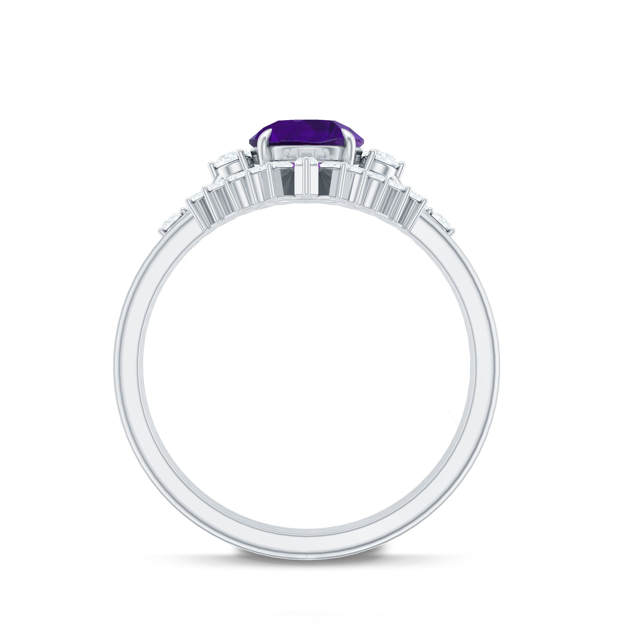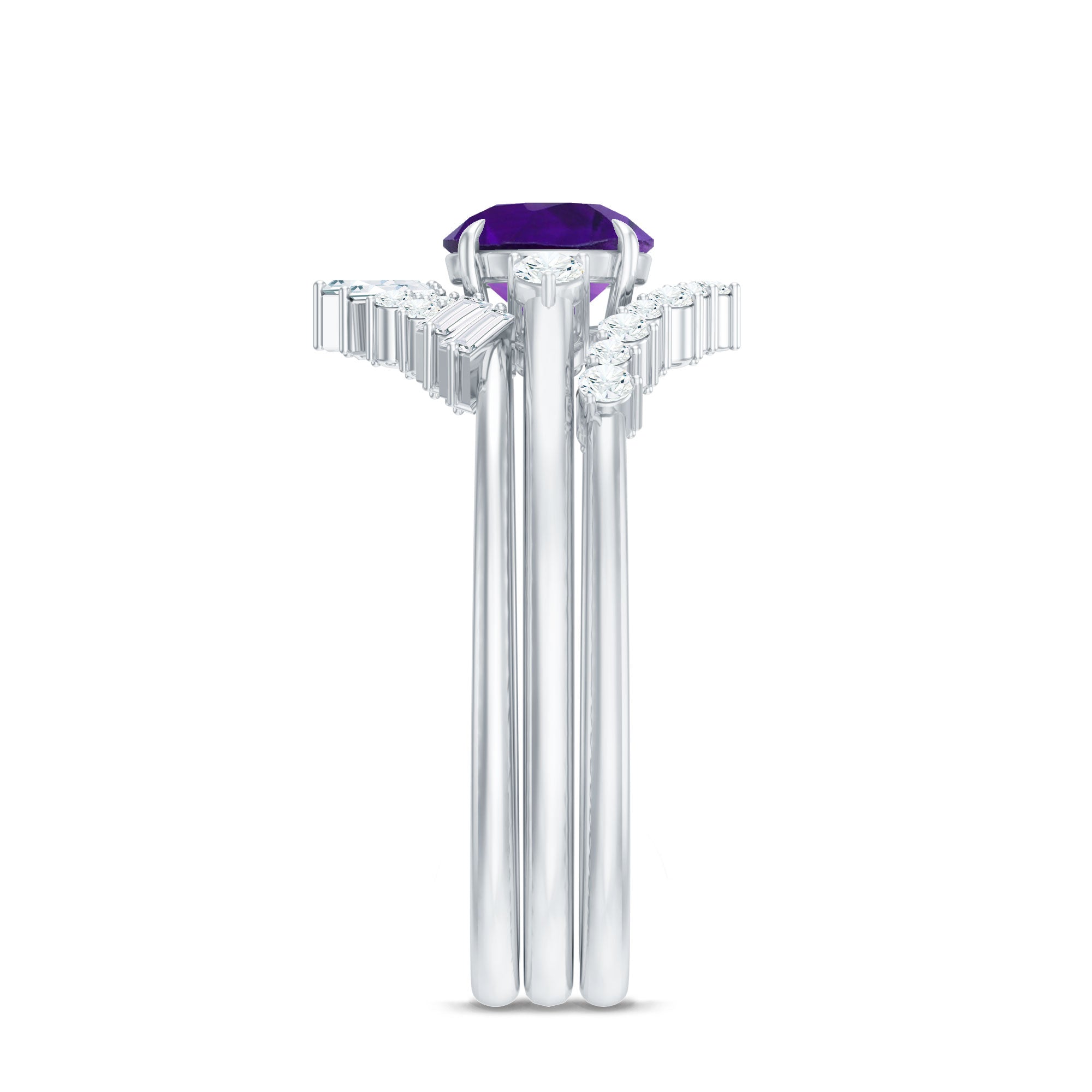 Real Amethyst Designer Trio Wedding Ring Set with Diamond