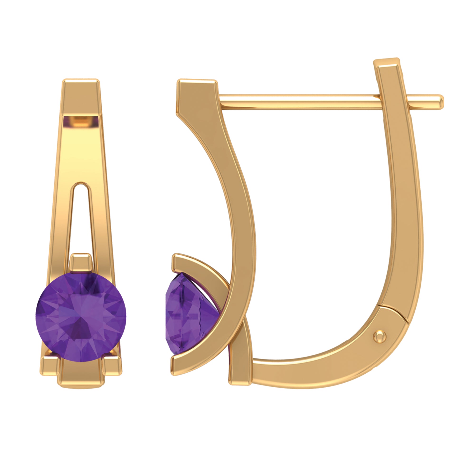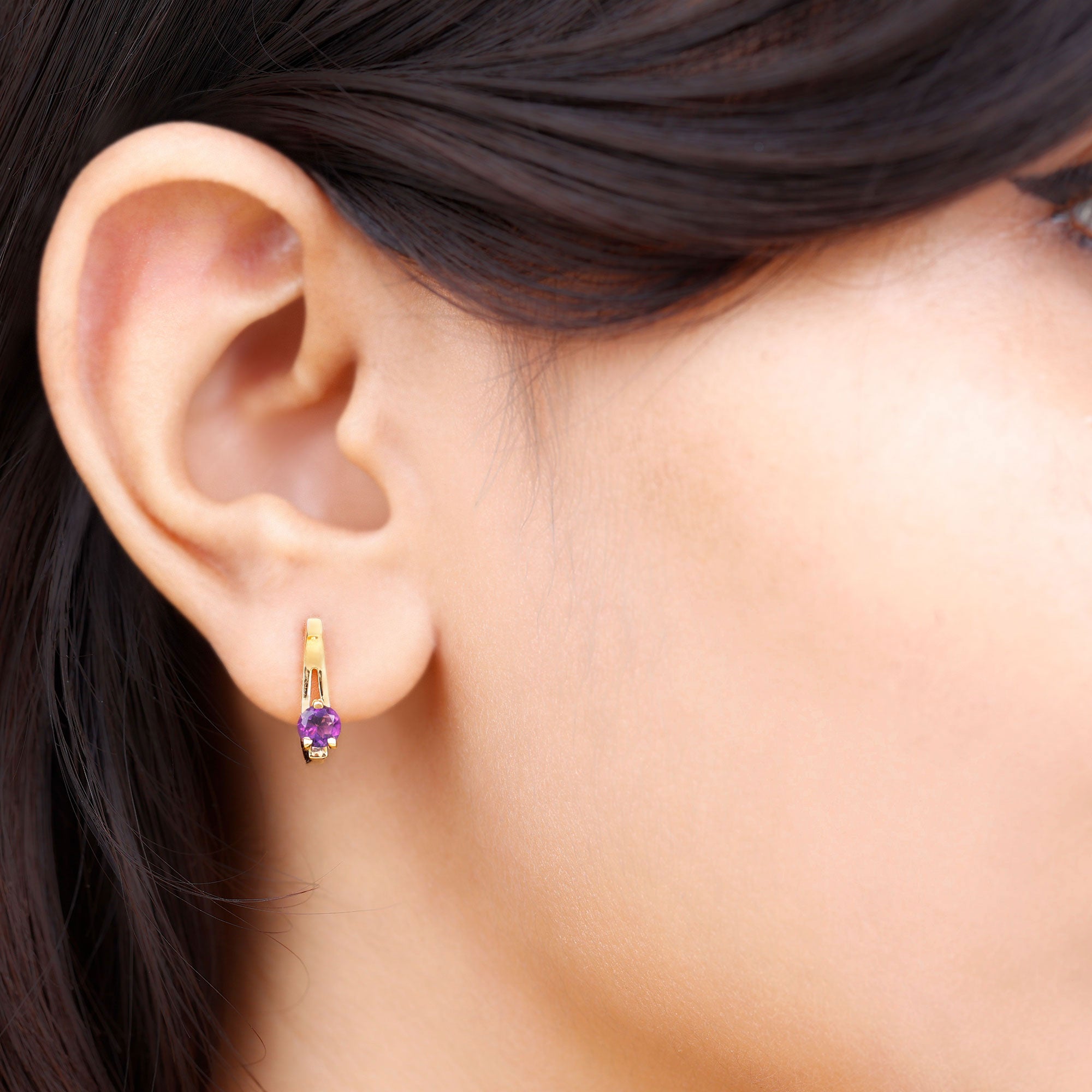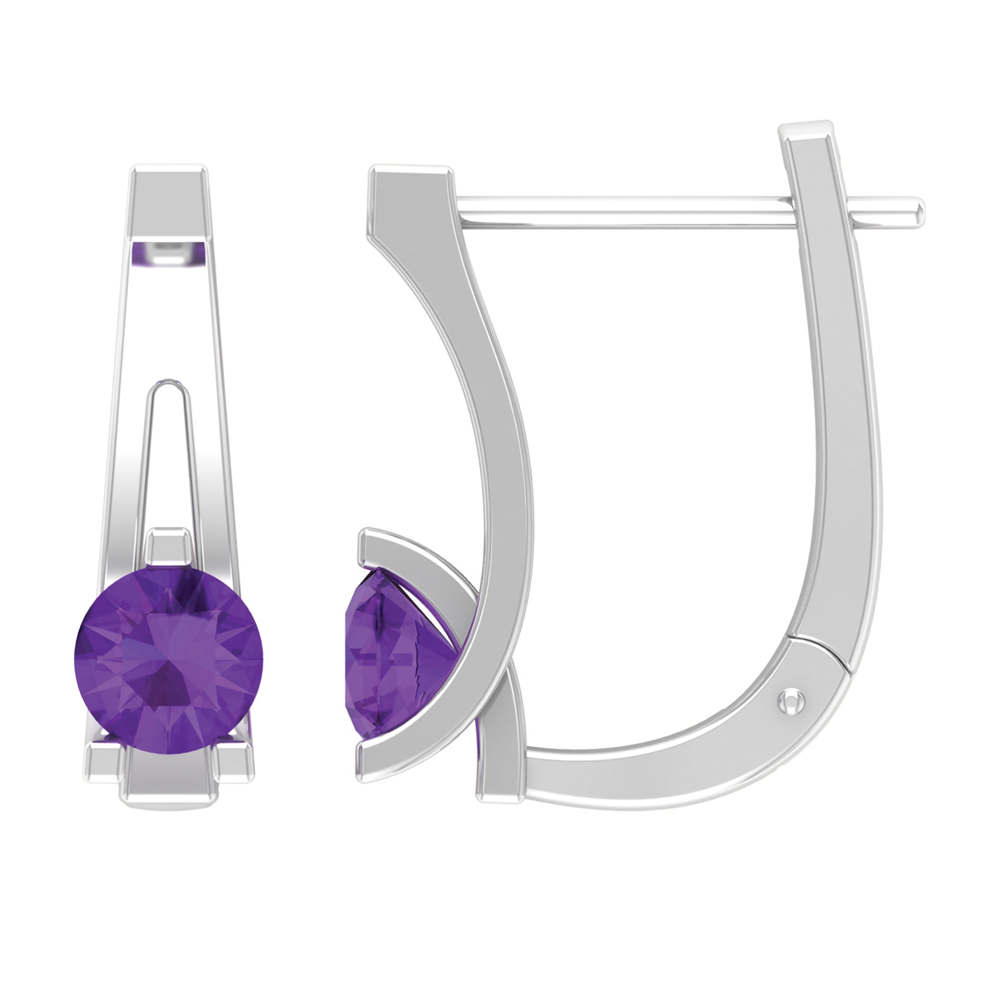 Our Amethyst Lever Back Earrings will be a lovely addition to your evening looks. A pair designed to be worn for a lifetime, adorned with scintillating Round Shape Amethyst secured by 3 Prong Setting. The Lever Back Closure will keep your Amethyst Earrings secured in their place. Get these mesmerizing Solitaire Earrings as an anniversary gift for her and get a precious smile on her face.