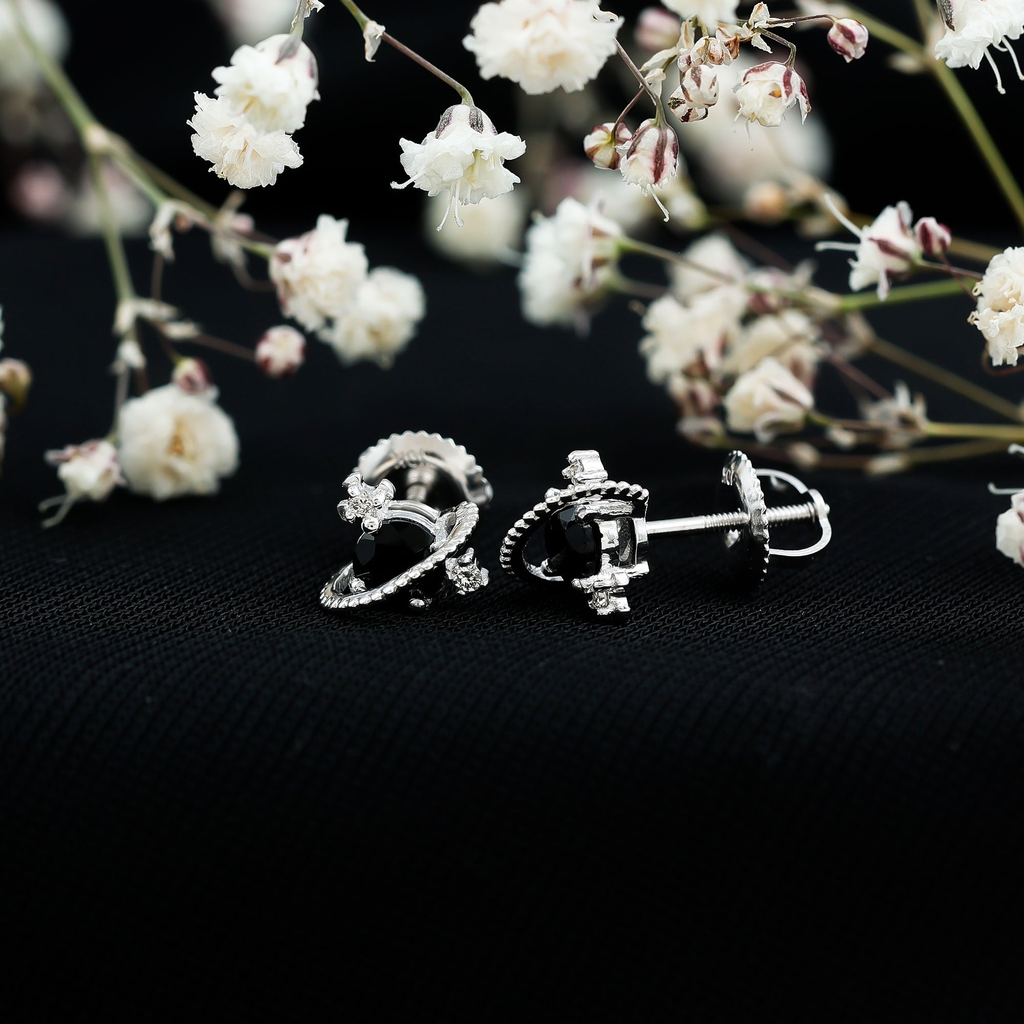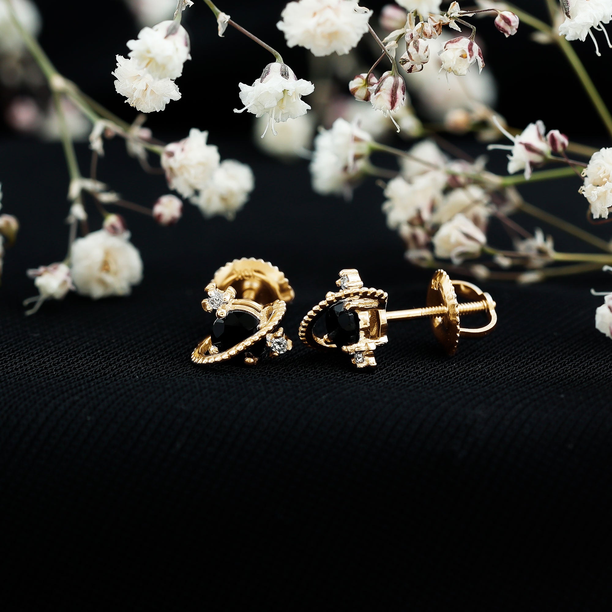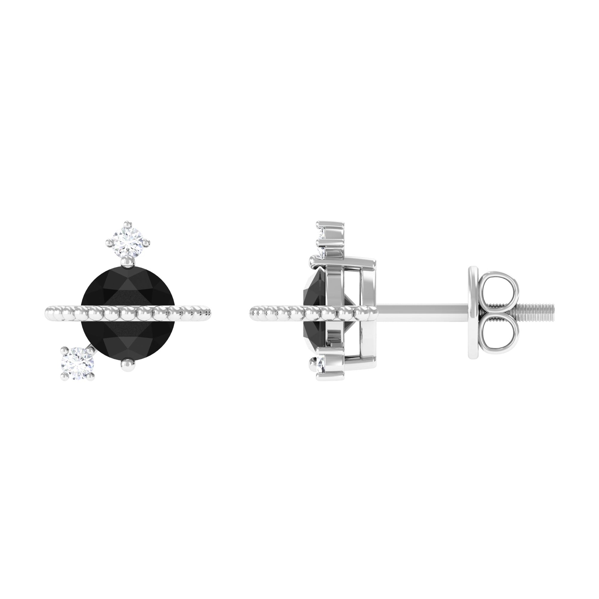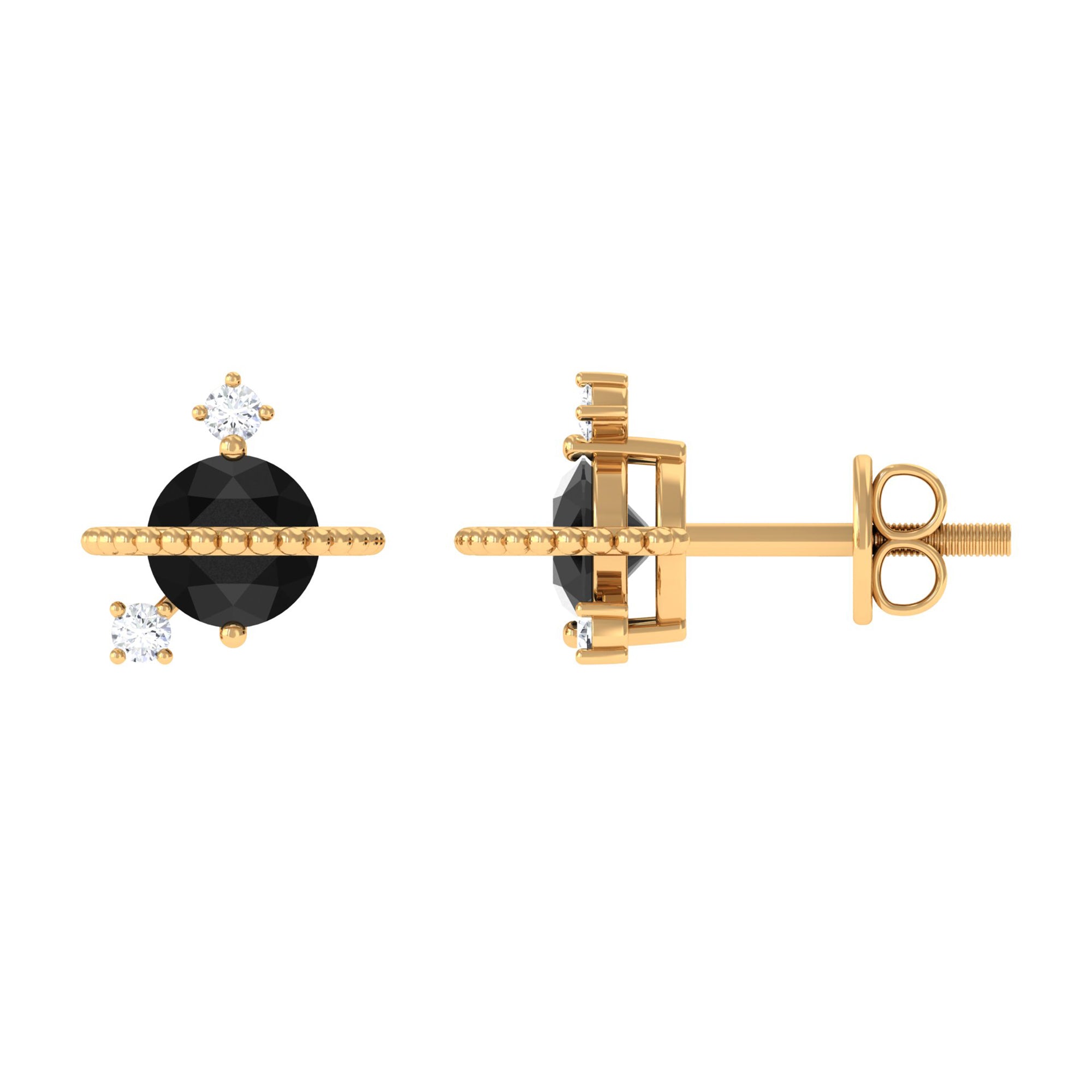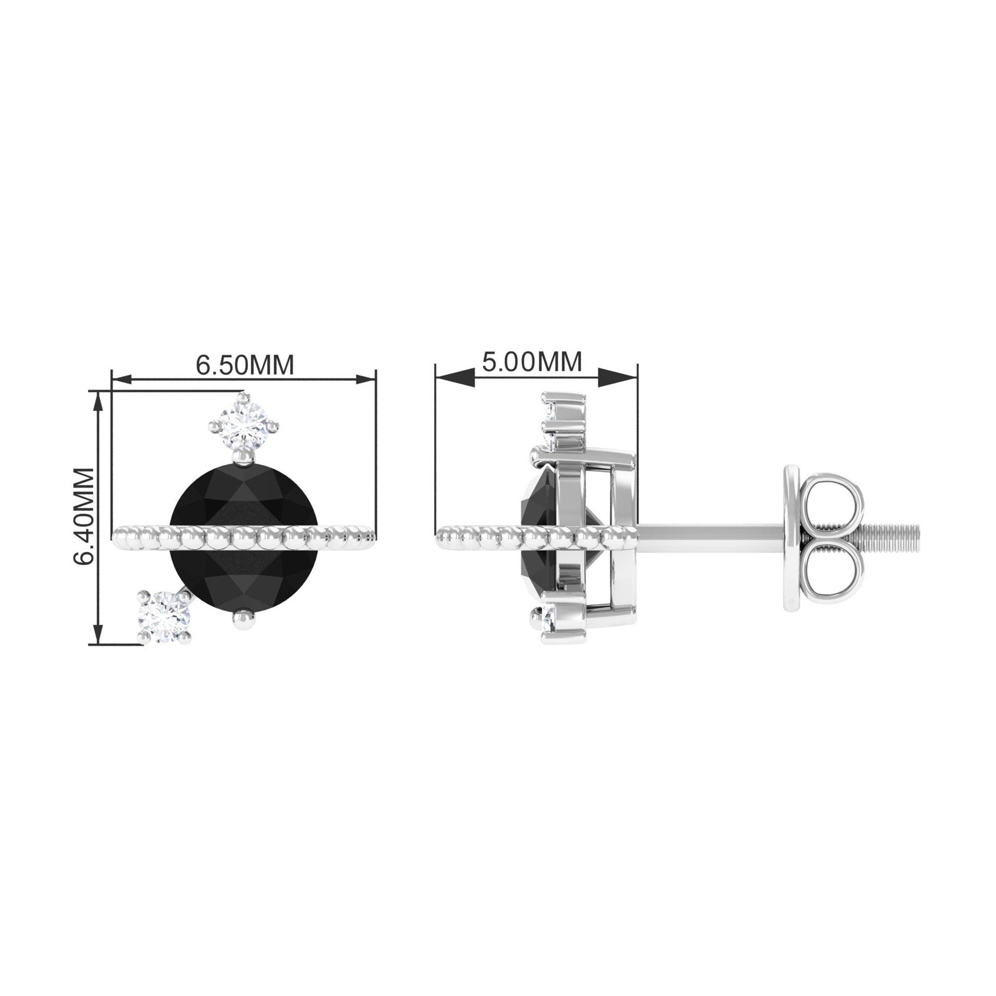 Style gets a cool upgrade with these Contemporary Stud Earrings that are made to stand out in a subtle but confident way. Curated for everyday wear with a modern twist, they are a great pick if you like keeping things minimal but still a bit different. The design features a 4 MM round shape black onyx, paired with two small diamonds that add just the right amount of sparkle. The Black Onyx Stud Earrings are decorated with fine beaded detailing, giving them extra texture and a slightly edgy feel that sets them apart from basic studs. They are compact and lightweight, making them super easy to wear all day, whether you are heading to work or stepping out for the evening. The overall look is simple but has enough detail to make people notice. Screw-back closures keep these Black Onyx and Diamond Earrings secure, so you can wear them confidently throughout your day. Available in multiple metal colors and types, you can choose what suits your personal style best. These Unique Stud Earrings come packed in a jewelry box, making them a nice option for gifting too. A great addition to your collection if you want something unique that still fits into your daily routine.