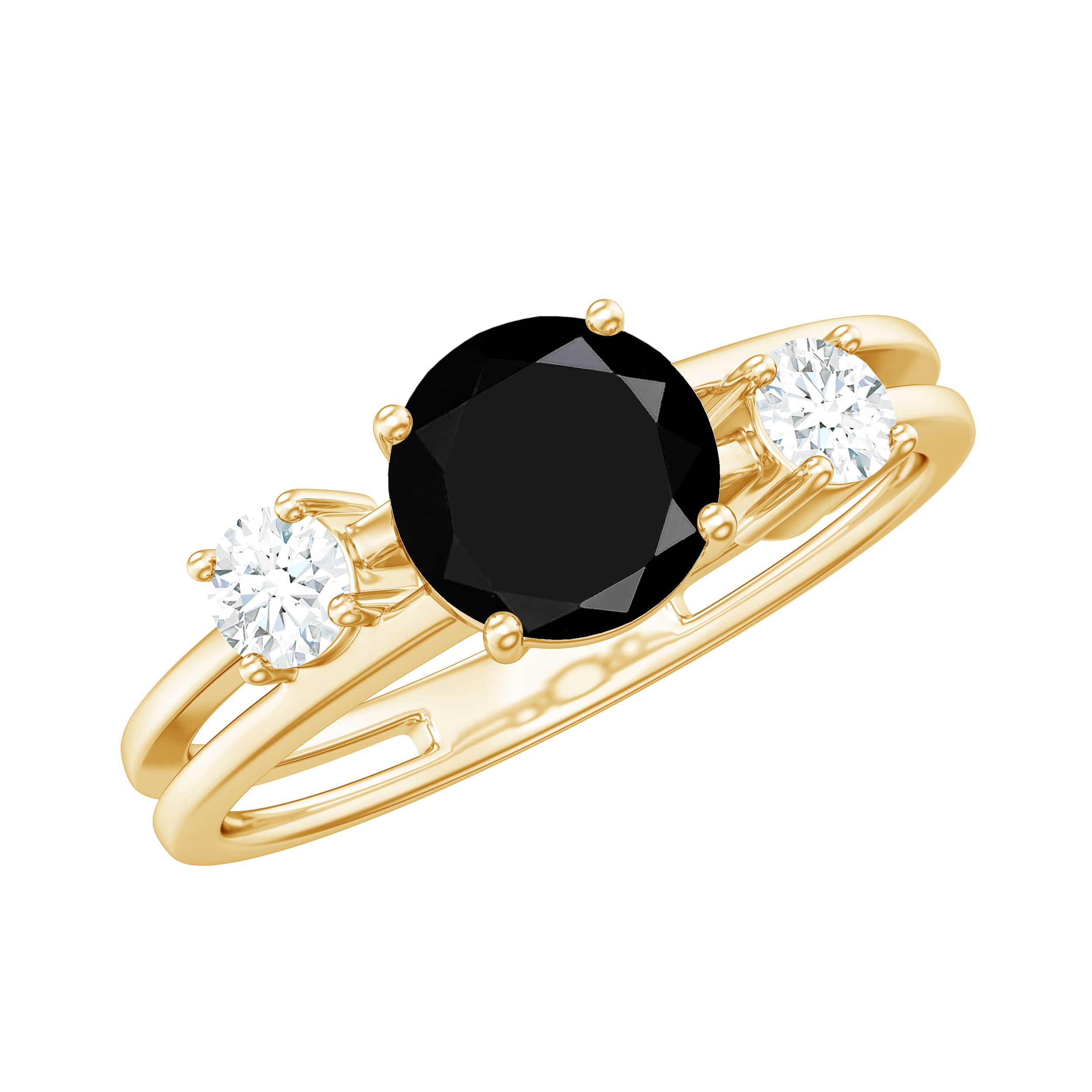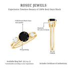 Sometimes, it is the smallest details that make a ring unforgettable. This elegant Black Onyx Engagement Ring blends bold beauty with classic design, making it a standout piece for any special moment. At the center is a stunning 8 MM round cut black onyx (AAA quality). On either side, 3 MM round diamonds add a soft sparkle, offering the perfect contrast to the dark center stone. What makes this Onyx and Diamond Engagement Ring truly special is the double band illusion, a smart design that appears as two rings but feels as comfortable as wearing one. The double band design adds a modern edge while keeping the overall look timeless and sophisticated. Each gemstone is carefully placed in secure prong setting. Whether you are looking for something classic with a twist or a unique way to mark an engagement, this design delivers both elegance and individuality. The combination of shimmering diamonds and bold black onyx makes it ideal for someone who loves meaningful and stylish jewelry. It comes packaged in a beautiful box with a certificate of authenticity, ready to be shared as a token of your heartfelt promise. Timeless, graceful, and full of charm, this Double Band Engagement Ring is designed to be treasured forever.