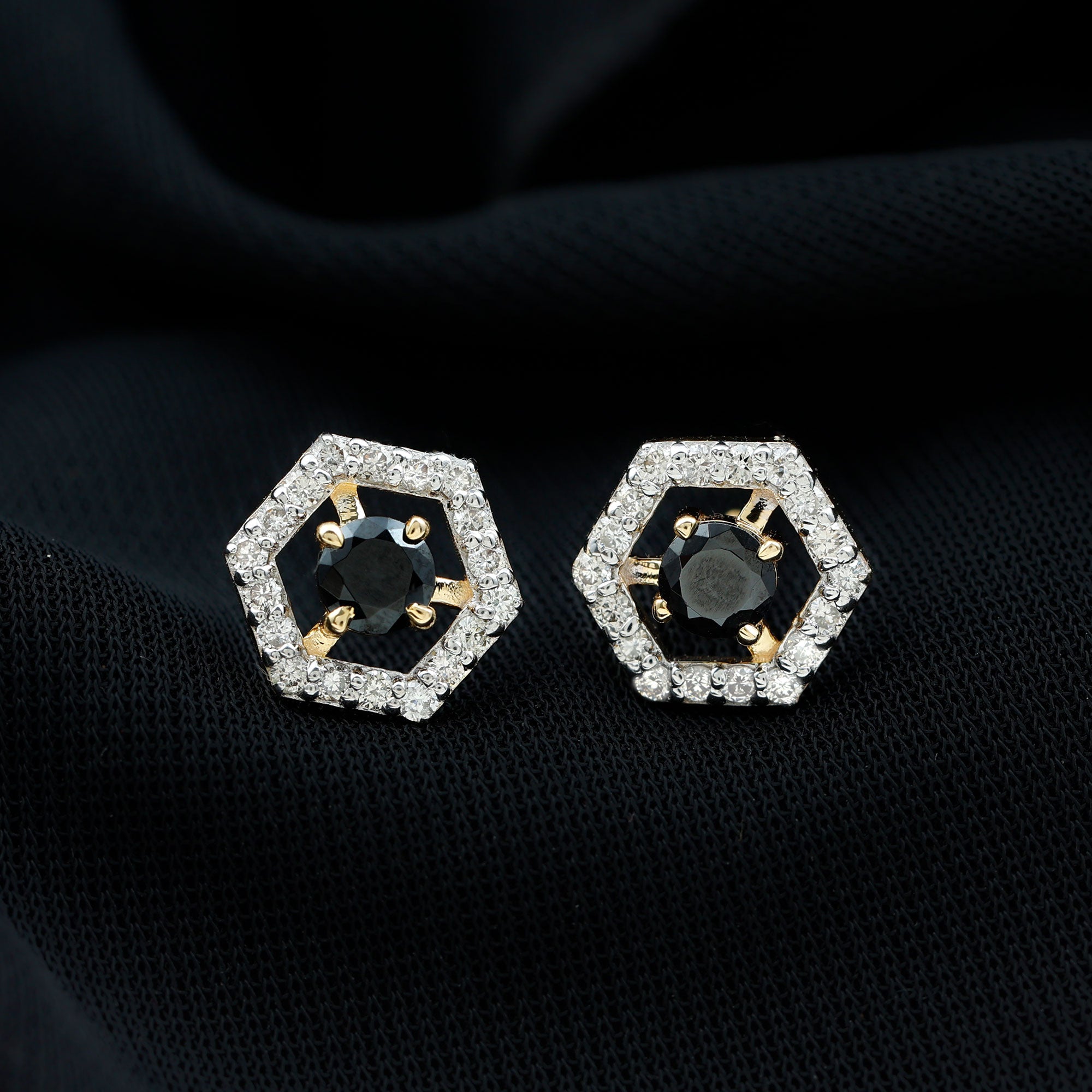 Timeless yet trendy, these Black Onyx Earrings are the perfect statement pieces for anyone who loves sleek, modern style with a hint of sparkle. The 4 mm Round Shape Black Onyx is set in Claw Setting in a unique hexagonal frame, creating a geometric shape that adds sophistication to any look. The Frame is adorned with dainty Diamond stones that bring a touch of elegance and shine, catching the light with every turn. The combination of the deep AAA Quality Black Onyx and the sparkling HI-SI Diamond stones creates a striking contrast, making these Geometric Earrings the perfect accessory for both day and night. The secure Screw Back Closure ensures that they stay comfortably in place, so you can wear them confidently. Whether you are dressing up for a night out or adding a refined touch to your everyday wardrobe, these Black Onyx Diamond Earrings are versatile enough to complement any outfit. Presented in a chic jewelry box, these Black and White Earrings are ready to gift, whether for a birthday, anniversary or just because someone deserves something special. Effortlessly stylish, these Black Onyx Stud Earrings are a must-have addition to any jewelry collection.