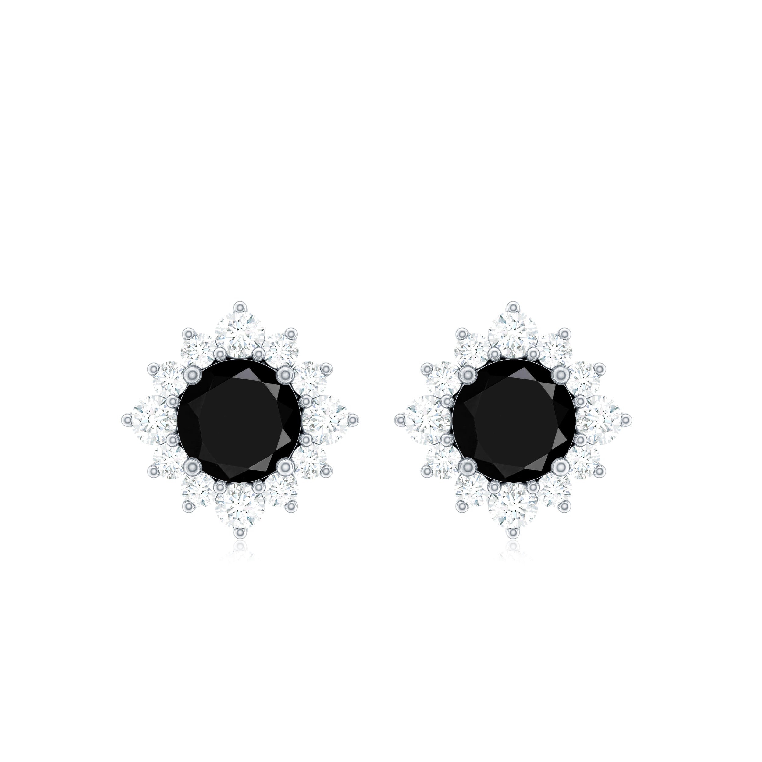 Mesmerize everyone with the timeless beauty of these Black Onyx Earrings, surrounded by a dazzling Diamond Halo that adds just the right touch of sparkle. Each earring features a striking 4 mm Round Shape Black Onyx gemstone set in Prong Setting, made to perfection, radiating sophistication and confidence with every glance. The contrast between the deep AAA Quality Black Onyx center stones and the brilliant HI-SI Diamond stones creates a stunning balance of elegance and allure. Crafted with care and secured by Screw Back Closure, these Black Onyx Diamond Earrings offer both comfort and peace of mind, making them perfect for everyday wear or special occasions. Whether you are dressing up for a romantic evening or adding a touch of glam to your workday outfit, these Halo Stud Earrings will effortlessly elevate your look. Presented in a signature jewelry box, these Black Onyx Stud Earrings arrive ready to gift, ideal for birthdays, anniversaries or simply to surprise someone you love. Classic and endlessly versatile, these Black and White Earrings are a beautiful reminder that true elegance never goes out of style.