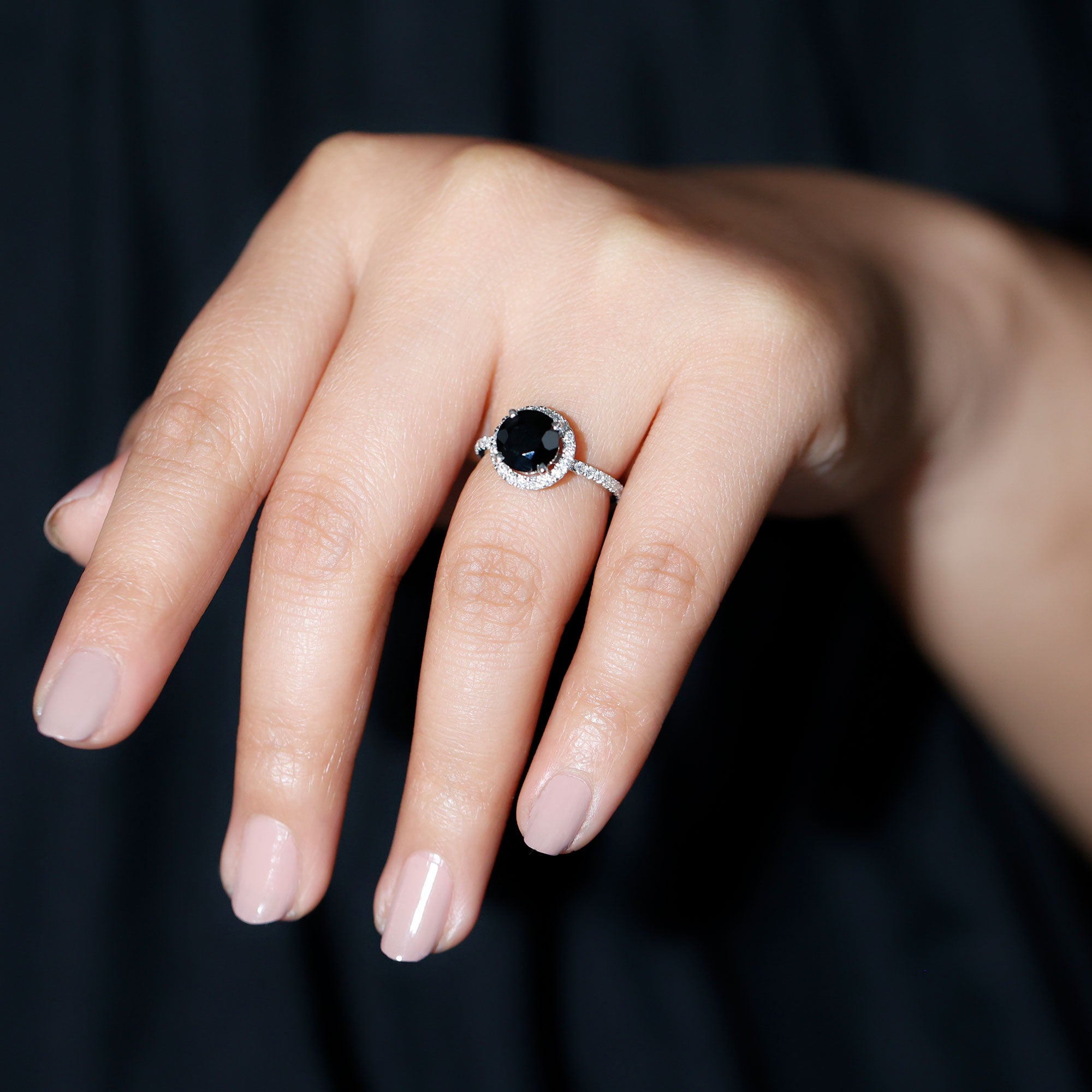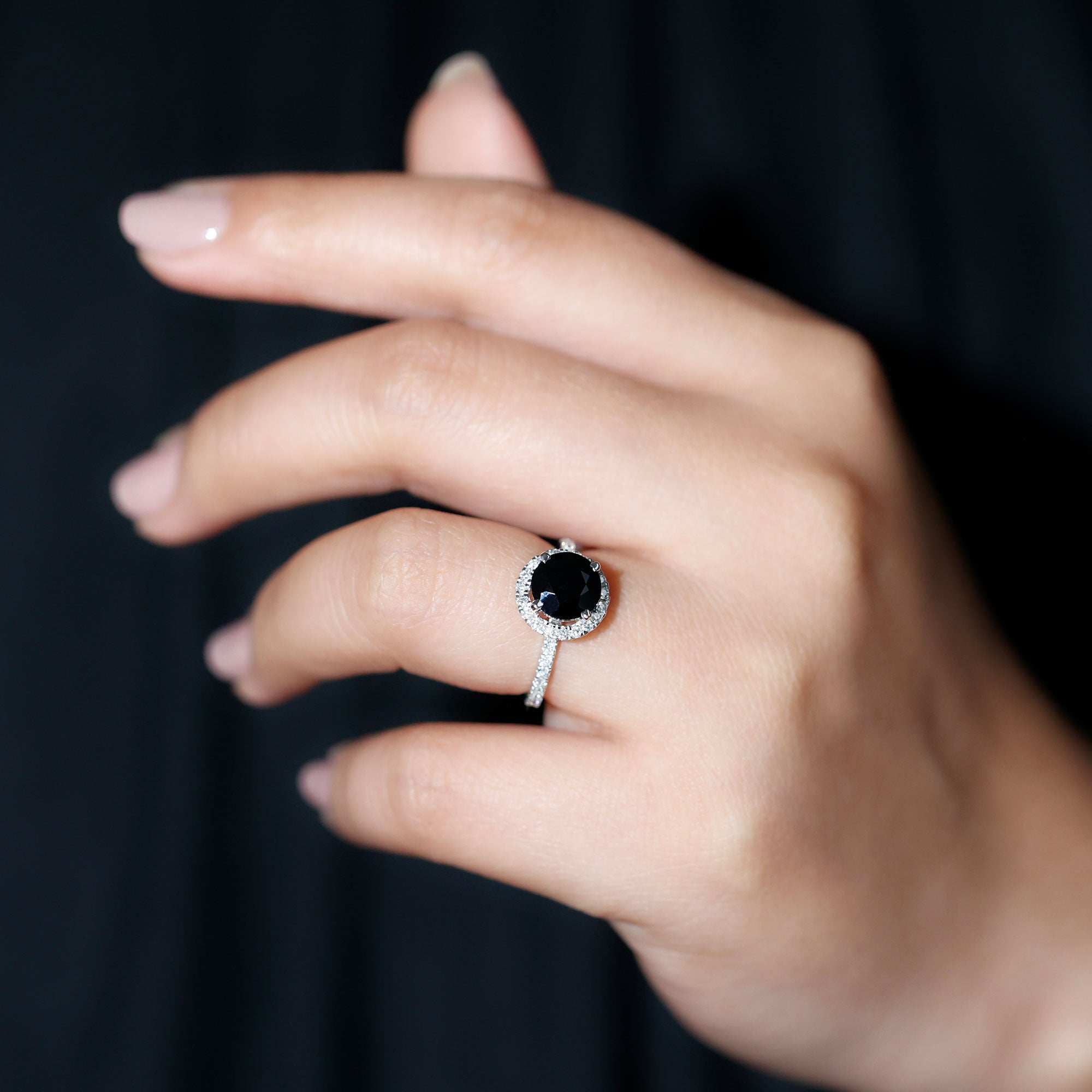 Real Black Spinel Classic Halo Engagement Ring with Diamond