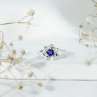 Real Blue Sapphire and Diamond Flower Ring with Bypass Shank