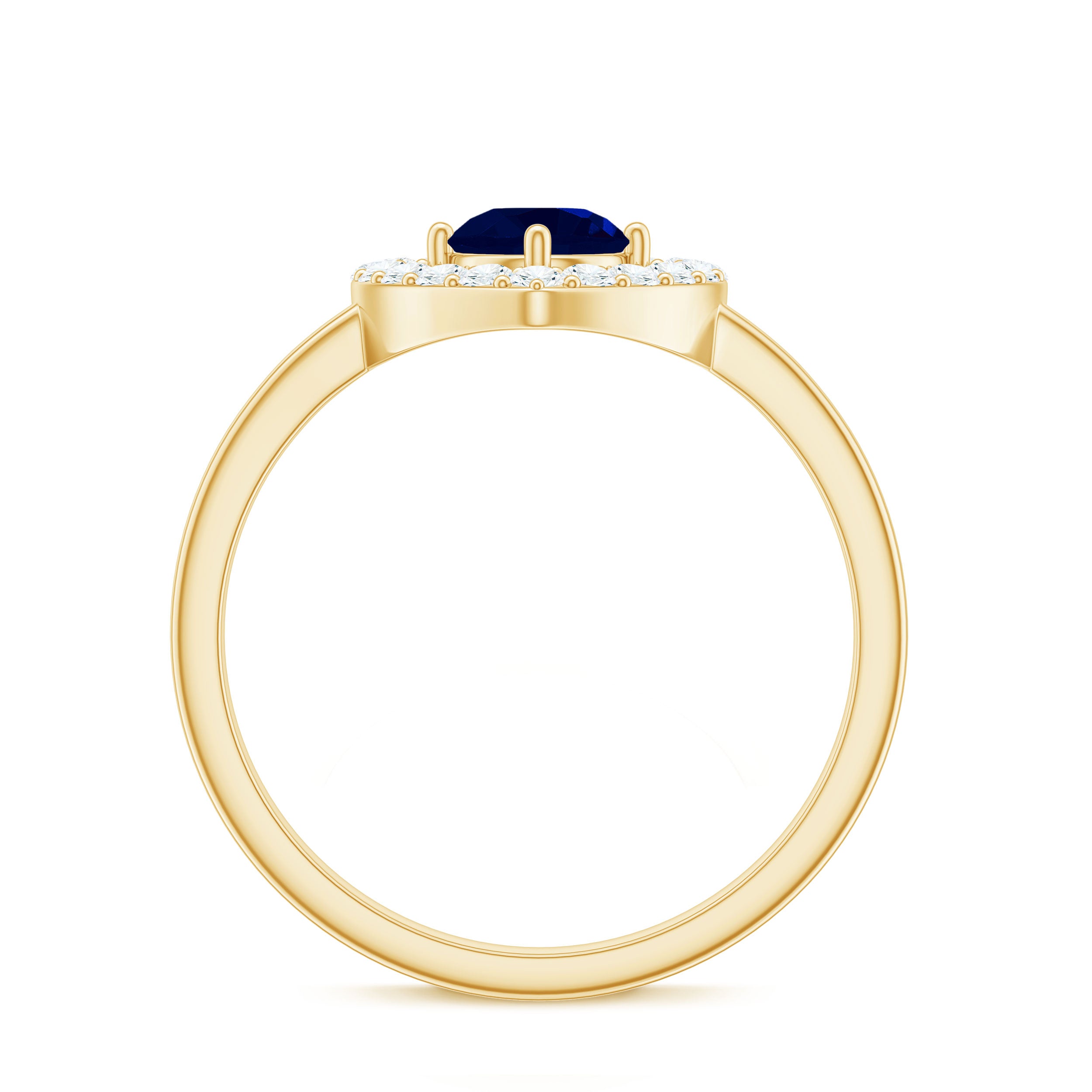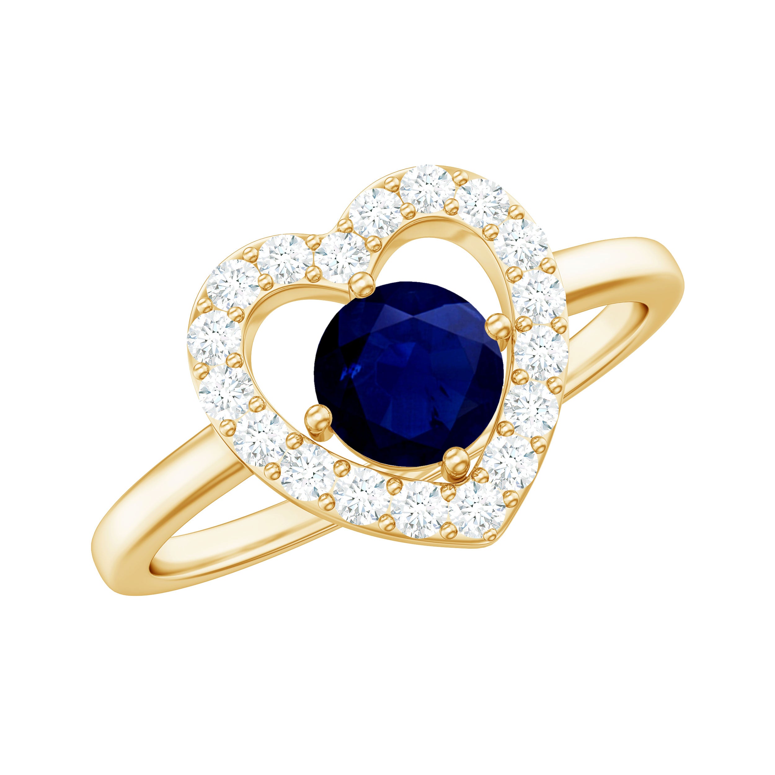 Complete your favorite looks with this charming Blue Sapphire Ring, designed to add a touch of elegance. The ring features a brilliant Round Shape Blue Sapphire, delicately placed in a 4 Prong Diagonal Setting, and is surrounded by sparkling Diamond stones, forming a captivating heart shape. Embrace the beauty and sentiment of this adorable ring, symbolizing the love and affection you share with your partner.