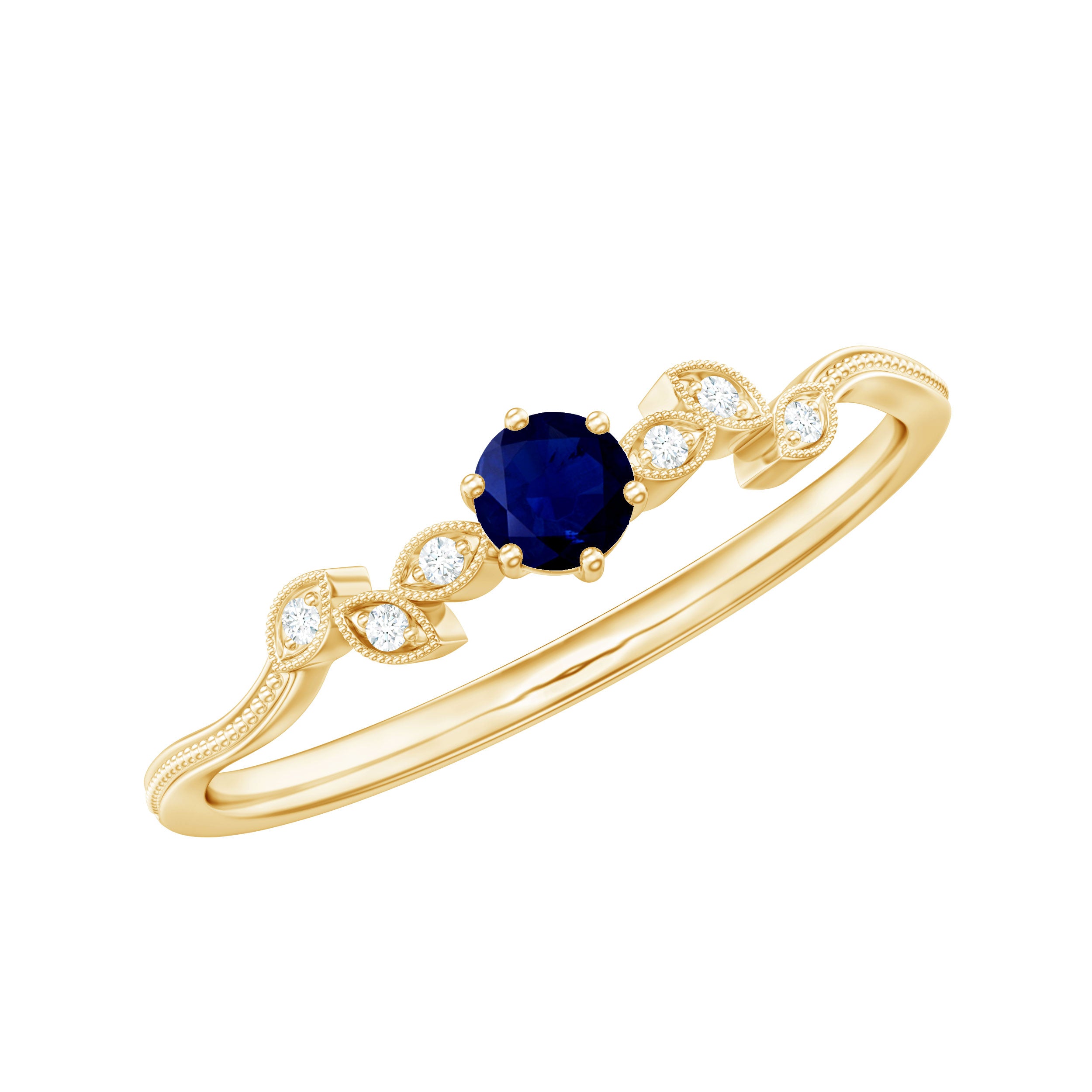 Experience the sheer beauty of this Leaf Inspired Ring with its captivating nature-inspired design. A brilliant Diamond accent is delicately set within a marquise frame adorned with beaded details. Adding extra brilliance to the piece, a round blue sapphire gemstone graces the center, making this ring a truly enchanting choice.