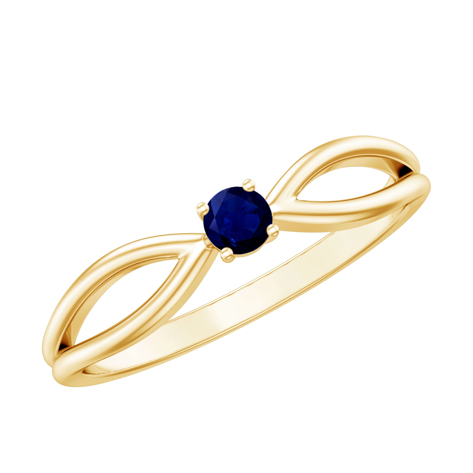 Discover the allure of this mesmerizing Designer Promise Ring, expertly crafted in various metal options. Its captivating beauty is highlighted by a Round Cut Blue Sapphire, delicately set in a prong setting, while the elegant split shank adds a touch of sophistication to this exquisite piece.