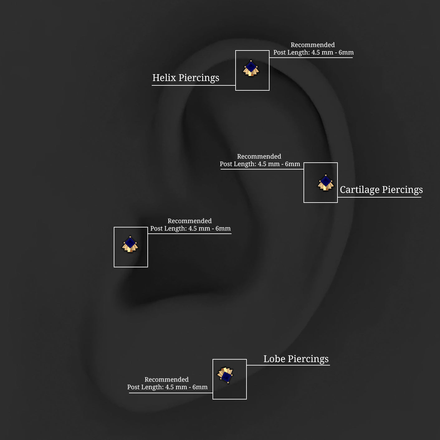 Let this unique Black Sapphire Solitaire Earring be your muse! Showcasing Princess Cut Blue Sapphire secured by 4 Prong Setting on a unique design. The Piercing Earring is fashioned in Hallmarked Metal and will shine bright and bring the spotlight right on you. Wear this Flat Back Earring on your Cartilage, Conch, Helix, or Upper Lobe Piercings and create not-so-ordinary looks. Give the mesmerizing Blue Sapphire Earring to someone close to your heart as it makes a precious gift for her.