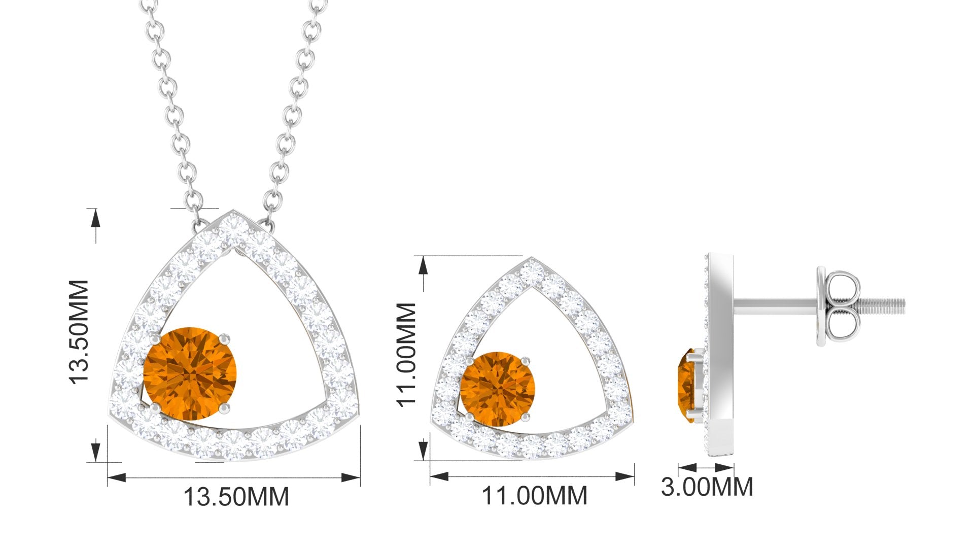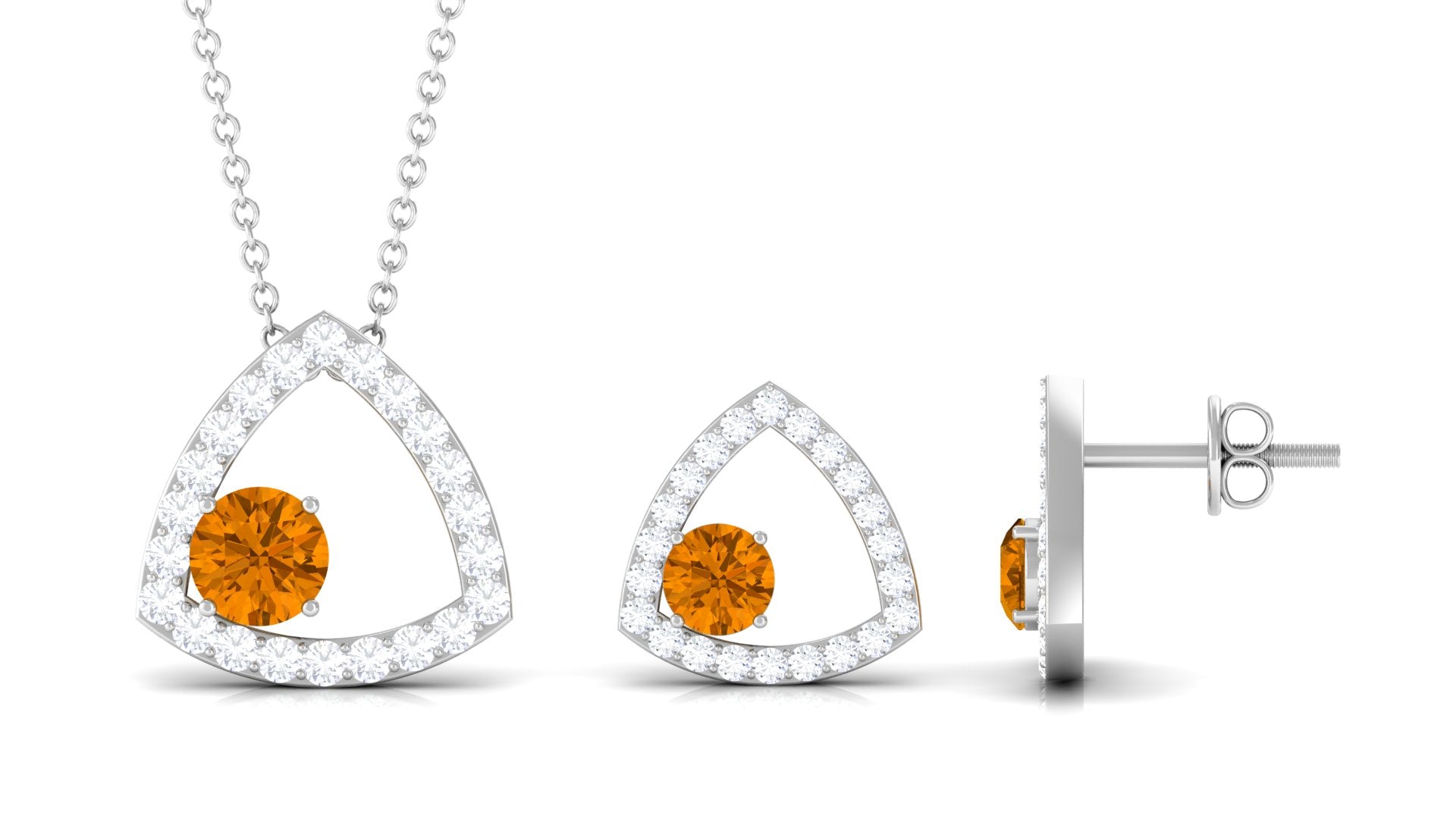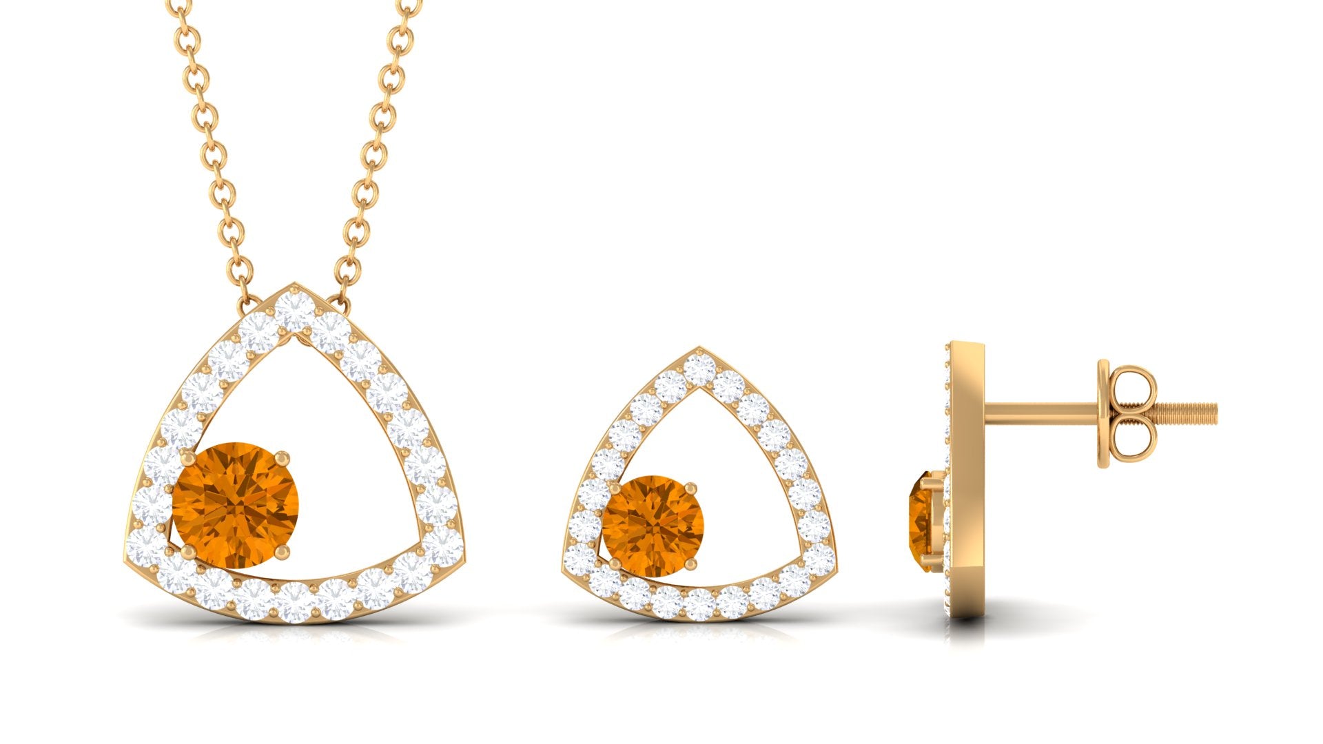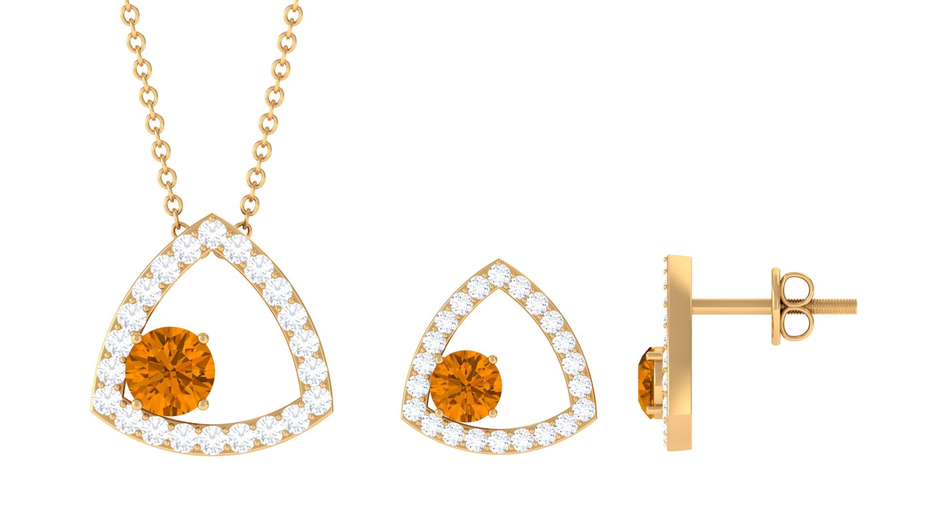 Real Citrine and Moissanite Open Triangle Jewelry Set
