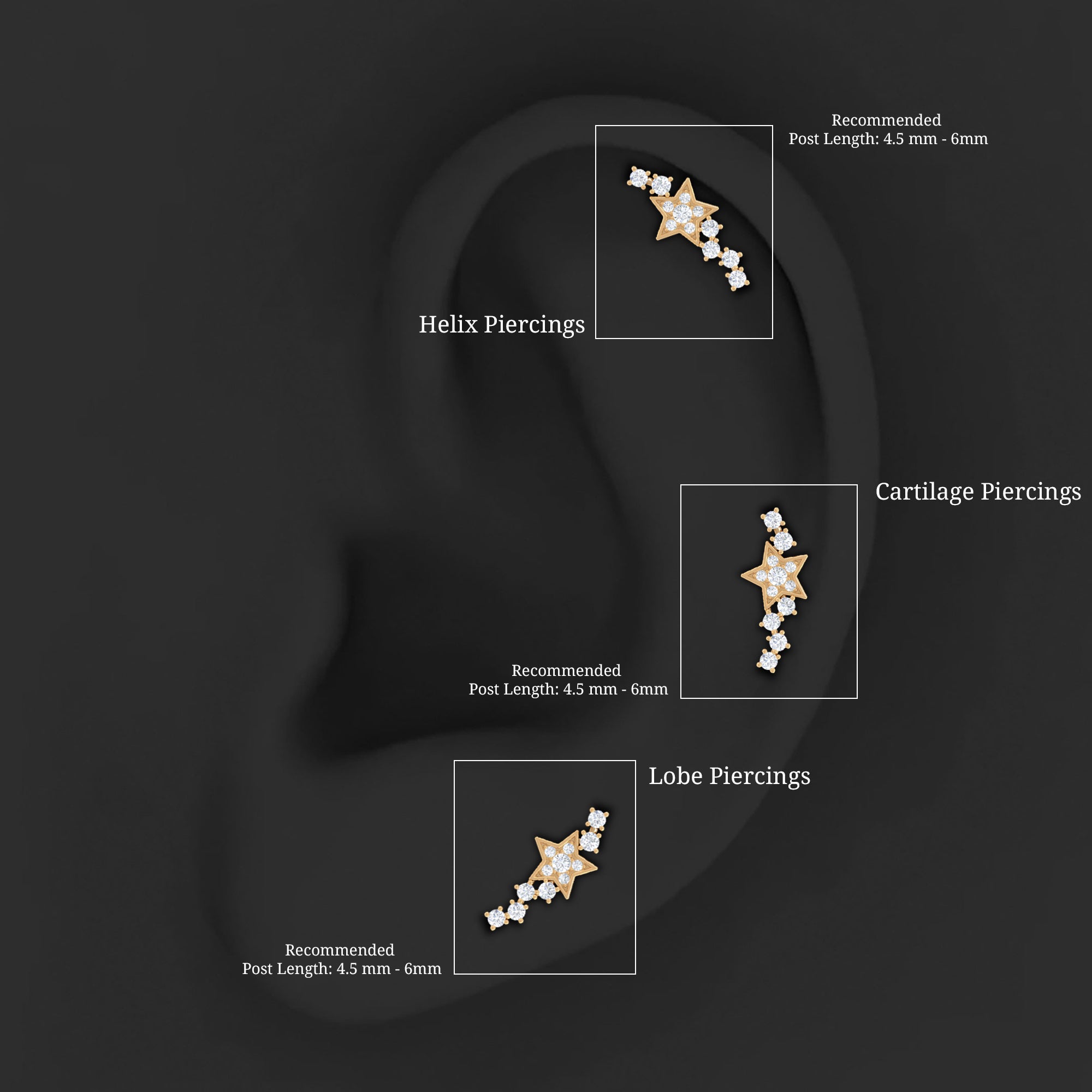 Certified Diamond Star Crawler Earring for Helix Piercing