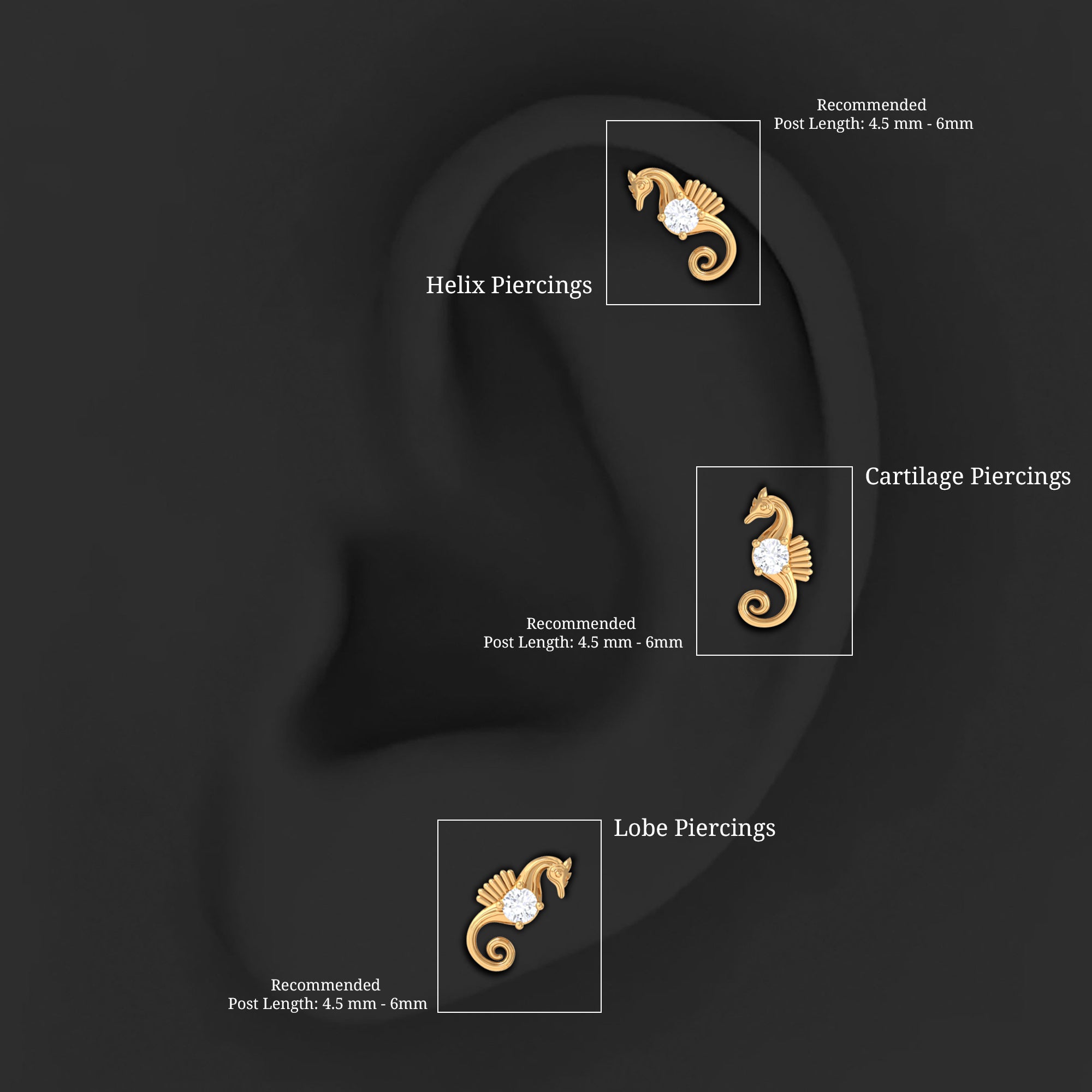Real Diamond Cute Sea Horse Earring for Helix Piercing