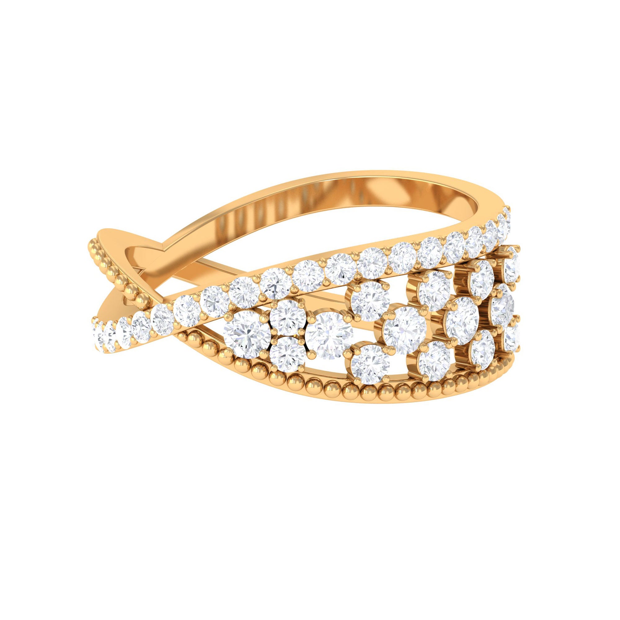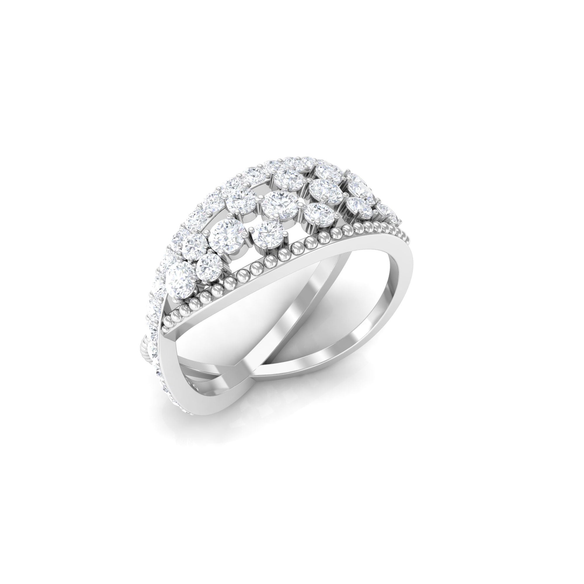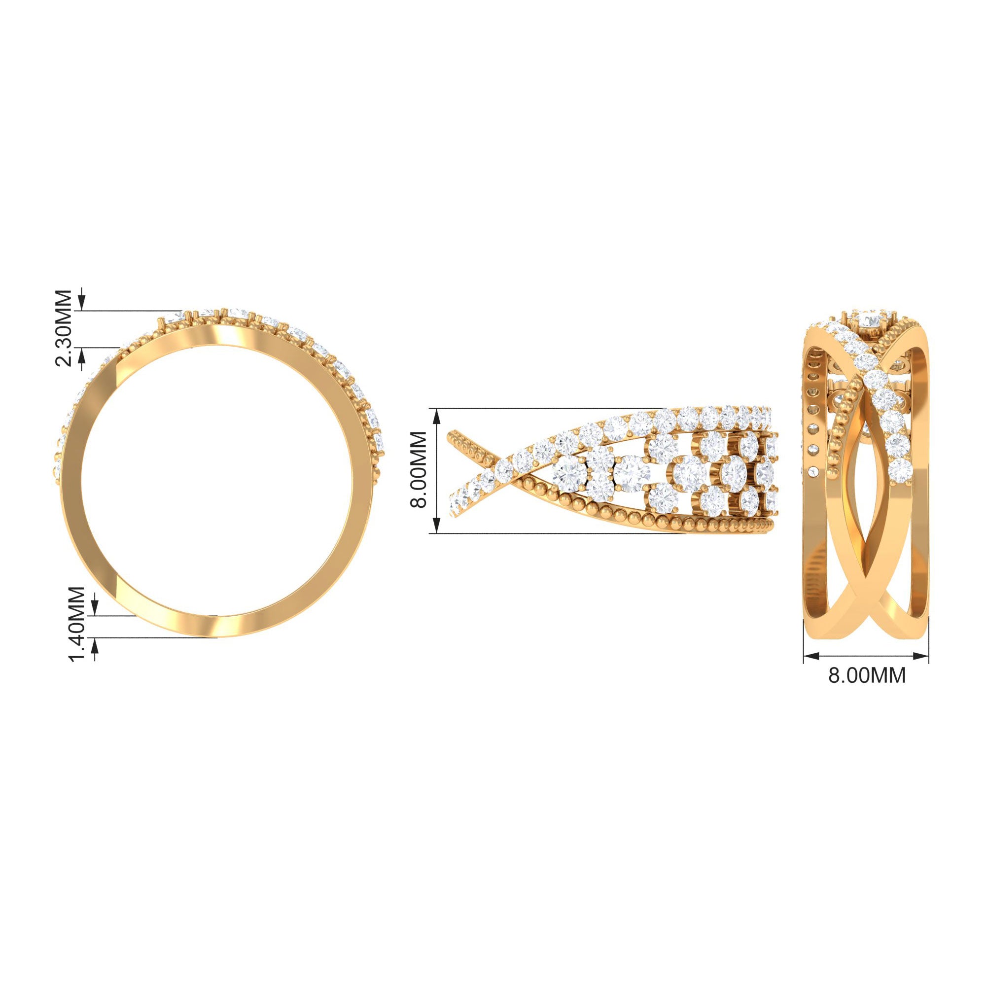 Elevate your wedding band game with this Designer Criss Cross Wedding Band. Crafted with precision and sophistication, this unique ring features a captivating crisscross design adorned with genuine round-cut diamonds. The beaded detailing adds a touch of elegance and texture to the band, making it a stunning choice for symbolizing your eternal commitment on your special day. Embrace the brilliance of real diamonds and the artistry of the crisscross pattern with this exceptional wedding band.