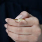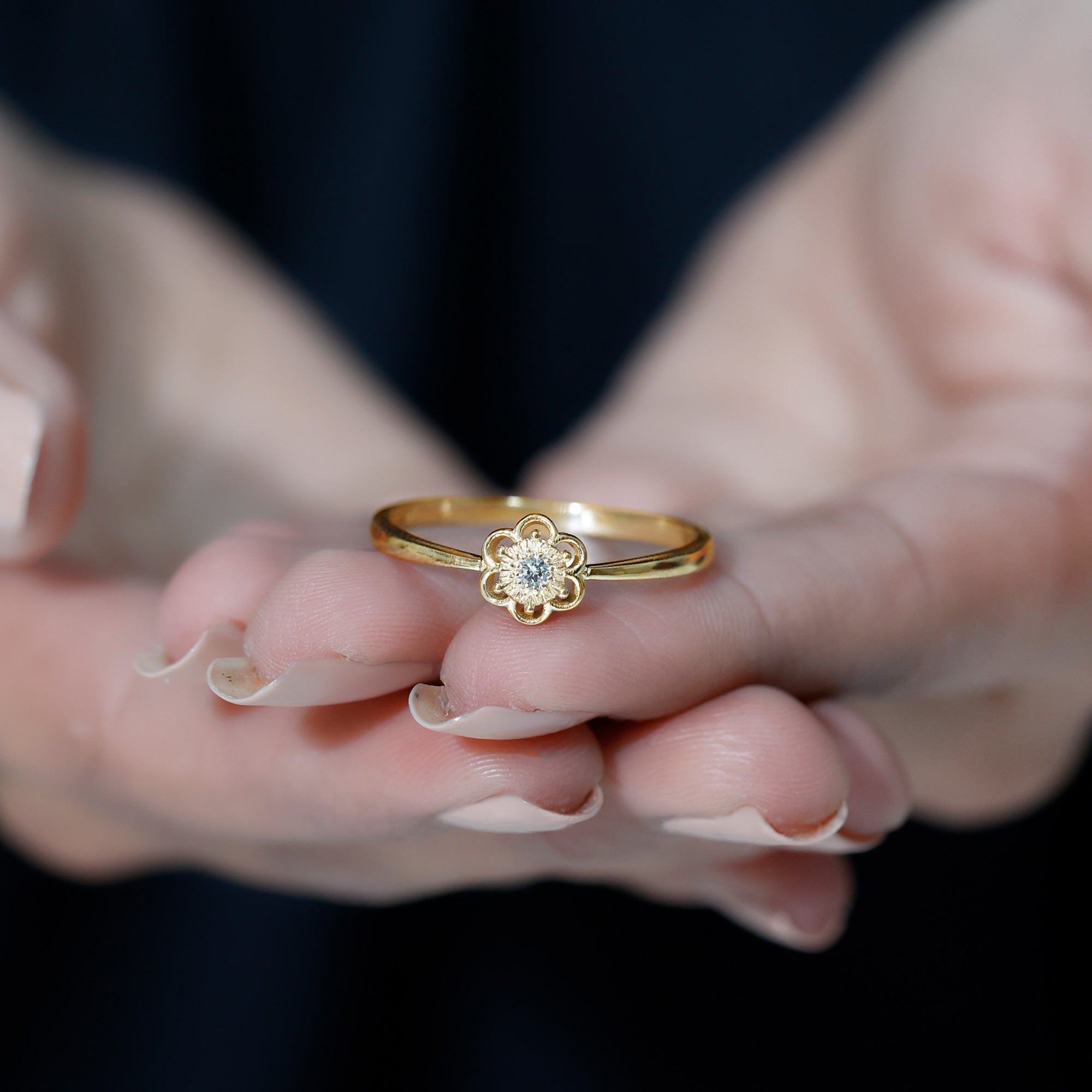 Real Diamond Solitaire Flower Ring with Miracle Plate