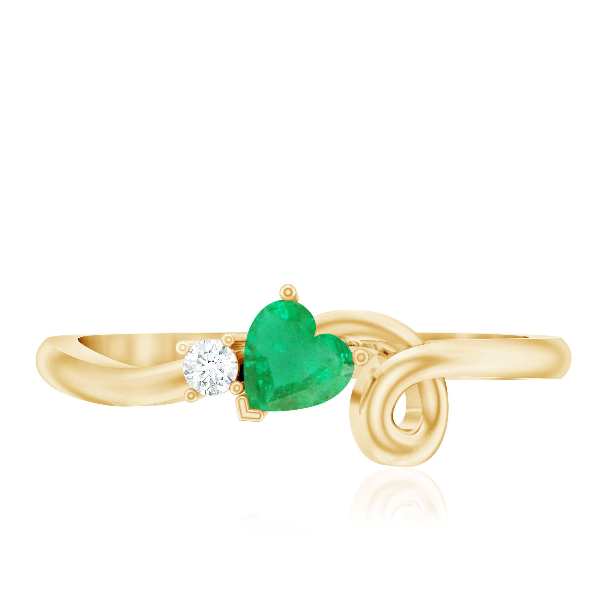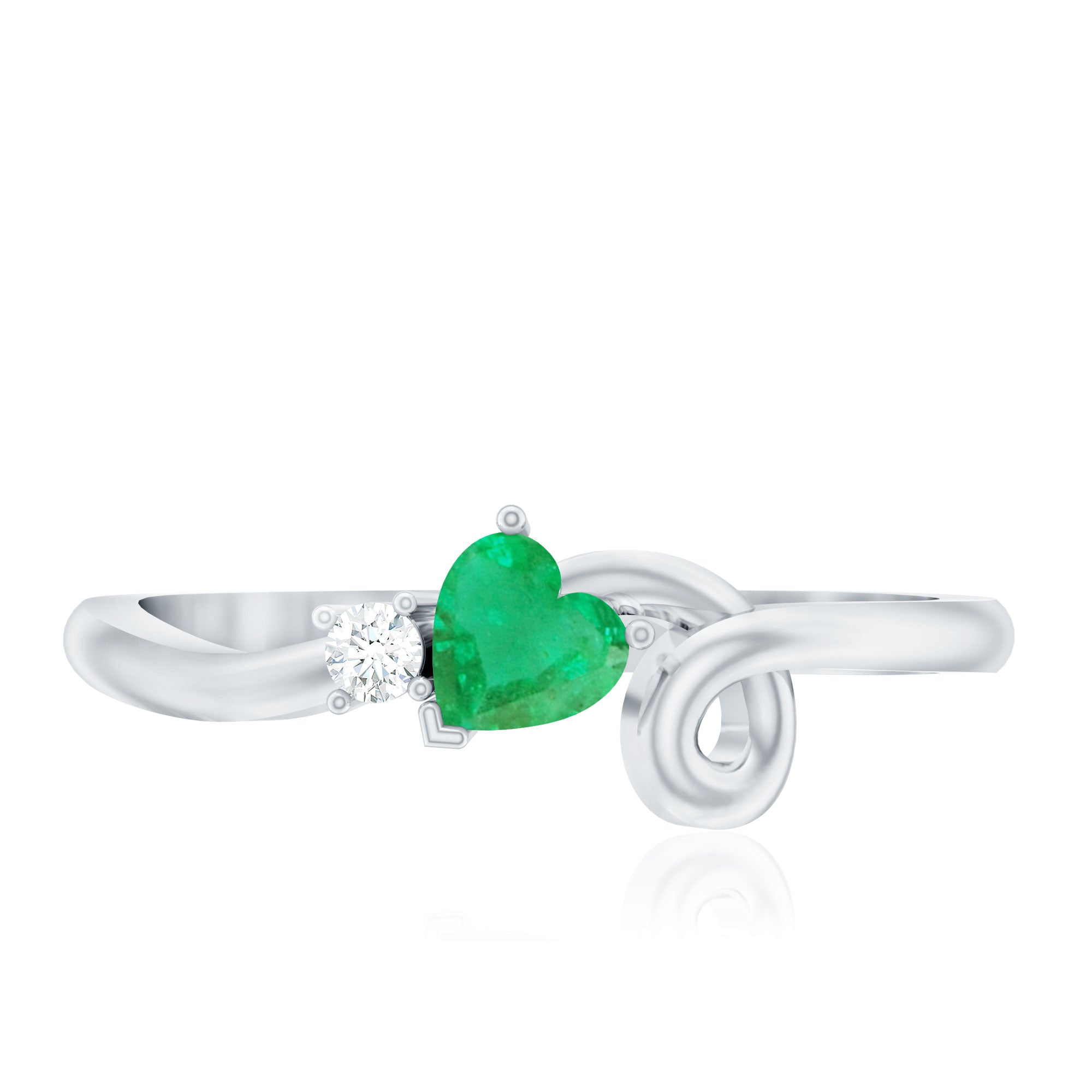 Real Emerald and Diamond Heart Promise Ring with Twisted Shank