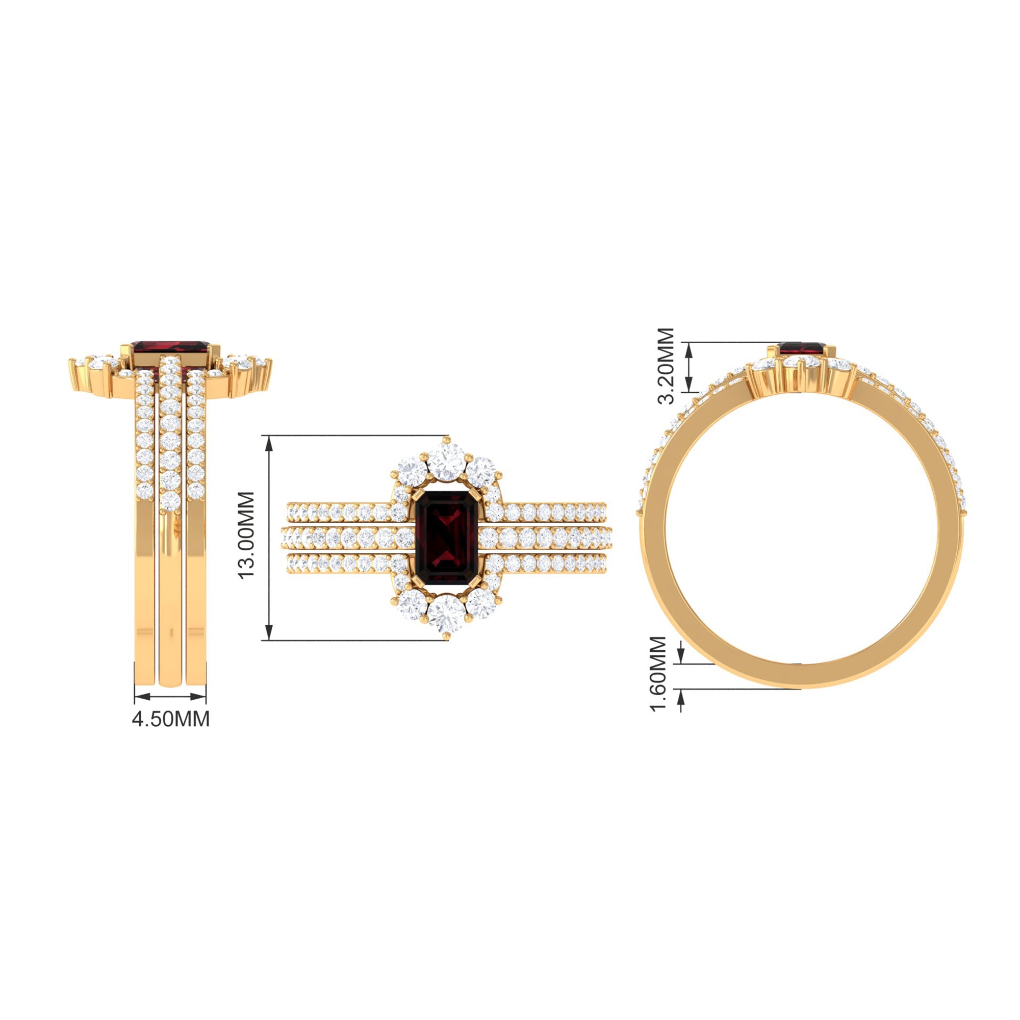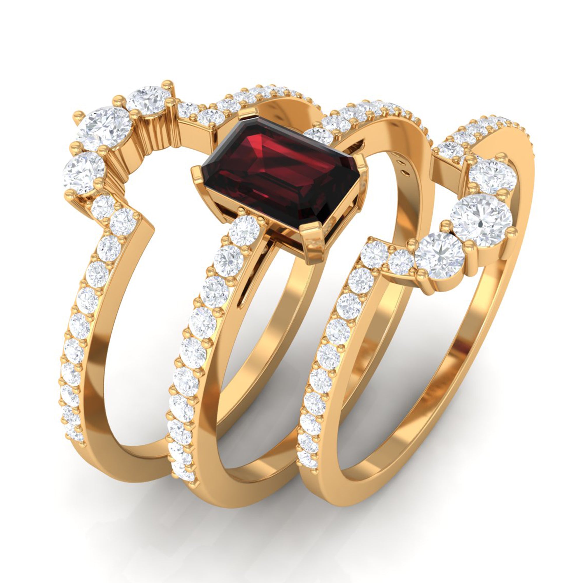 Real Emerald Cut Garnet Diamond 3 Piece Bridal Ring Set