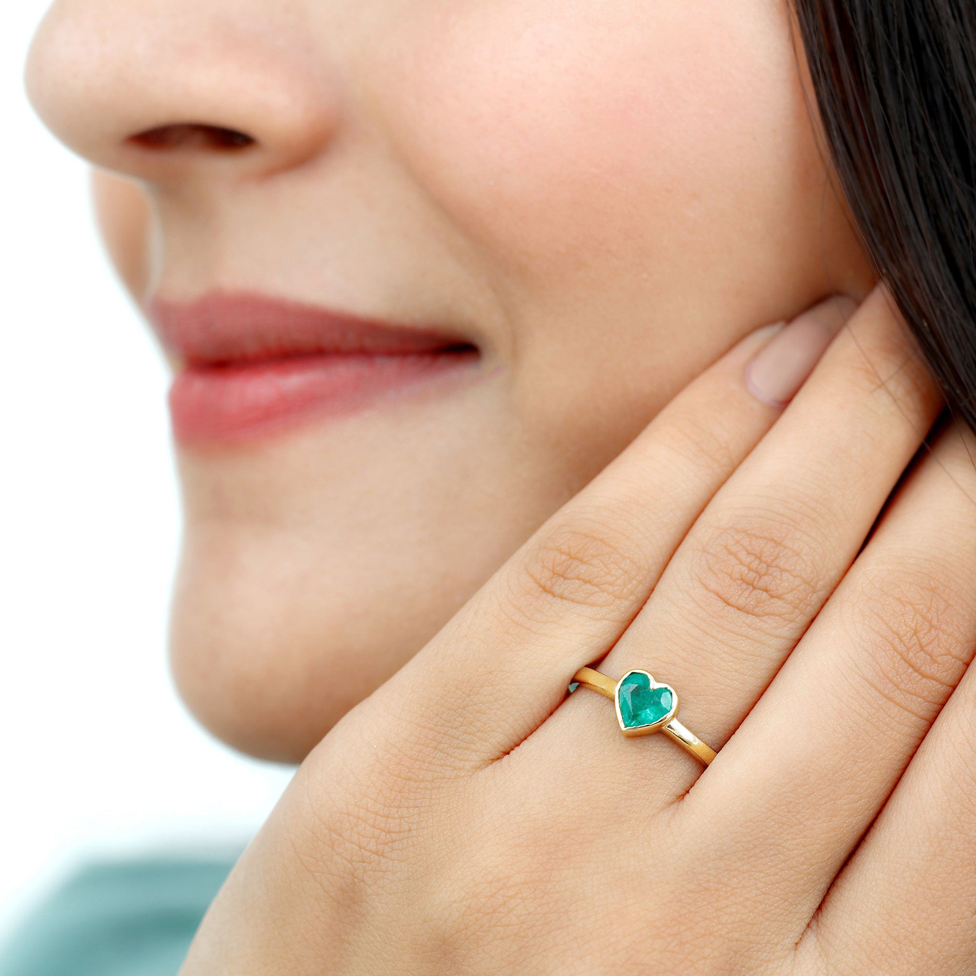 Real Emerald Heart Solitaire Ring in Bezel Setting