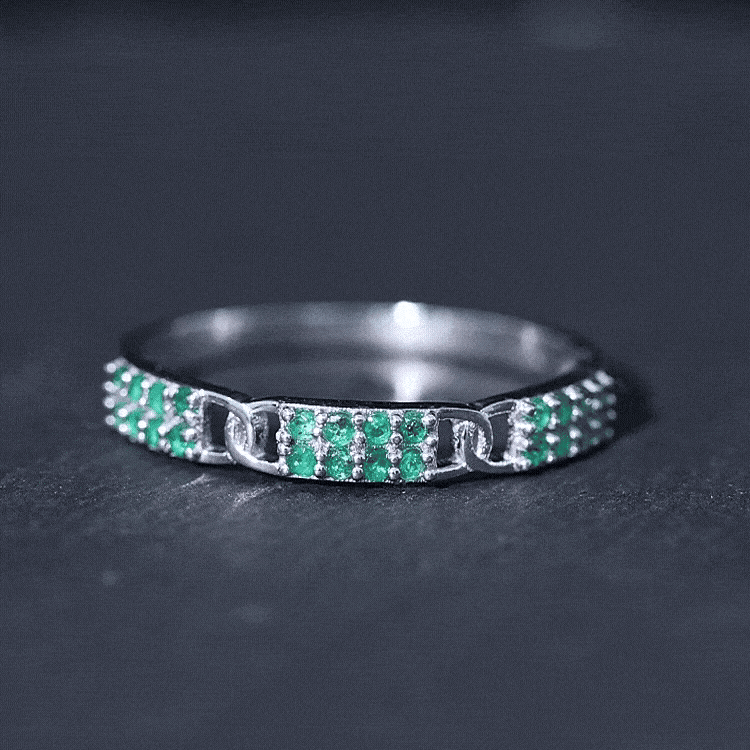 Love shines endlessly in this elegant Emerald Eternity Band, a beautiful piece that captures the essence of lasting connection. The Half Eternity Band features round shaped emeralds set delicately in secure pave setting. The emerald stones are placed along with a gracefully designed interlocking pattern, giving the Eternity Wedding Band a unique and stylish look that stands out from traditional designs. The deep green color of the AAA quality natural emeralds symbolizes harmony, renewal, and everlasting affection, making this Wedding Anniversary Ring a meaningful choice for celebrating special moments. The half-circle arrangement of gemstones creates a balanced and eye-catching display, offering just the right amount of shine while keeping the design timeless and elegant. Perfect for anniversaries, weddings, or as a thoughtful gift, this Emerald Wedding Band can be worn alone for a classic look or stacked with other rings for a more personalized style. The intricate interlocking band adds depth and dimension, while the vibrant emeralds bring a touch of nature-inspired beauty.