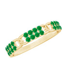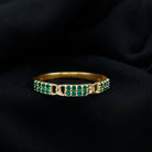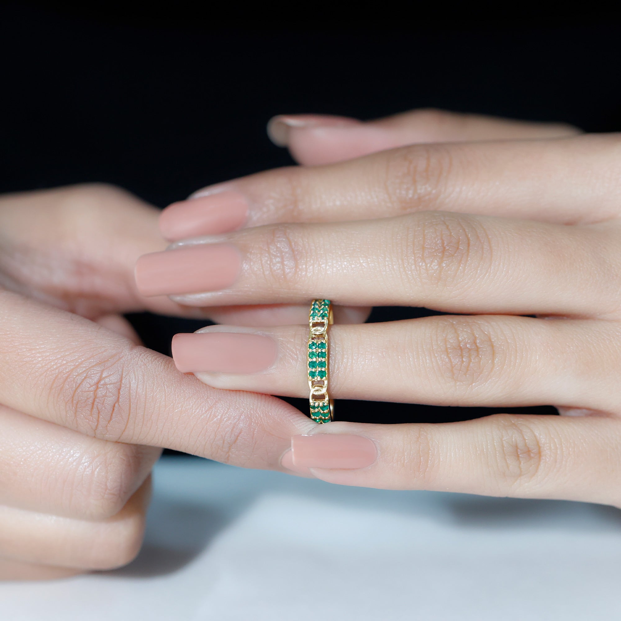 Love shines endlessly in this elegant Emerald Eternity Band, a beautiful piece that captures the essence of lasting connection. The Half Eternity Band features round shaped emeralds set delicately in secure pave setting. The emerald stones are placed along with a gracefully designed interlocking pattern, giving the Eternity Wedding Band a unique and stylish look that stands out from traditional designs. The deep green color of the AAA quality natural emeralds symbolizes harmony, renewal, and everlasting affection, making this Wedding Anniversary Ring a meaningful choice for celebrating special moments. The half-circle arrangement of gemstones creates a balanced and eye-catching display, offering just the right amount of shine while keeping the design timeless and elegant. Perfect for anniversaries, weddings, or as a thoughtful gift, this Emerald Wedding Band can be worn alone for a classic look or stacked with other rings for a more personalized style. The intricate interlocking band adds depth and dimension, while the vibrant emeralds bring a touch of nature-inspired beauty.