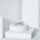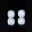 Real Ethiopian Opal and Diamond Halo Stud Earrings
