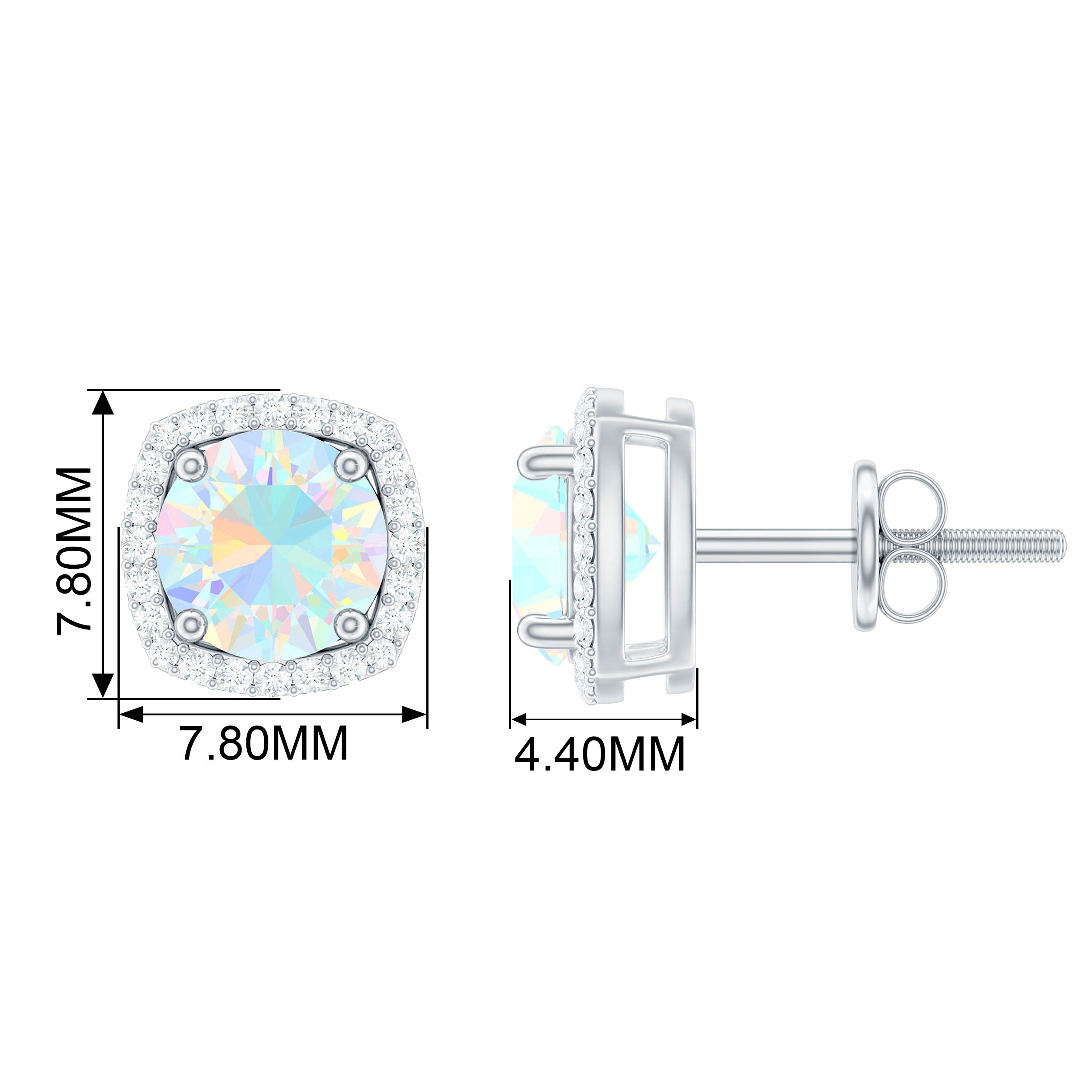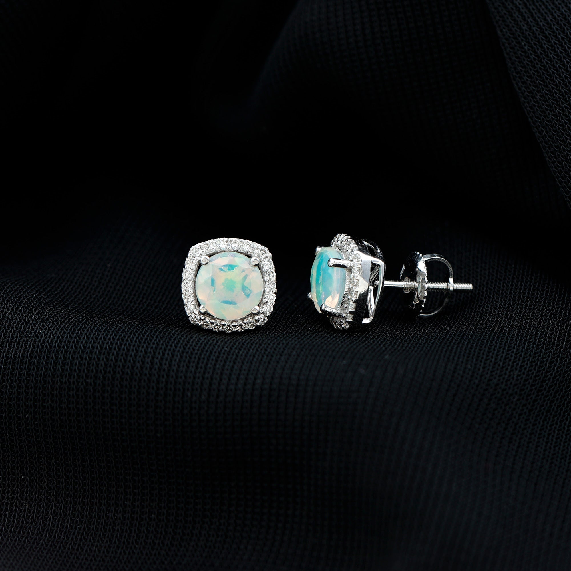 These Halo Stud Earrings are perfect for celebrating any occasion. Featuring a Round Shape Ethiopian Opal secured in 4 Prong Setting and shimmering Round Diamond accompanies as Halo in Pave Setting. The Opal Stud Earrings are secured comfortably with screw backs. Shine all day in these Opal Earrings as you pair them with your casual, formal or evening attire.