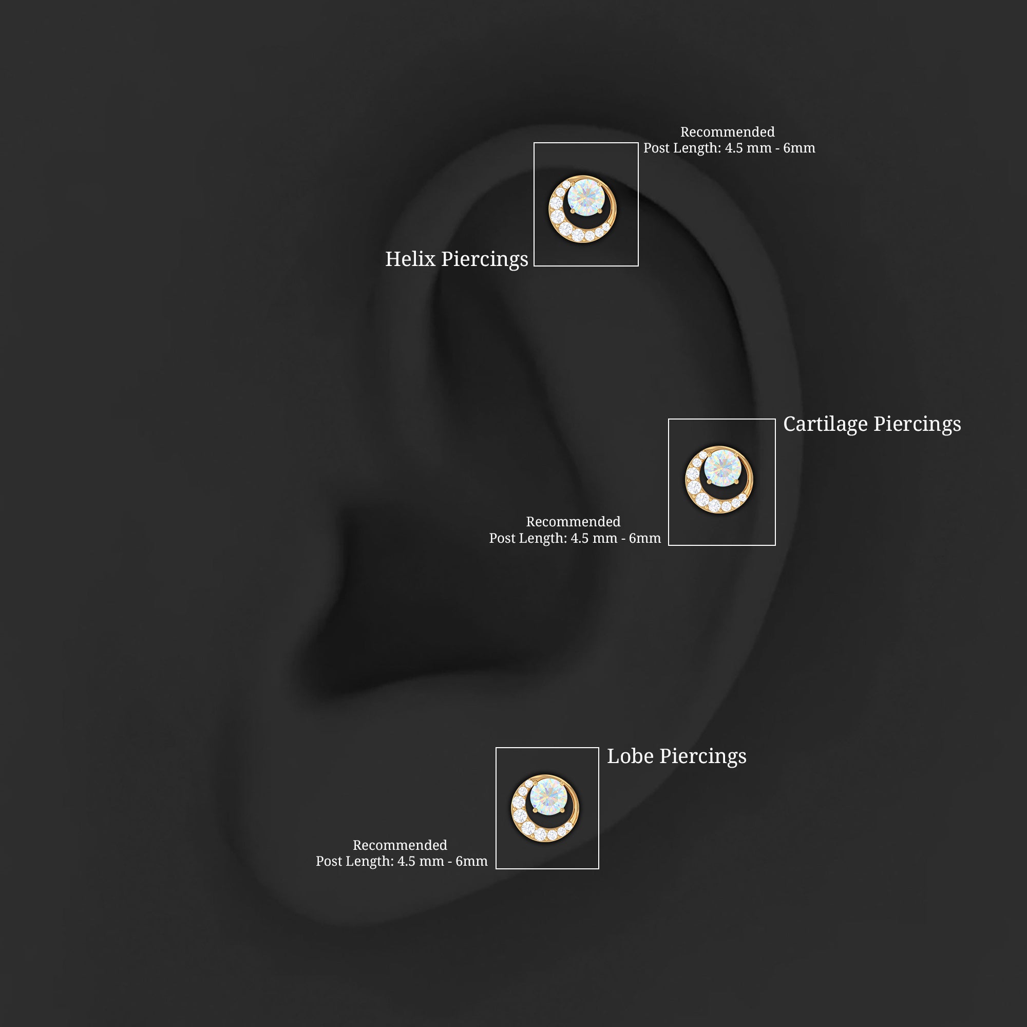Express your love with this exquisite Ethiopian Opal Conch Earring, featuring Round Cut Ethiopian Opal in Prong Setting and delicate Round Cut moissanite stones on a circular design. Crafted with Gold Metal, this Helix Earring adds a touch of elegance to your look. With a simple Flat Back closure, this unique piece stays securely in place. Surprise your special someone with this beautiful token of love and create memories that last a lifetime.