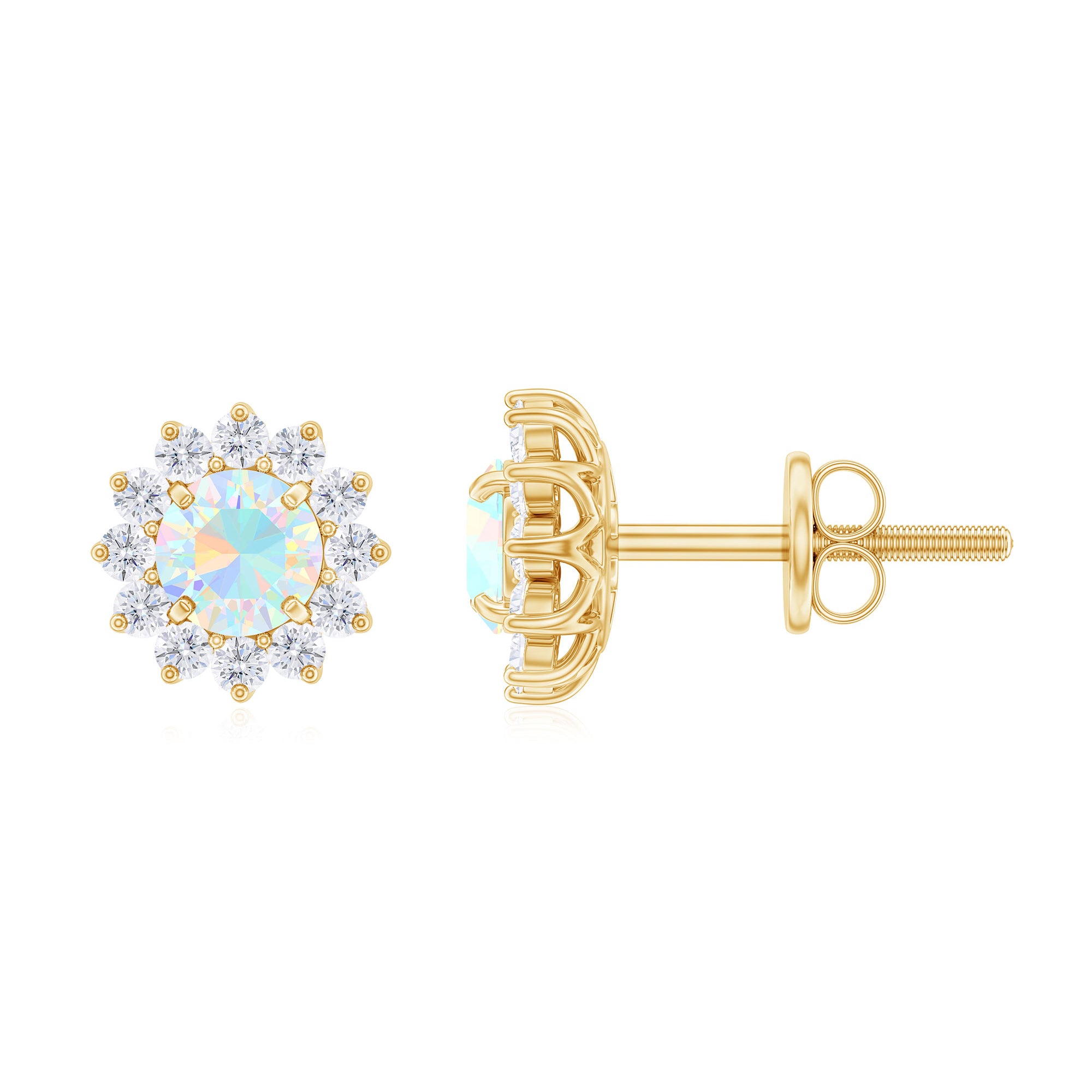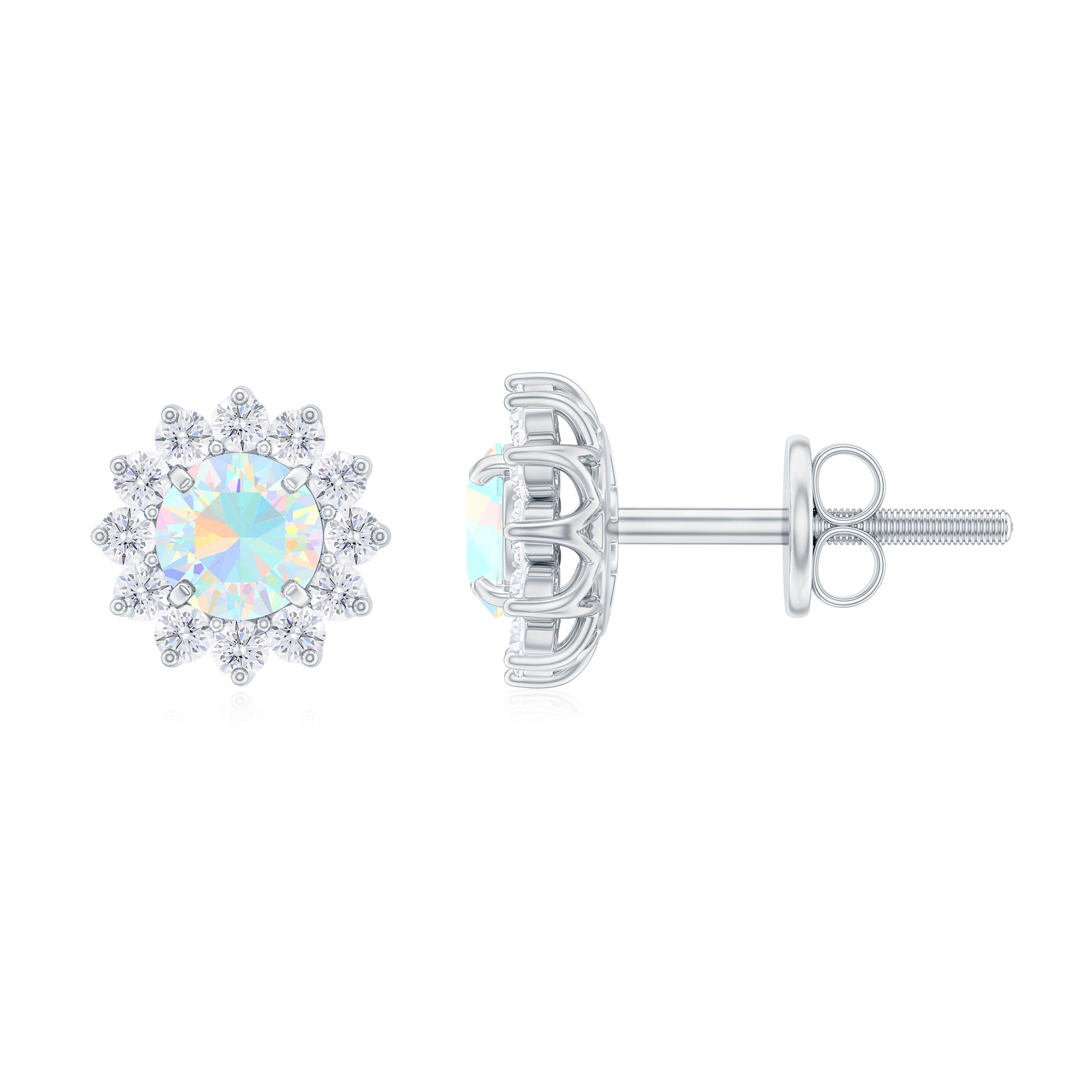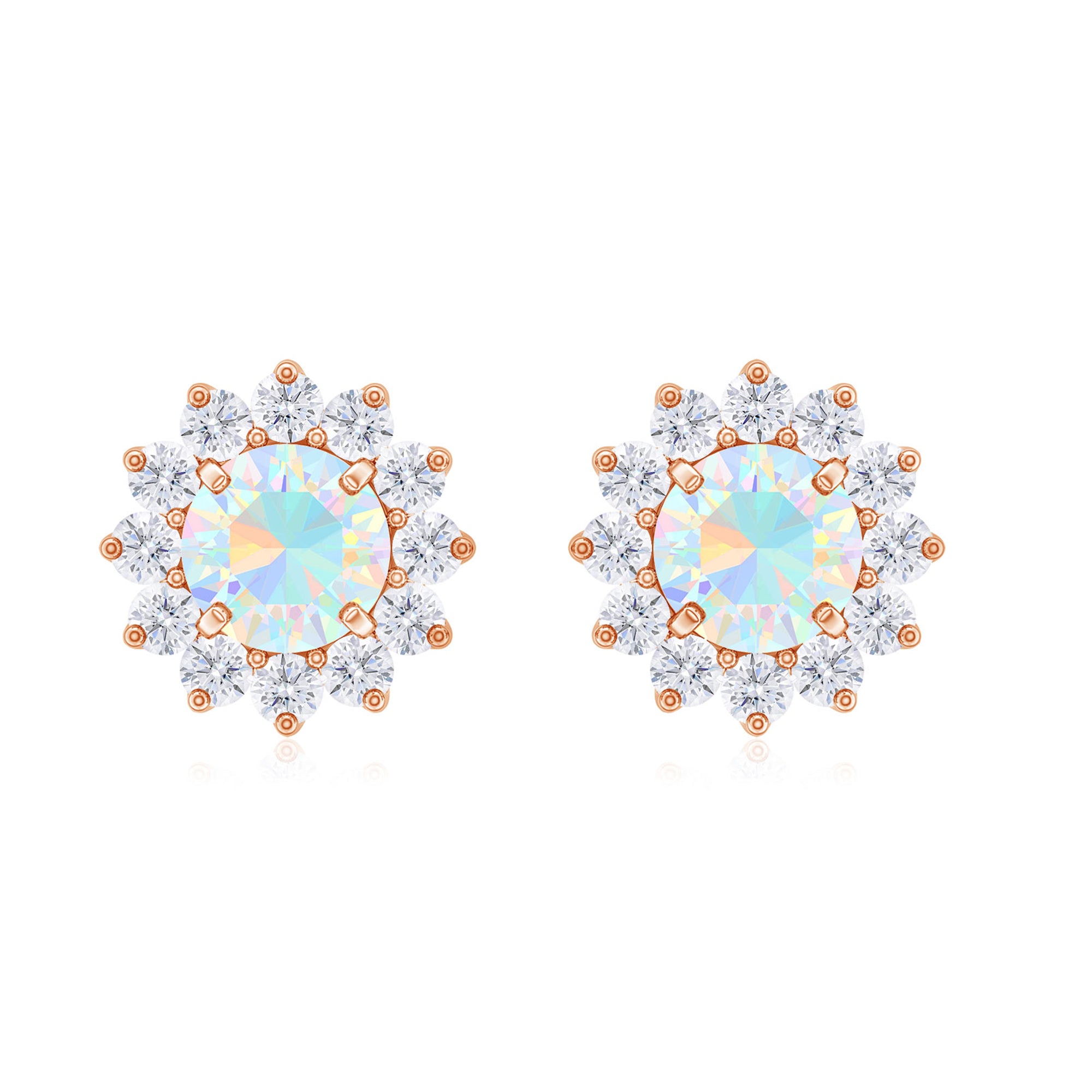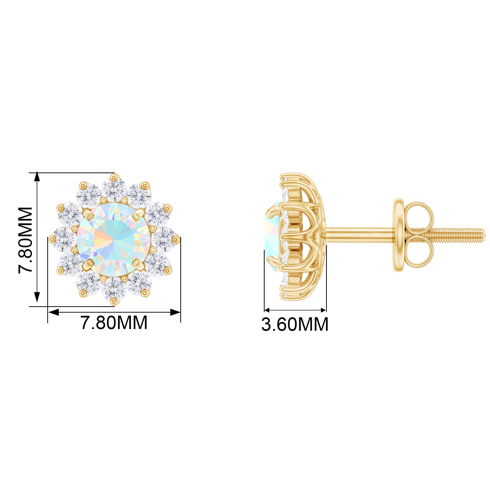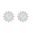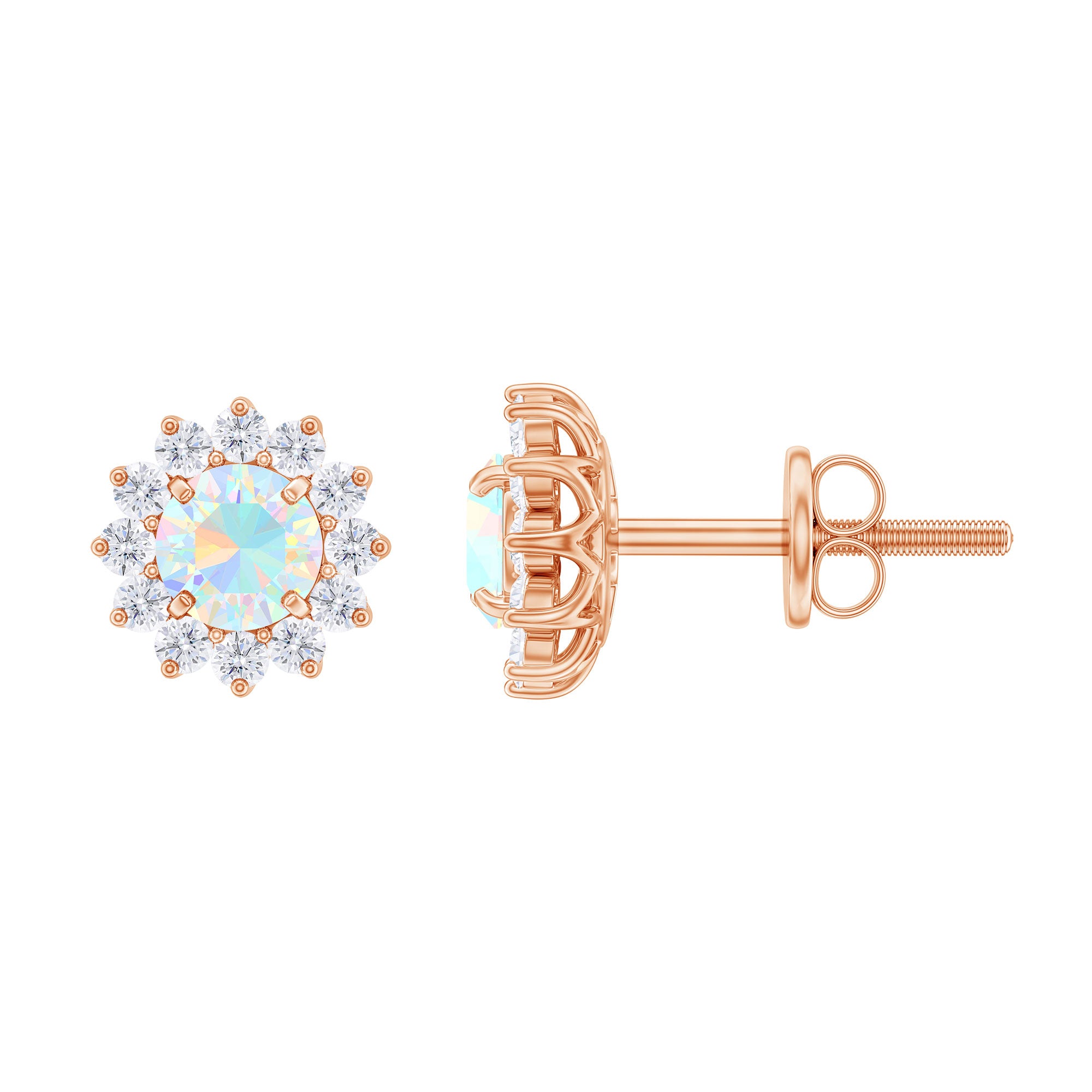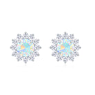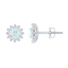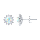 Real Ethiopian Opal Flower Stud Earrings with Diamond Halo