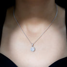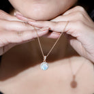 Add a touch of timeless charm to your look with this exquisite Halo Pendant Necklace. It showcases an 8 MM Round Shape Ethiopian Opal, securely nestled within Claw Setting and encircled by a dazzling Halo of Round Shape Moissanite stones. The bail is gracefully adorned with additional round Moissanite, further enhancing its allure. Whether you are going for a casual or a more formal look, this Ethiopian Opal Pendant complements your attire, ensuring you will be a standout presence in any gathering. The simple design allows the opal to take center stage, symbolizing creativity, love, and hope. Perfect for gifting or keeping as a personal treasure, this Opal and Moissanite Necklace brings a hint of luxury and meaning to your jewelry collection. The pendant’s craftsmanship and quality make it a piece to treasure for years to come. Packed in a beautiful jewelry box and complete with a certificate of authenticity, this October Birthstone Necklace is ready for gifting. It is a lovely way to celebrate birthdays, anniversaries, or other milestones.