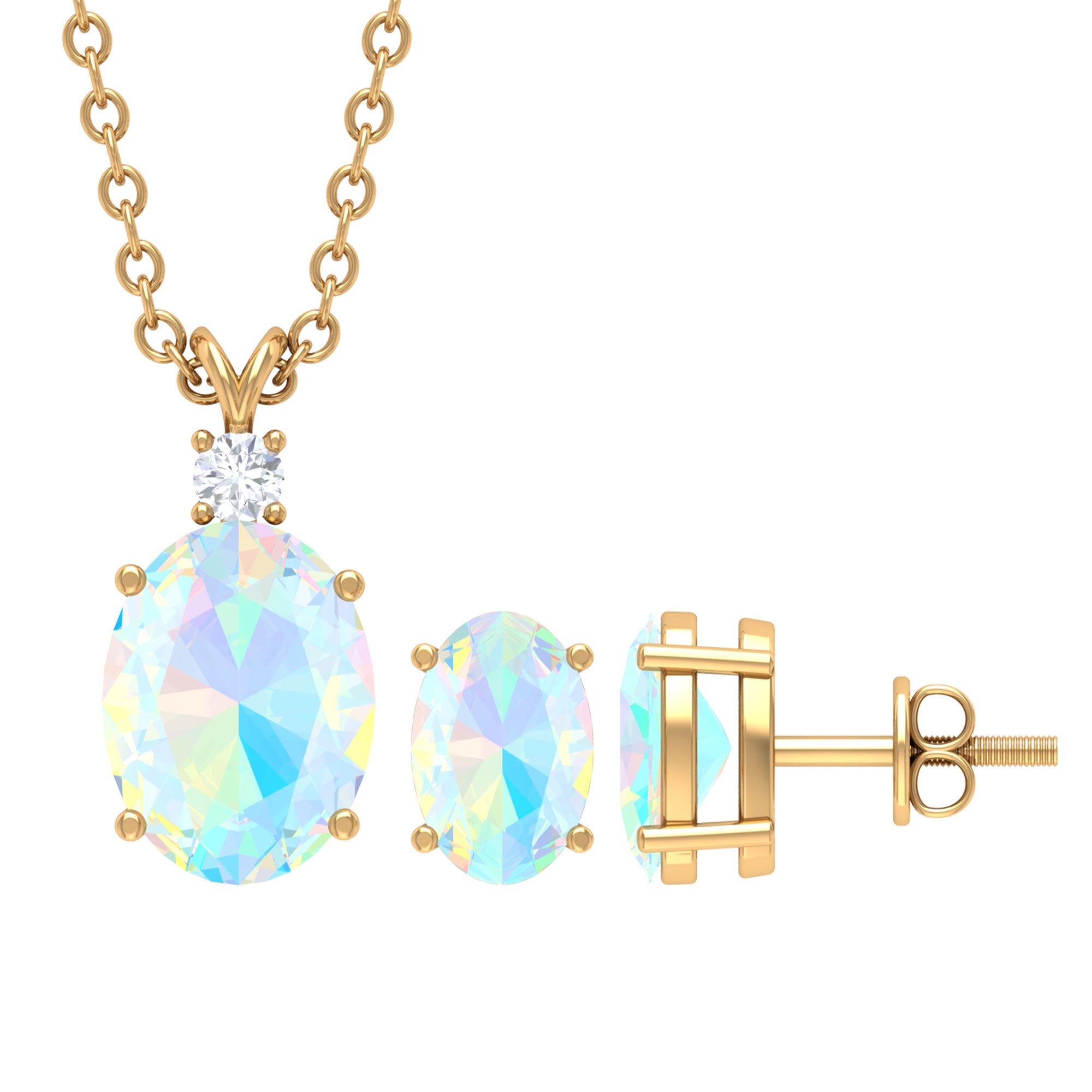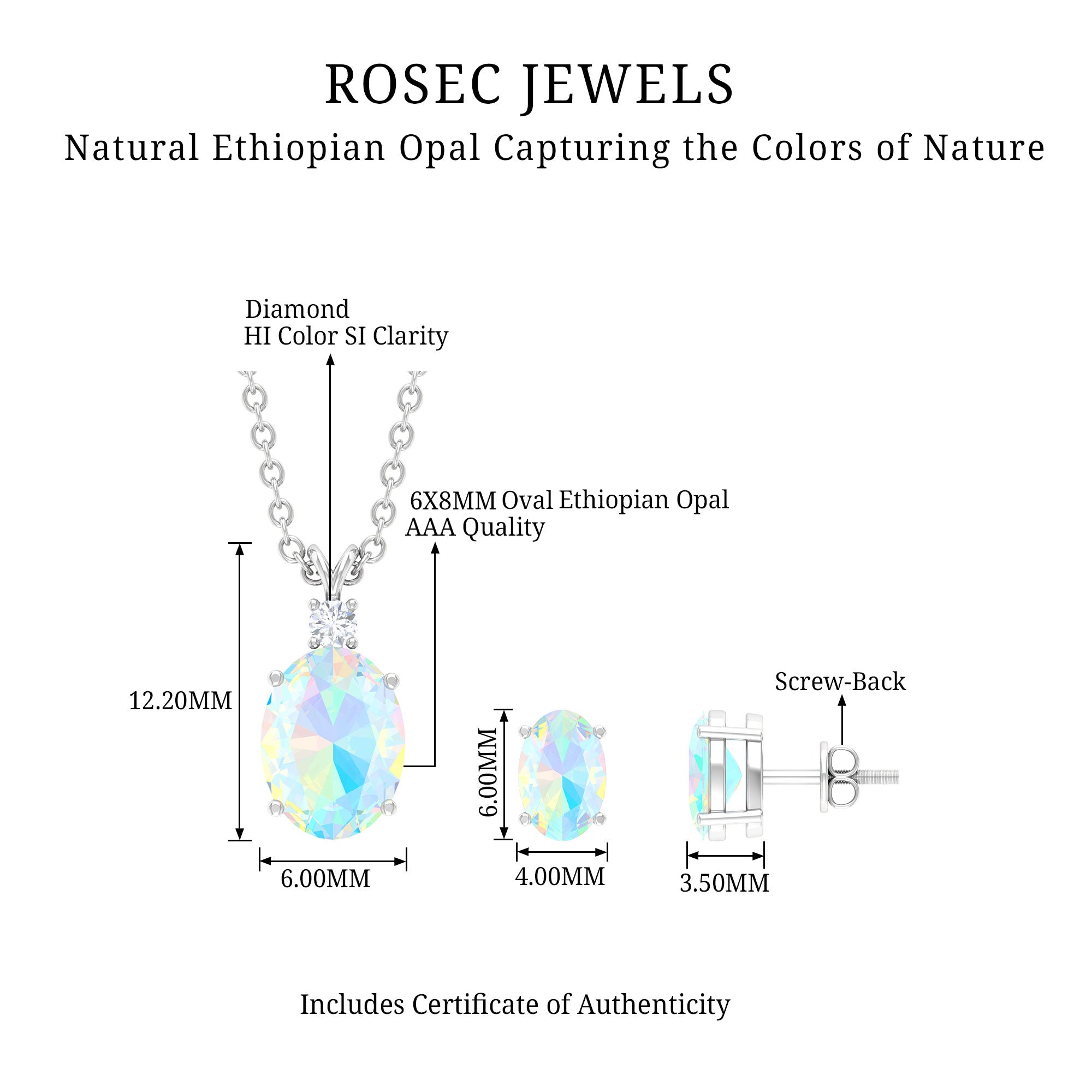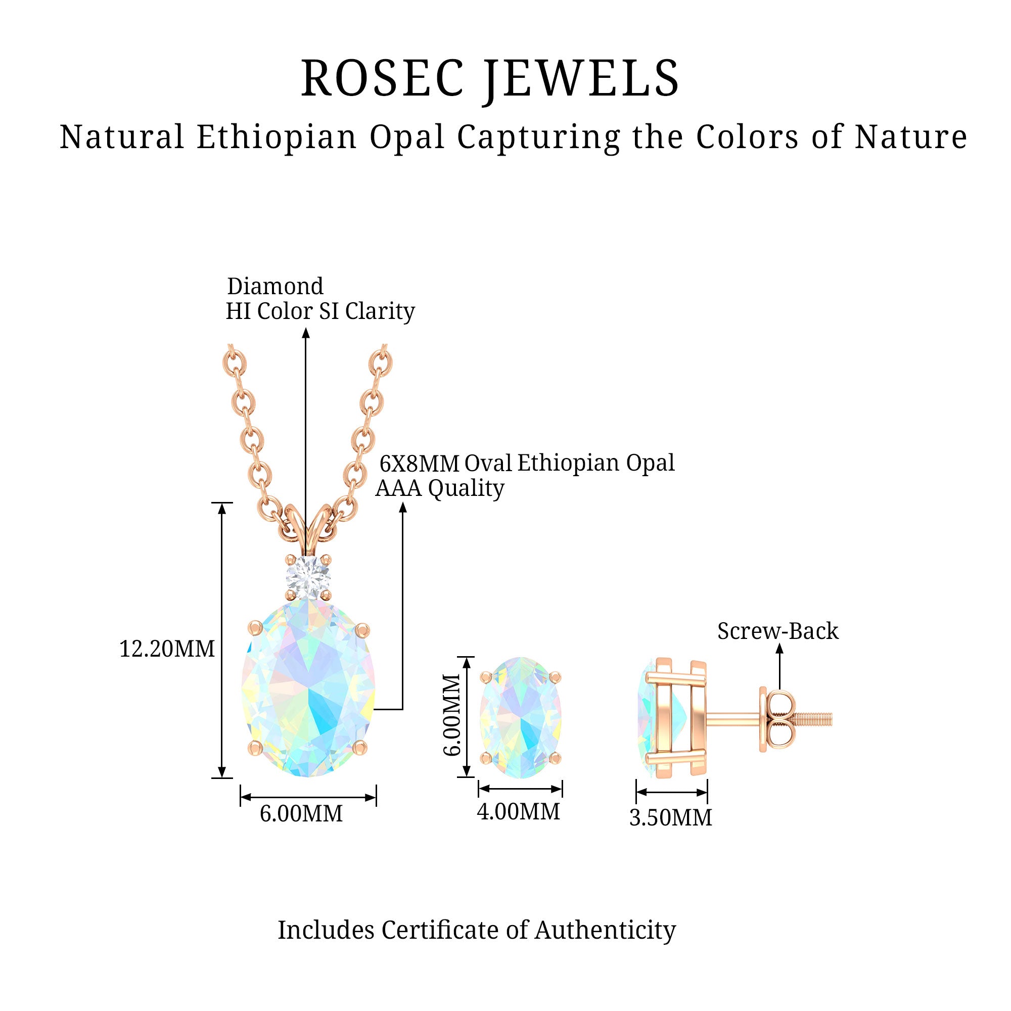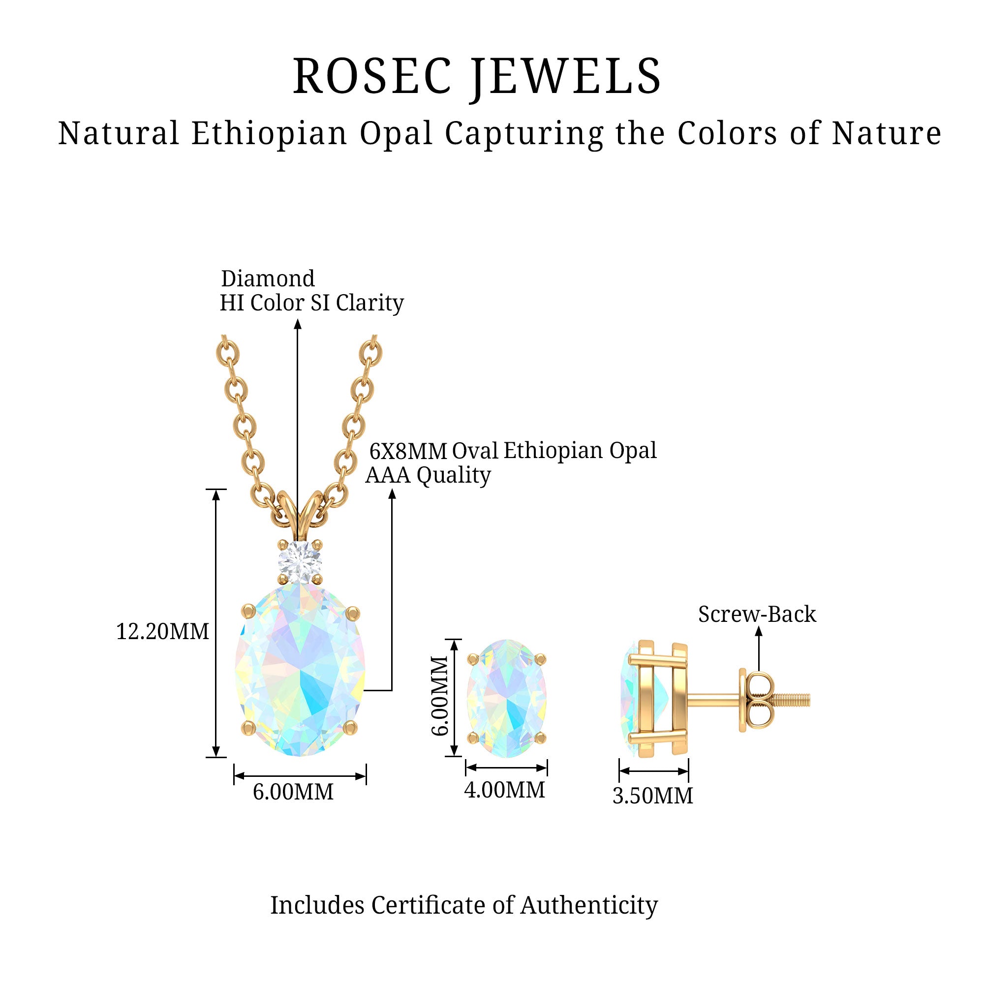 Real Ethiopian Opal Solitaire Jewelry Set with Diamond